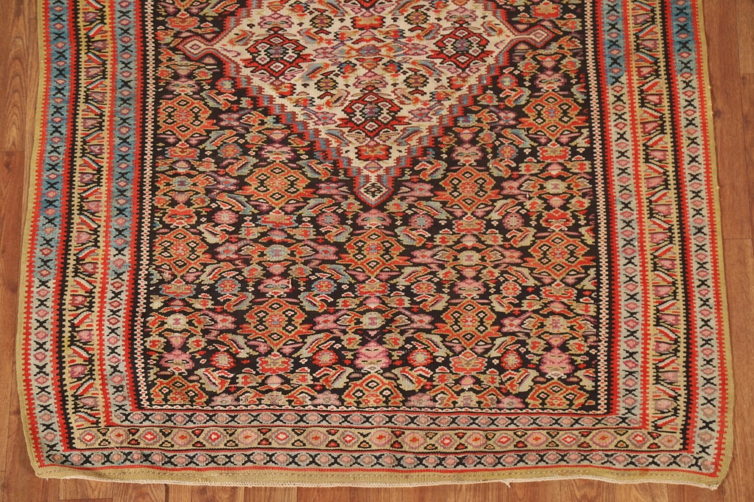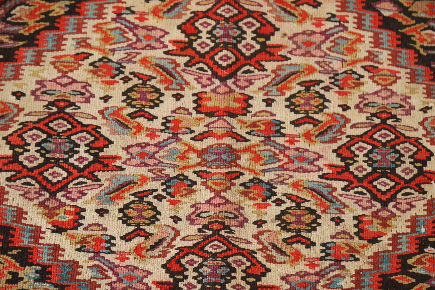 Pre-1900 Vegetable Dye Senneh Kilim Persian Rug 4x5