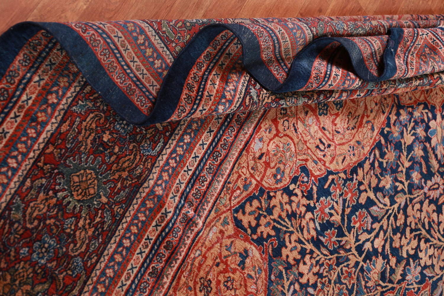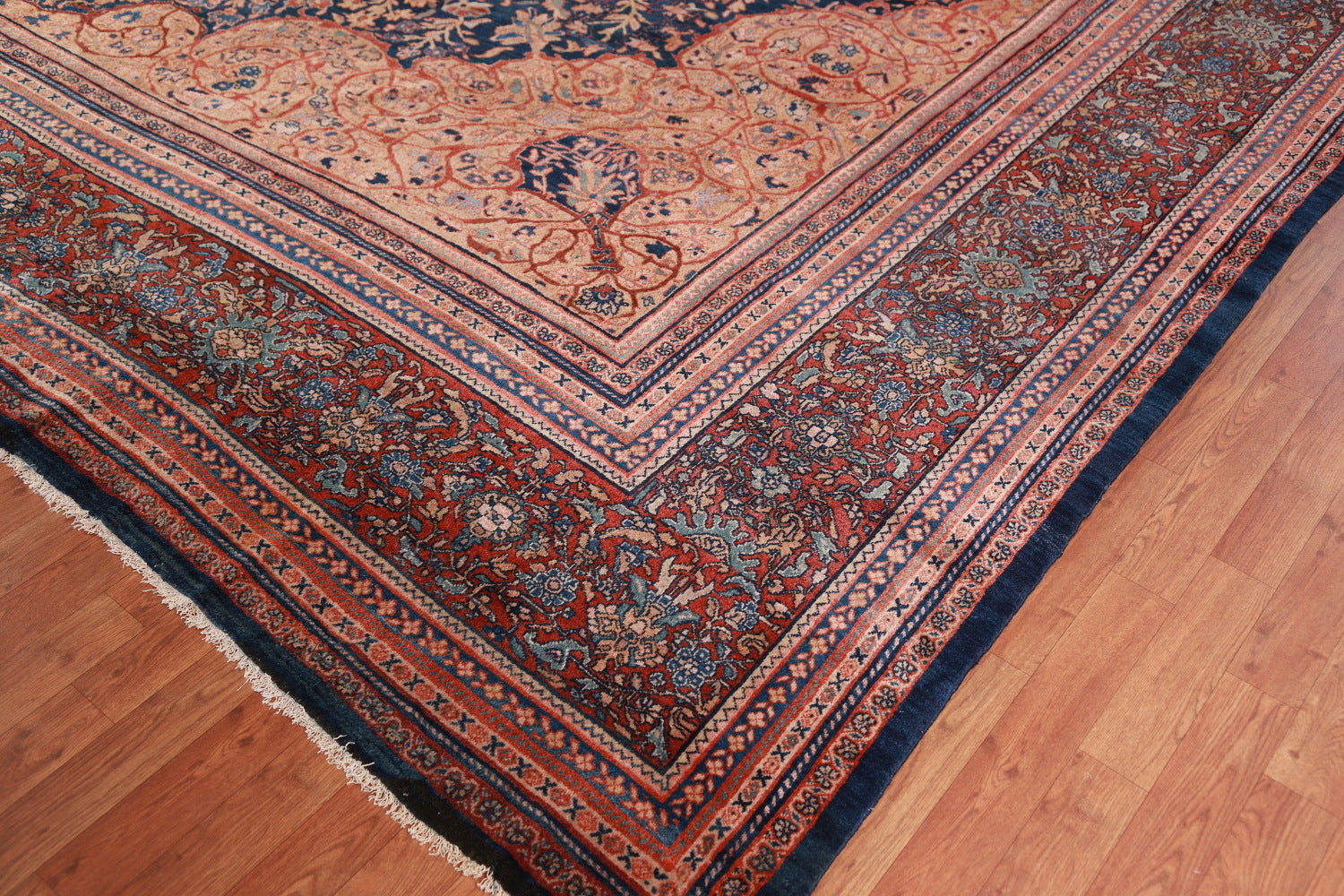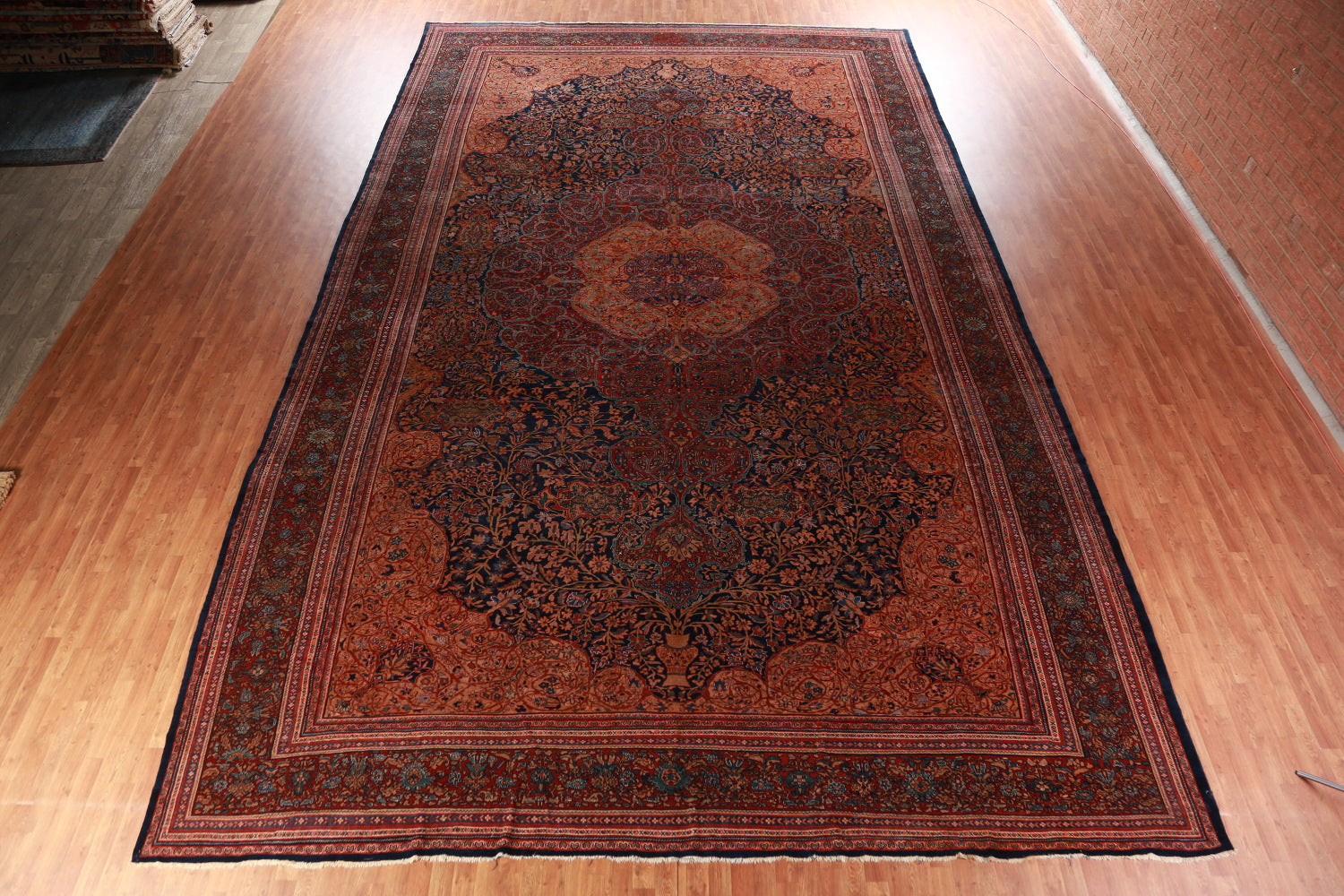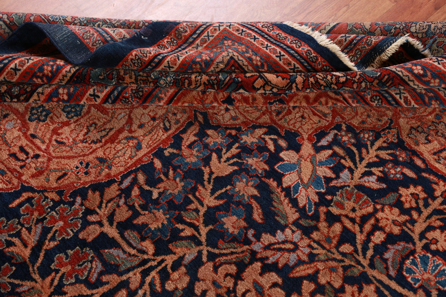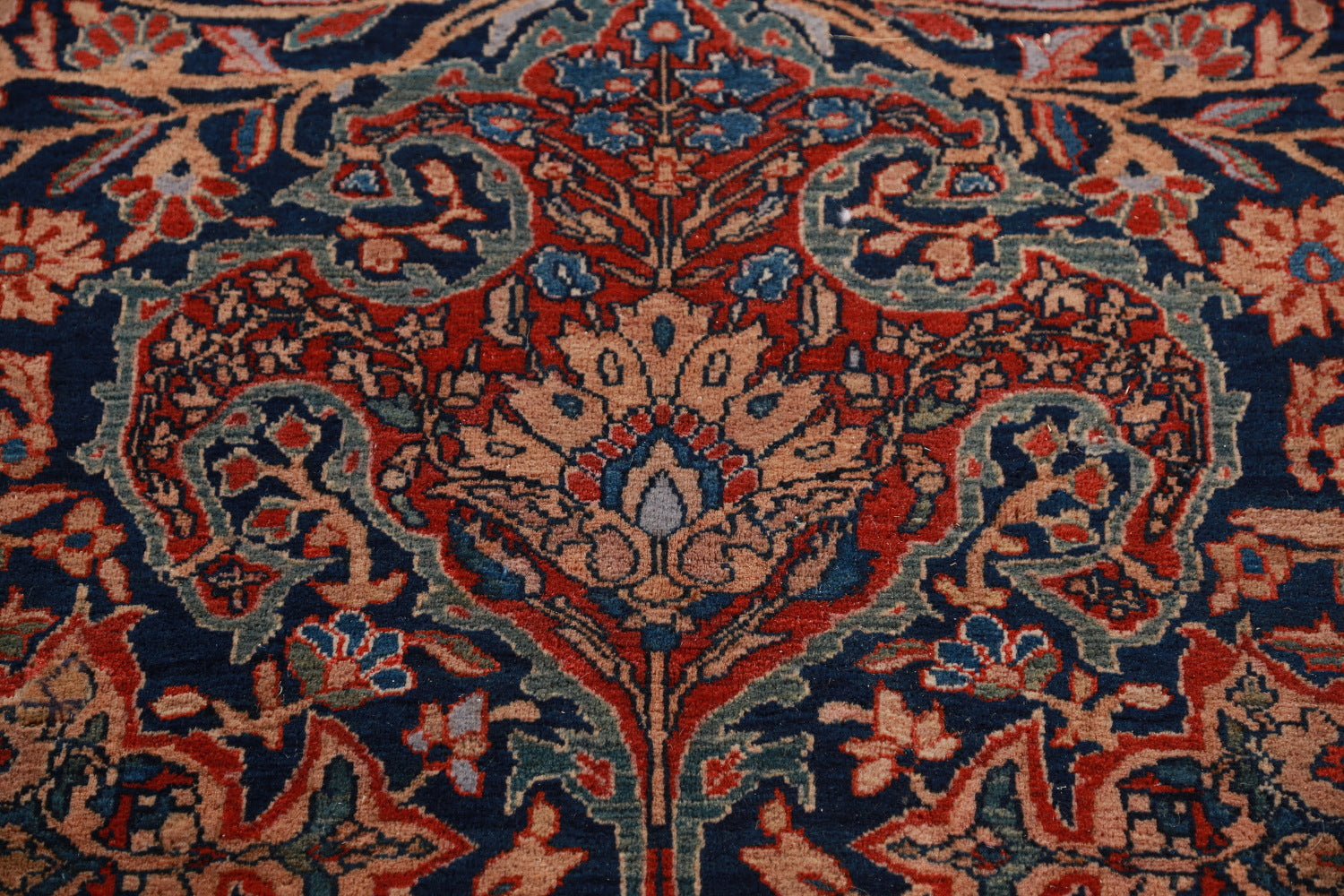 A Beautiful Genuine Persia ( Persia ) Sarouk (Farahan) rug is Hand Knotted by skillful weavers in Persia ( Persia ) with 100% Wool Material. This rug is in Very Good (Repair) condition. dimensions are 23' 1'' X 14' 1'' in foot and 704 X 429 in centimeter. the primary color is Navy Blue & Blues.