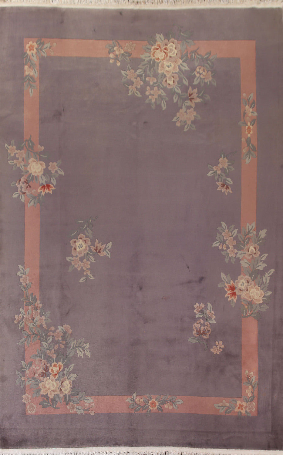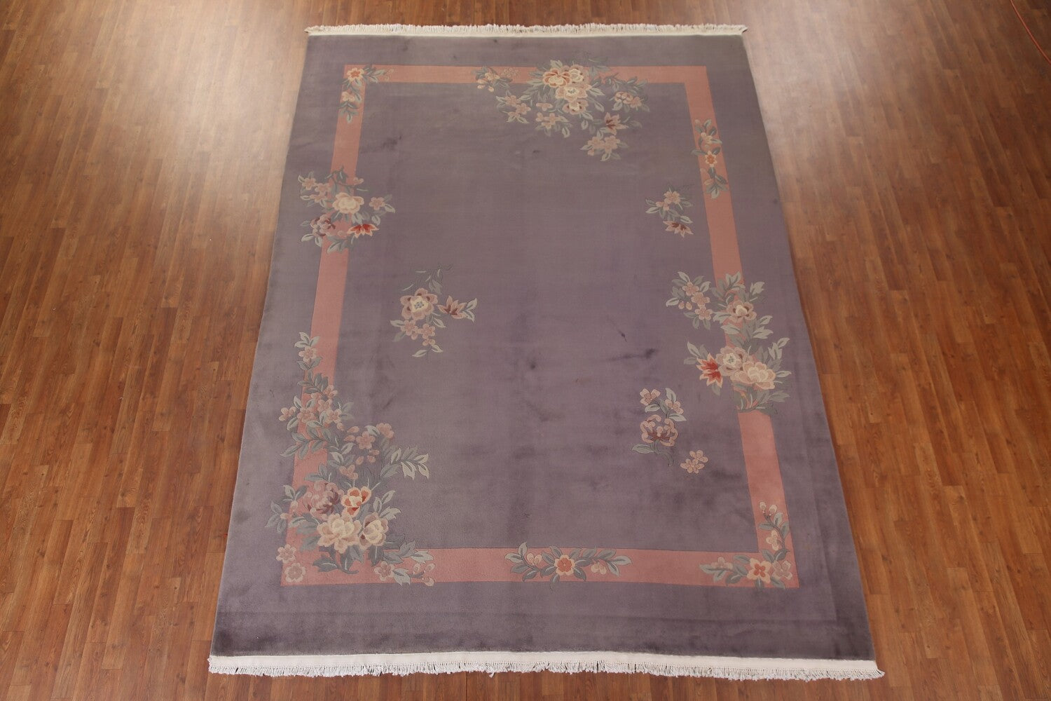 Purple Floral Art Deco Oriental Area Rug 9x12