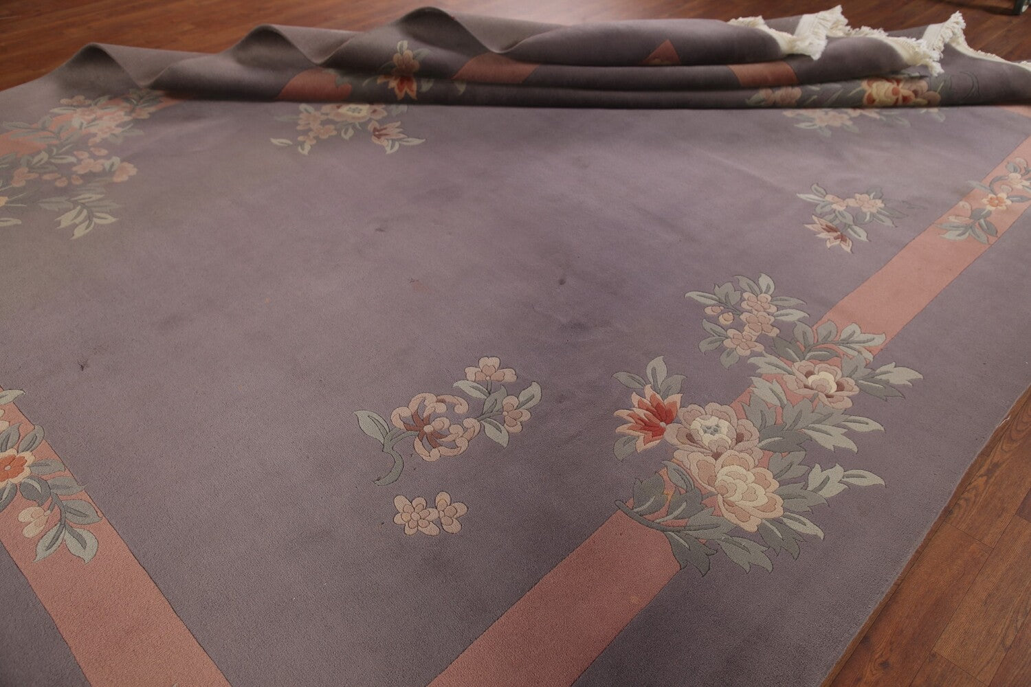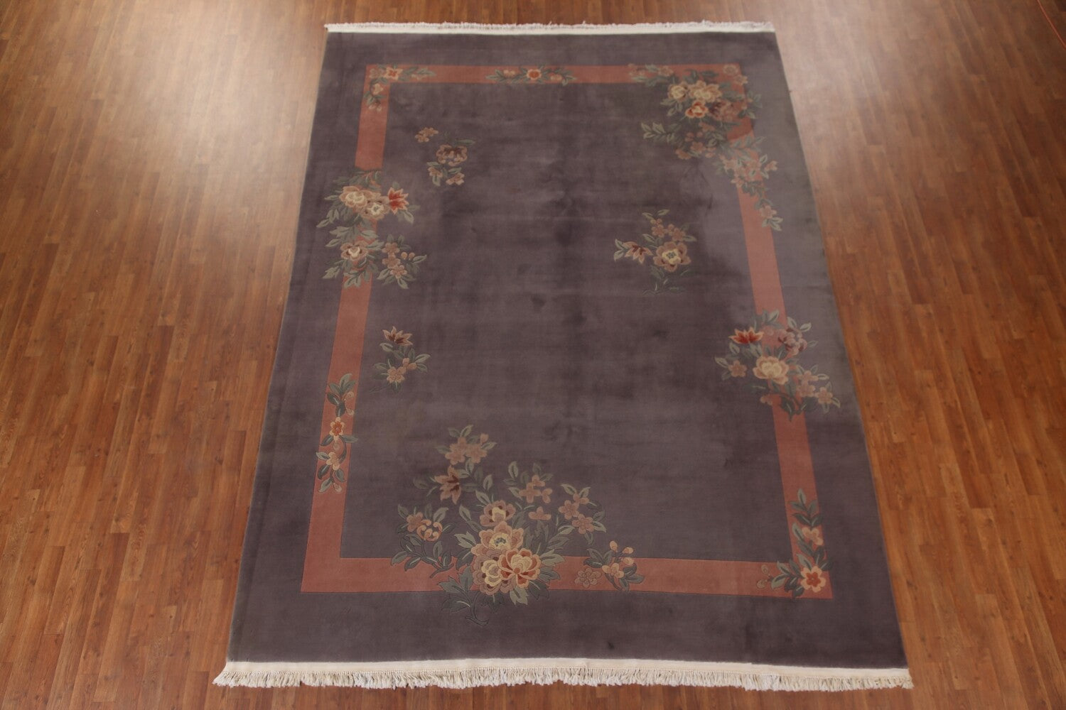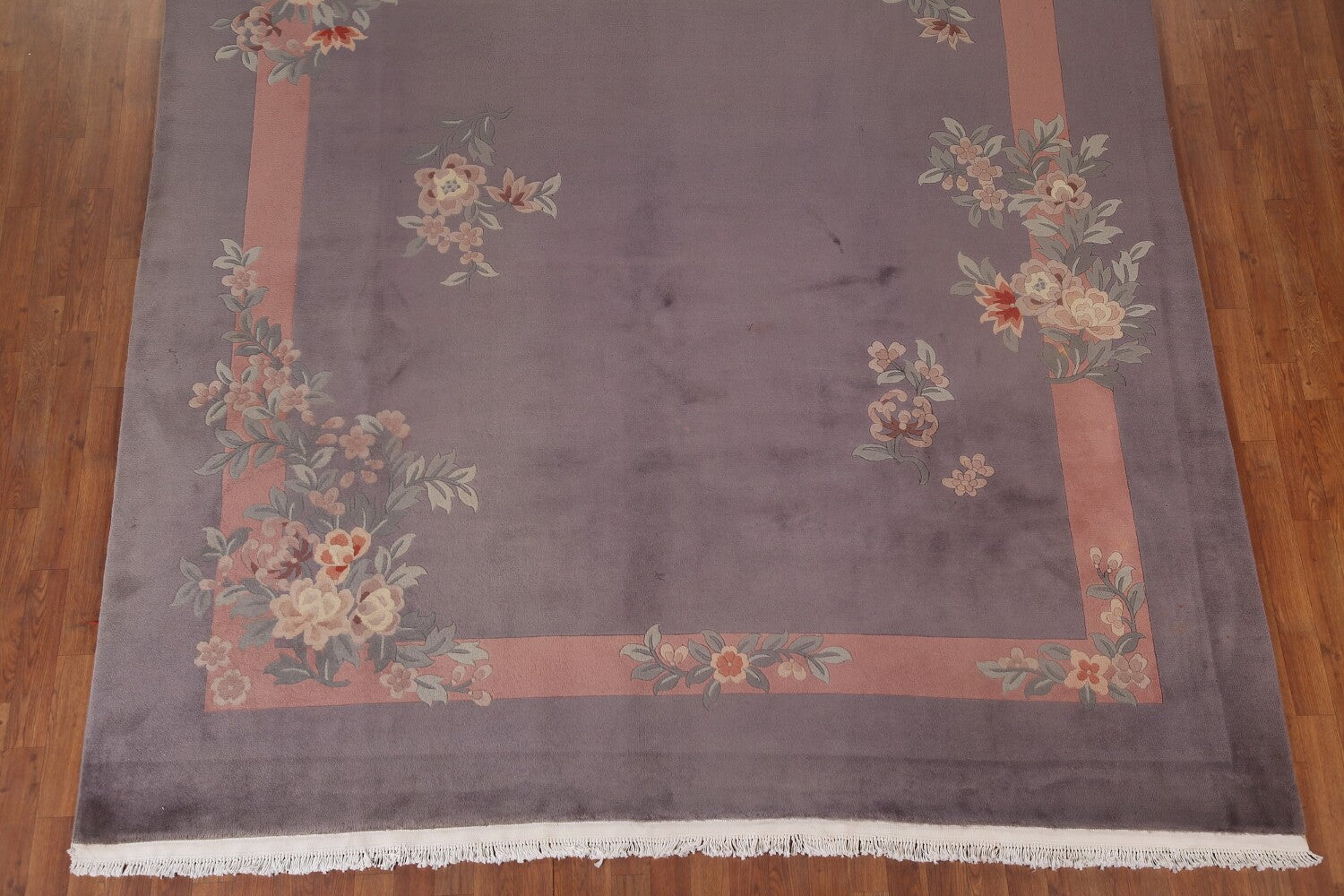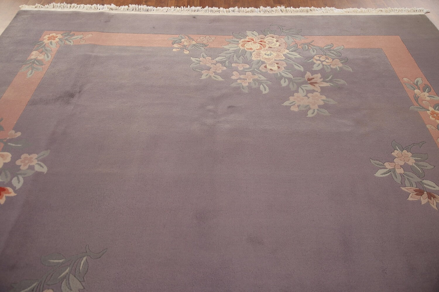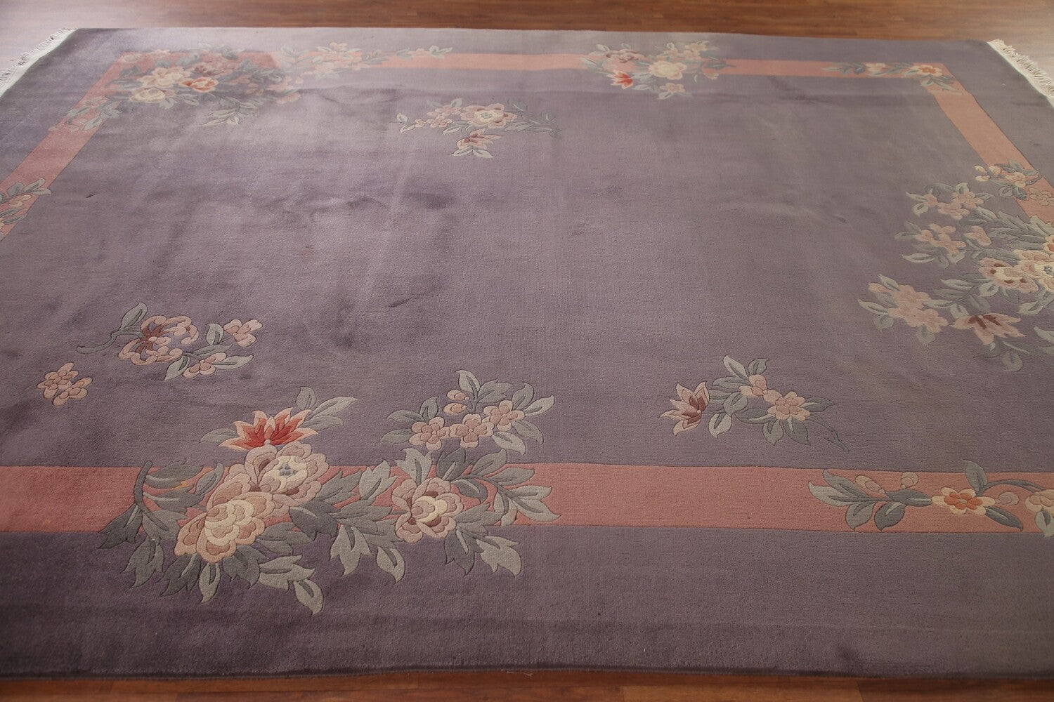 A Beautiful Genuine China Art Deco rug is Hand Knotted by skillful weavers in China with 100% Wool Material. This rug is in Very Good condition. dimensions are 11' 6'' X 8' 6'' in foot and 351 X 259 in centimeter. the primary color is Purples.