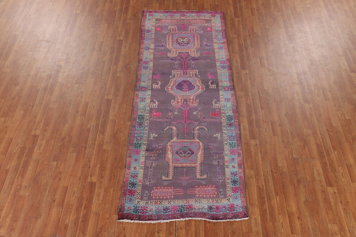Purple Tribal Ardebil Persian Runner Rug 4x10