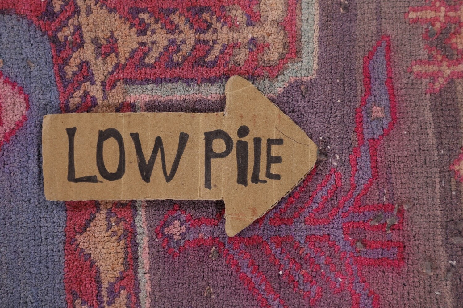 A Beautiful Genuine Persia ( Persia ) Ardebil rug is Hand Knotted by skillful weavers in Persia ( Persia ) with 100% Wool Material. This rug is in Very Good (Low Pile-Abrash) condition. dimensions are 9' 7'' X 3' 10'' in foot and 292 X 117 in centimeter. the primary color is Purples.