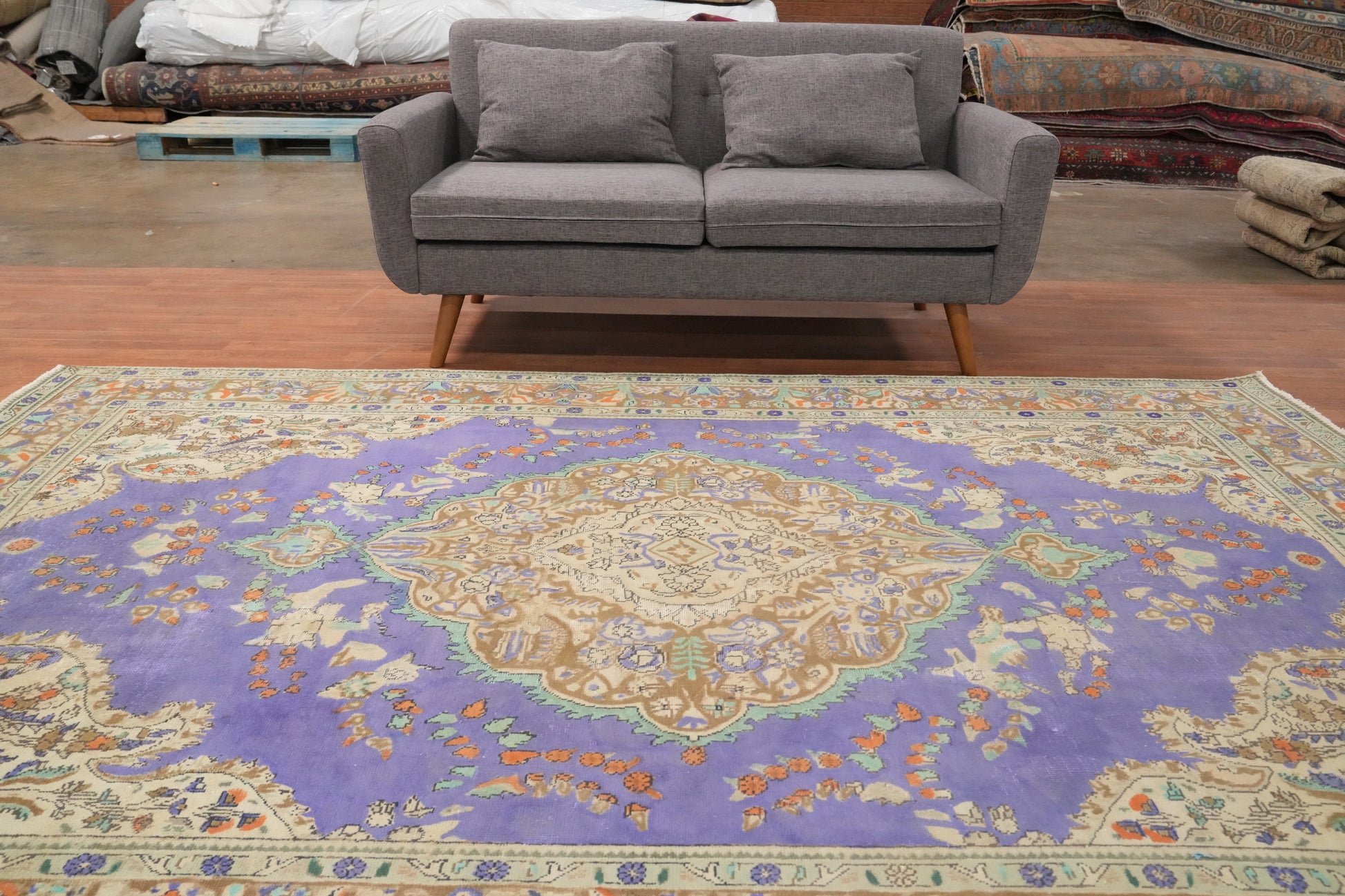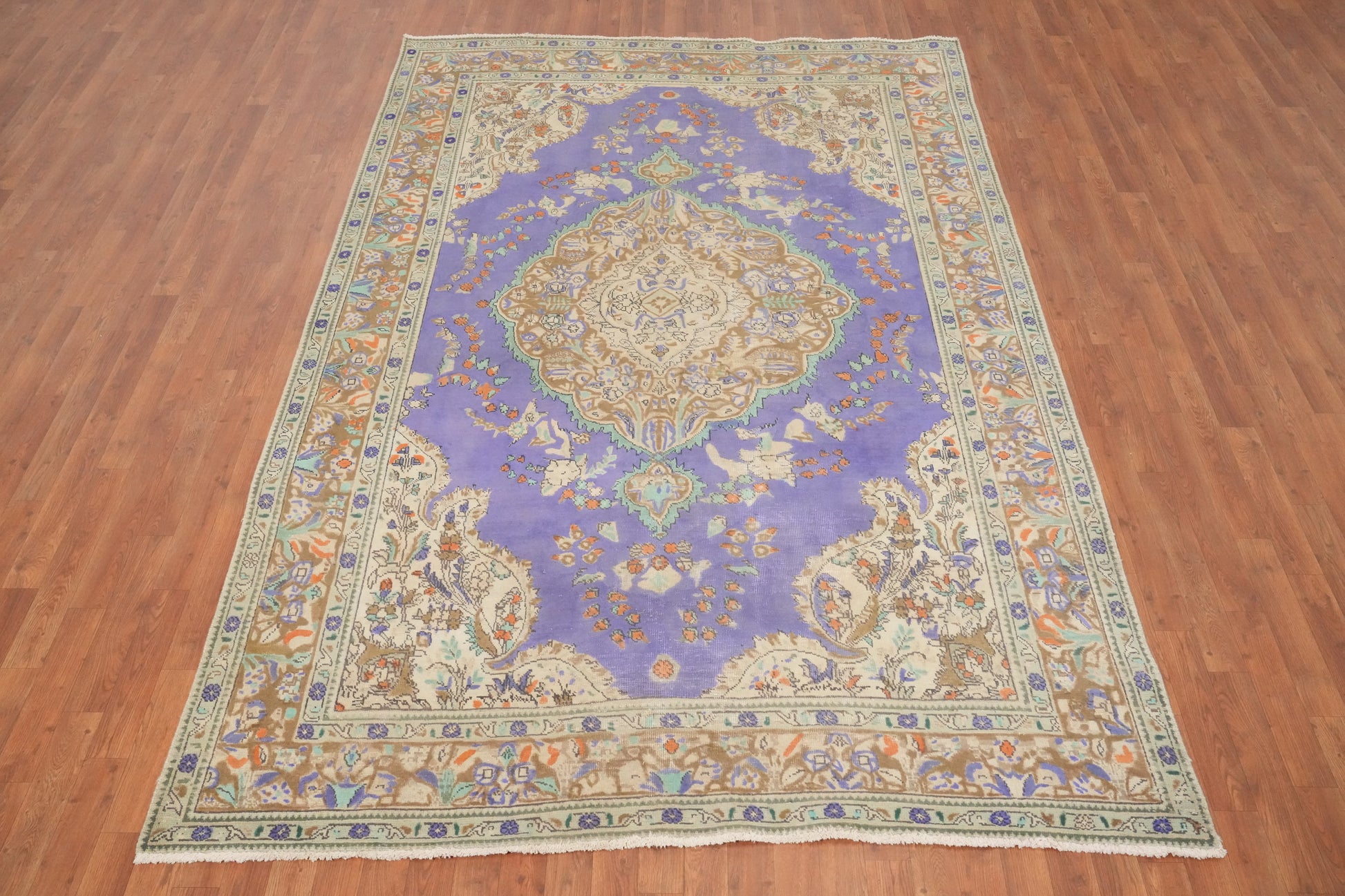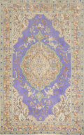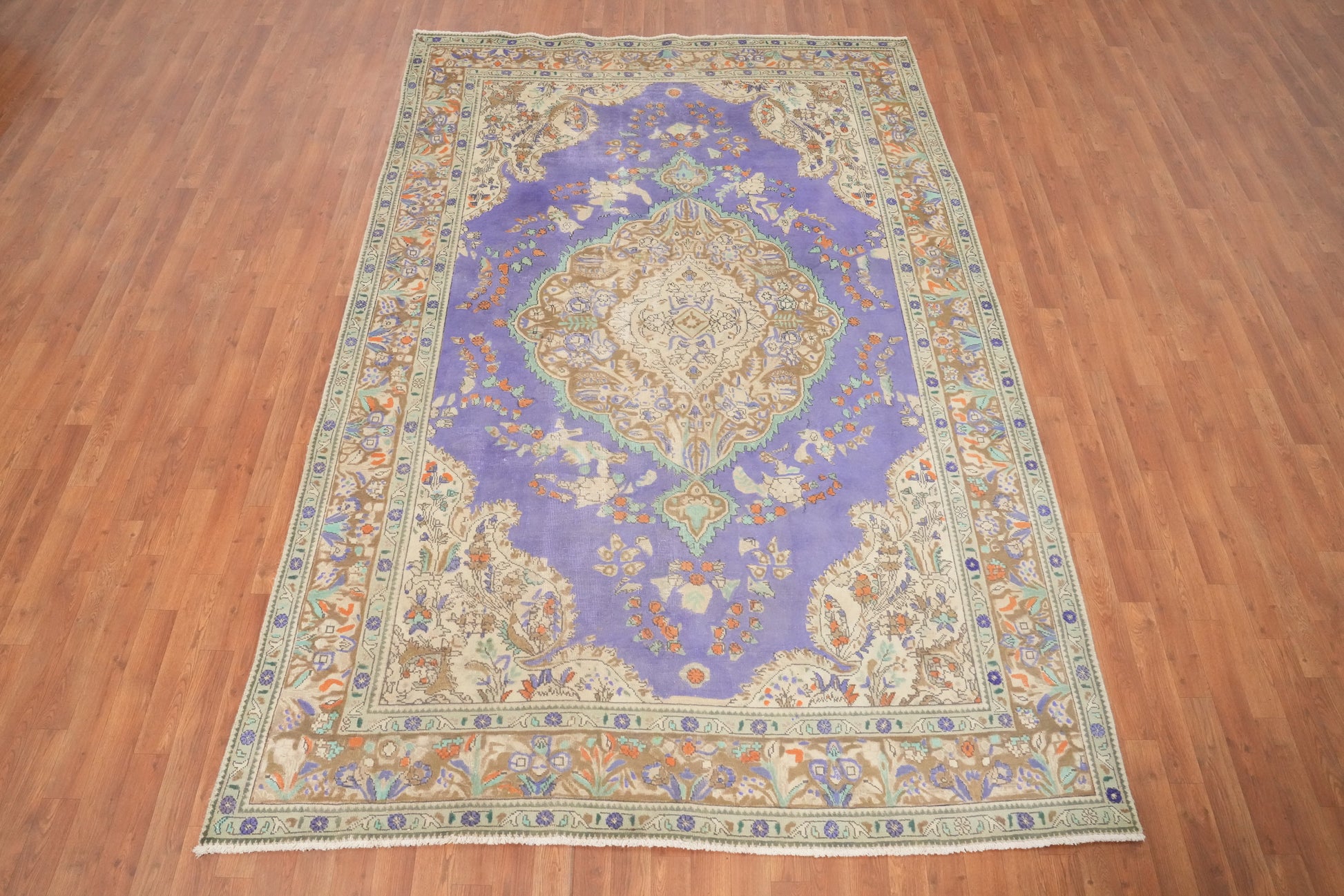 Purple Wool Floral Tabriz Persian Area Rug 7x10