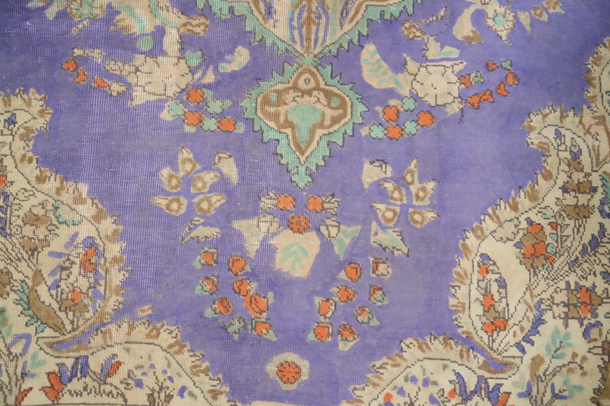 A Beautiful Genuine Persia ( Persia ) Tabriz rug is Hand Knotted by skillful weavers in Persia ( Persia ) with 100% Wool Material. This rug is in Very Good (Evenly Low Pile) condition. dimensions are 9' 9'' X 6' 7'' in foot and 297 X 201 in centimeter. the primary color is Purples.