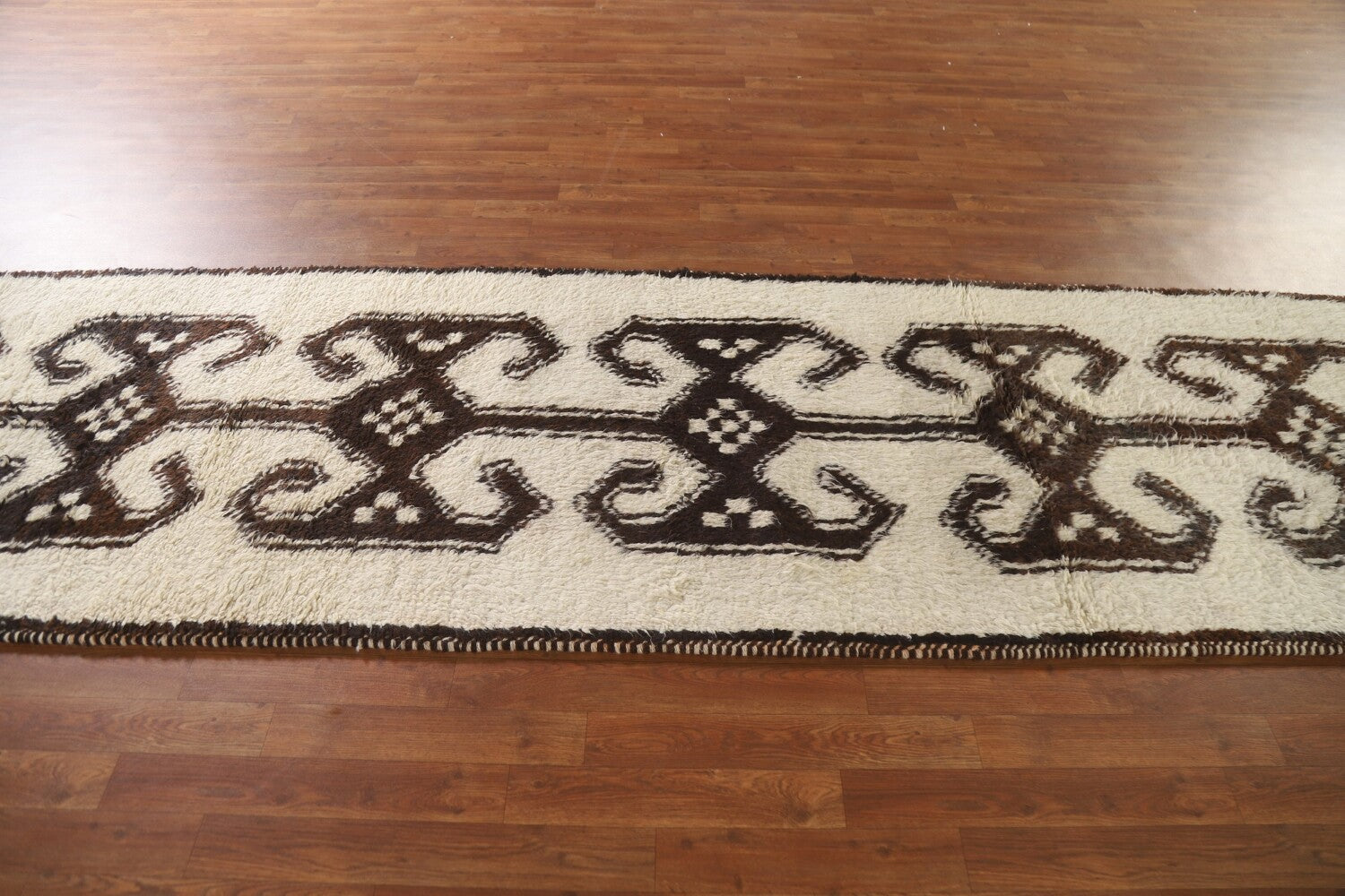 A Beautiful Genuine Turkey Anatolian rug is Hand Knotted by skillful weavers in Turkey with 100% Wool Material. This rug is in New, First Quality condition. dimensions are 11' 4'' X 3' 2'' in foot and 345 X 97 in centimeter. the primary color is Beige & Ivories.
