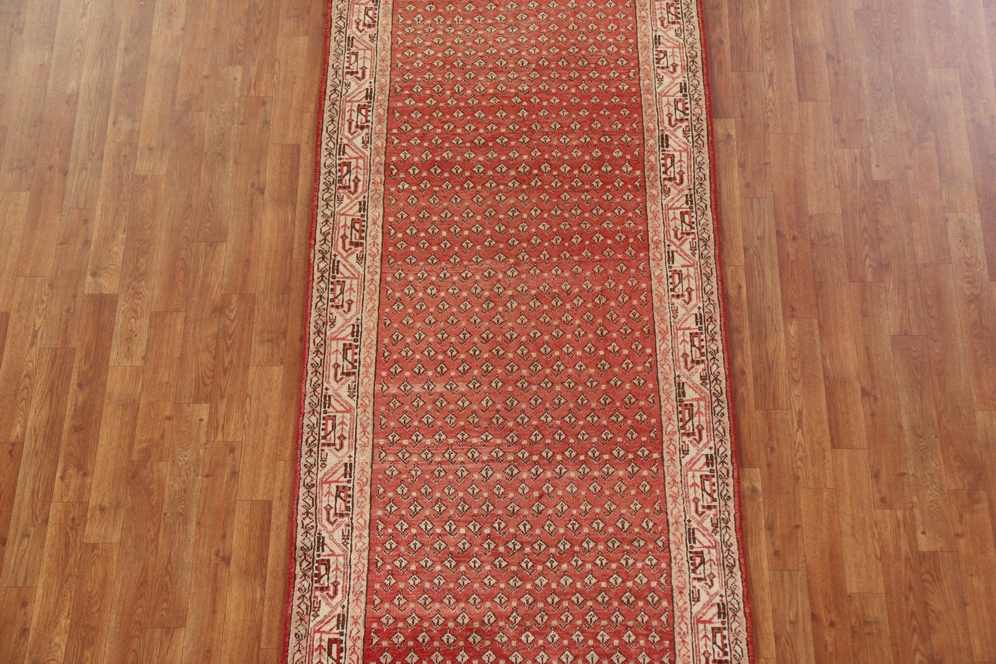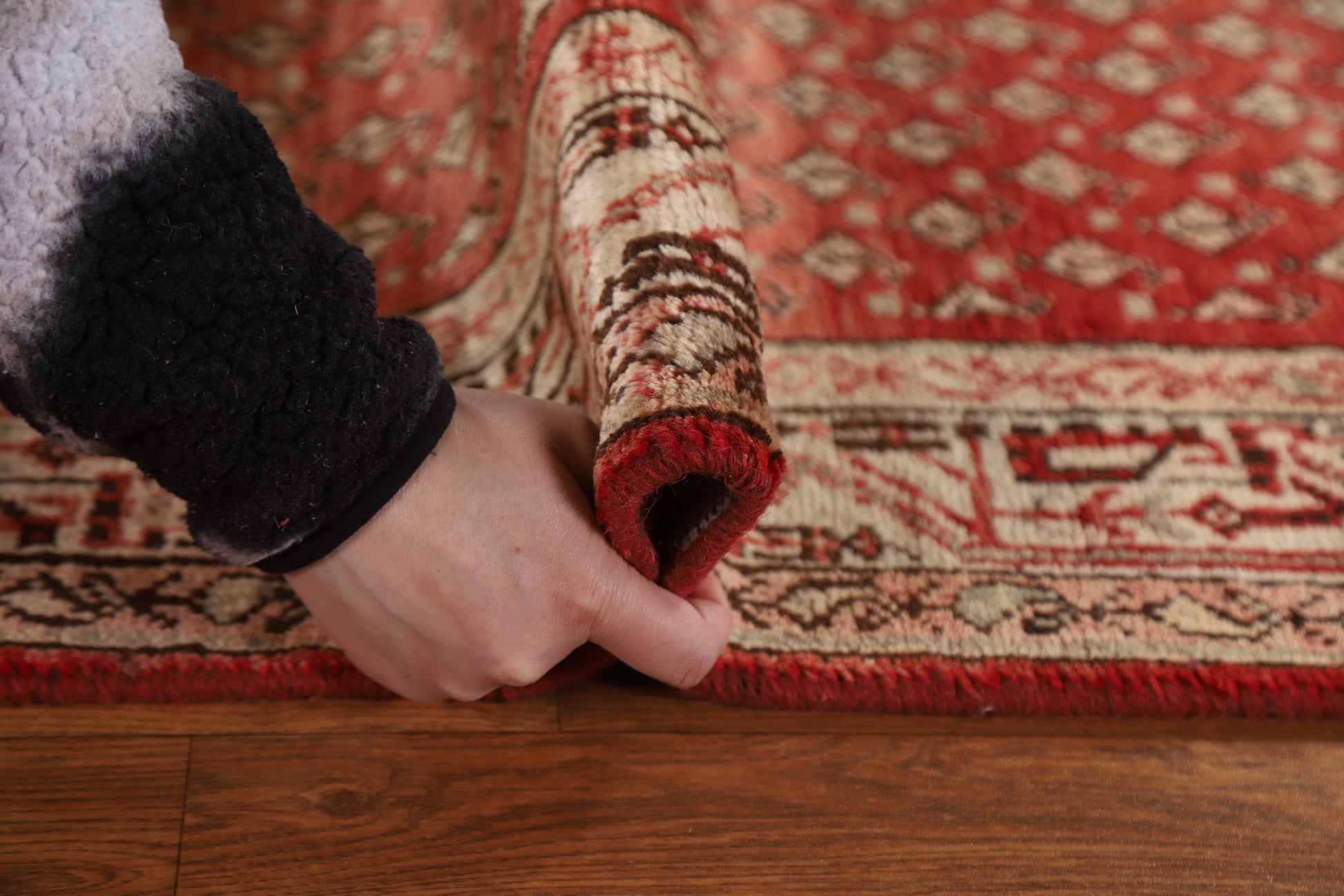 A Beautiful Genuine Persia ( Persia ) Botemir rug is Hand Knotted by skillful weavers in Persia ( Persia ) with 100% Wool Material. This rug is in Very Good condition. dimensions are 10' 0'' X 3' 5'' in foot and 305 X 104 in centimeter. the primary color is Red.