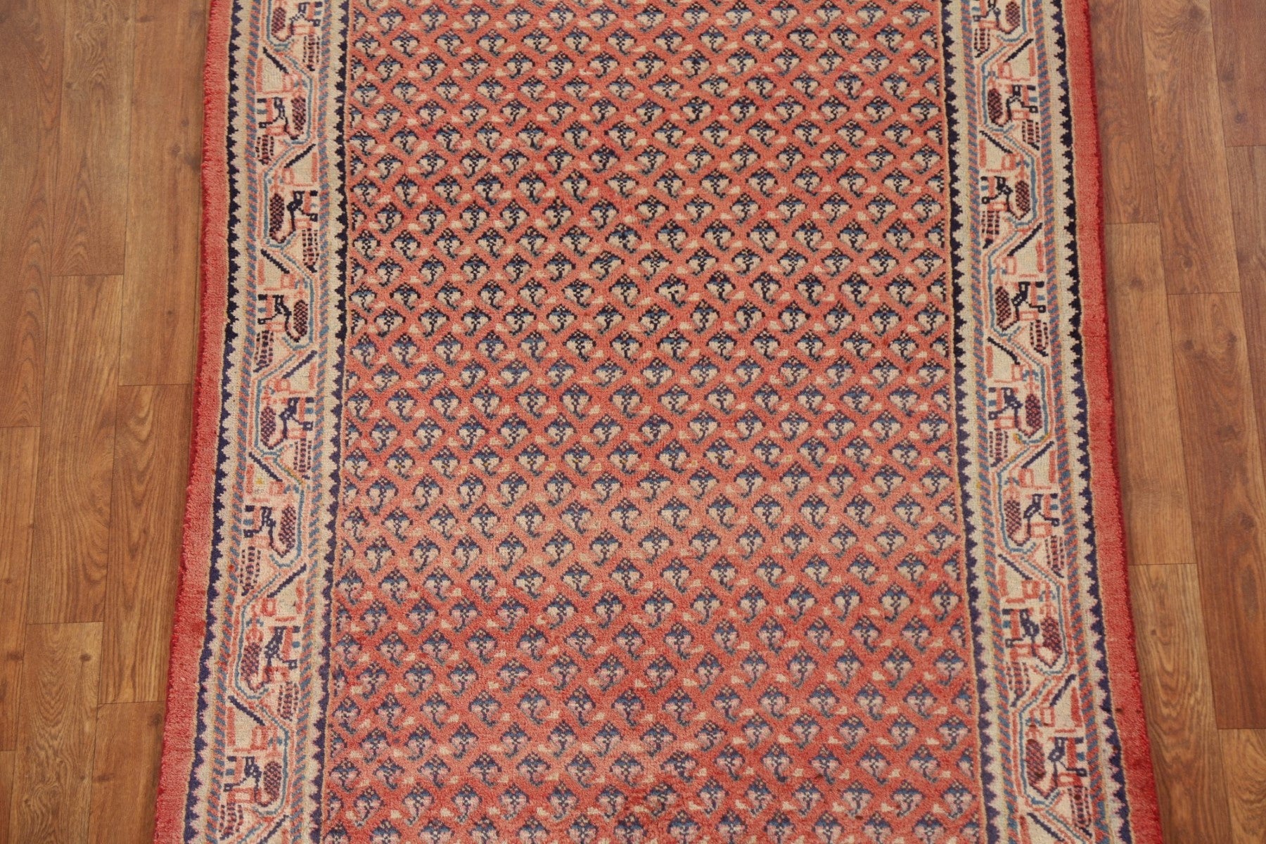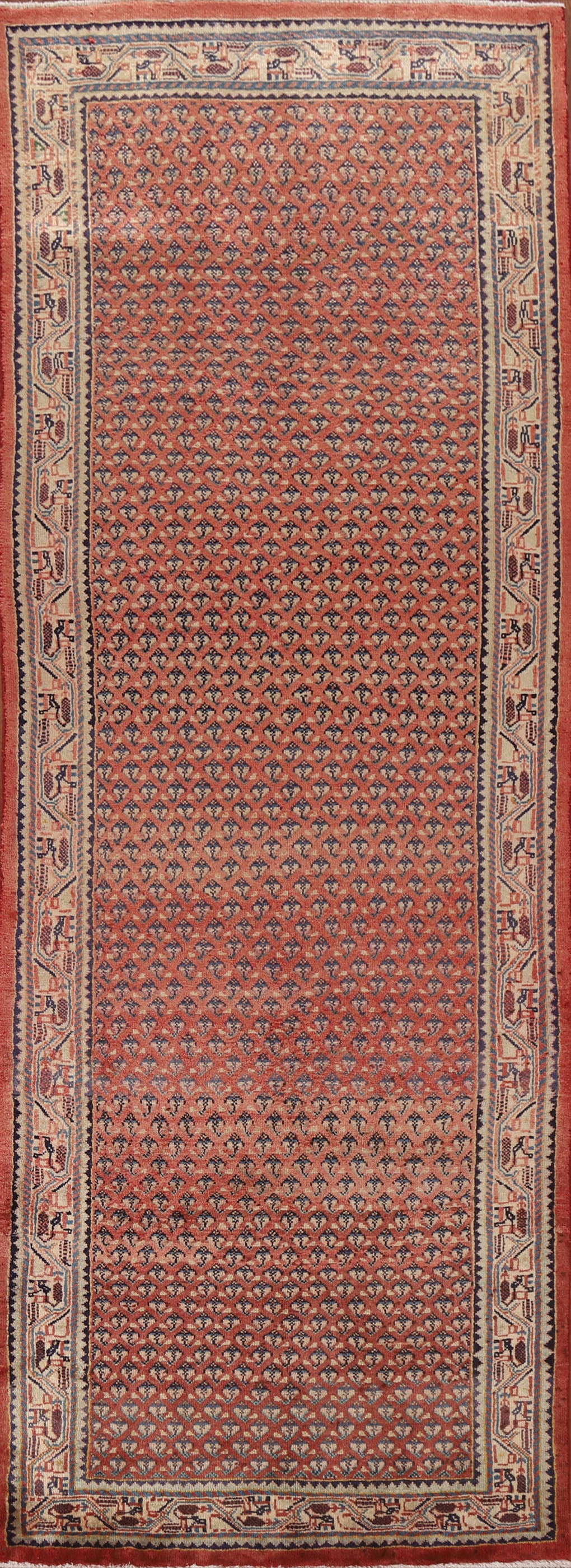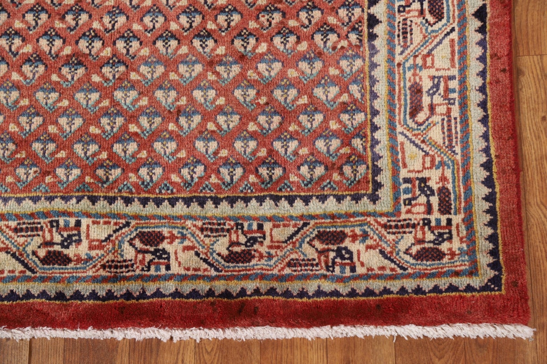A Beautiful Genuine Persia ( Persia ) Botemir rug is Hand Knotted by skillful weavers in Persia ( Persia ) with 100% Wool Material. This rug is in Very Good condition. dimensions are 10' 1'' X 3' 6'' in foot and 307 X 107 in centimeter. the primary color is Red.
