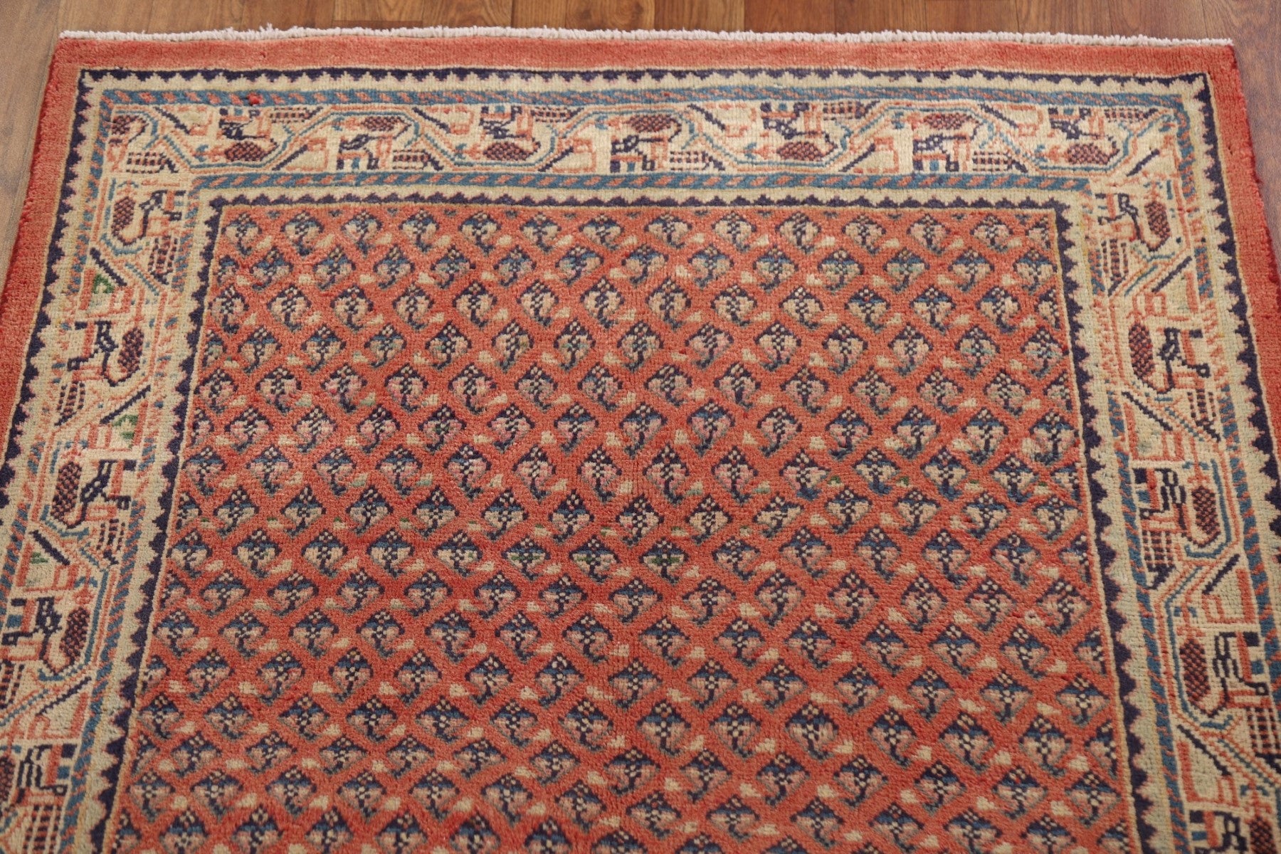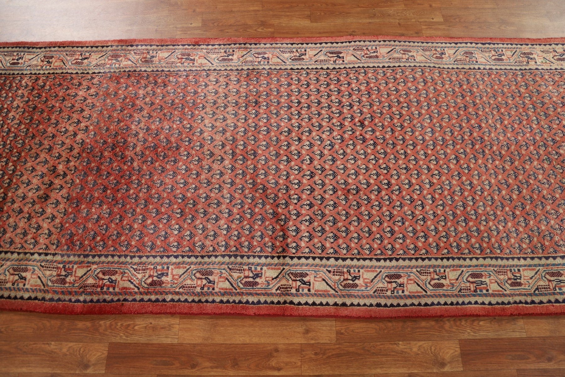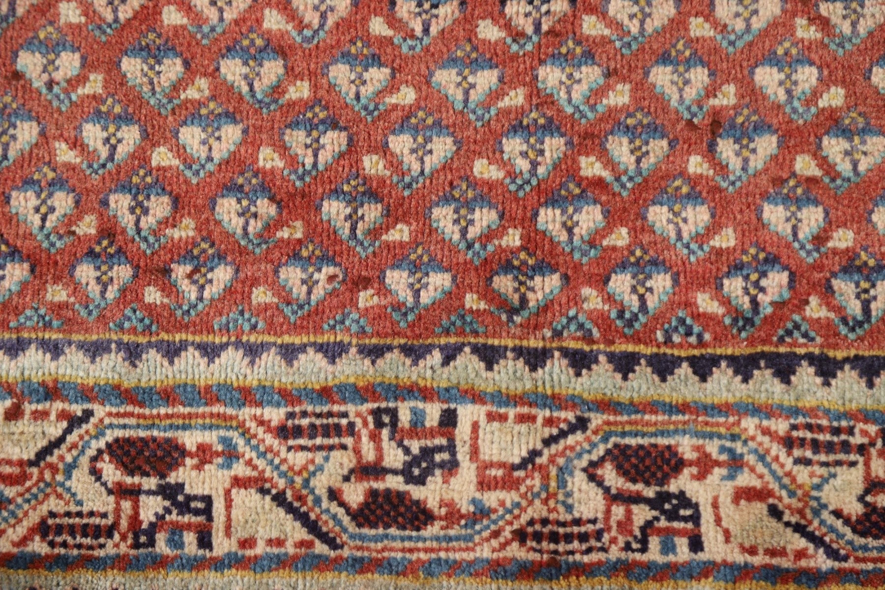 A Beautiful Genuine Persia ( Persia ) Botemir rug is Hand Knotted by skillful weavers in Persia ( Persia ) with 100% Wool Material. This rug is in Very Good condition. dimensions are 10' 1'' X 3' 6'' in foot and 307 X 107 in centimeter. the primary color is Red.