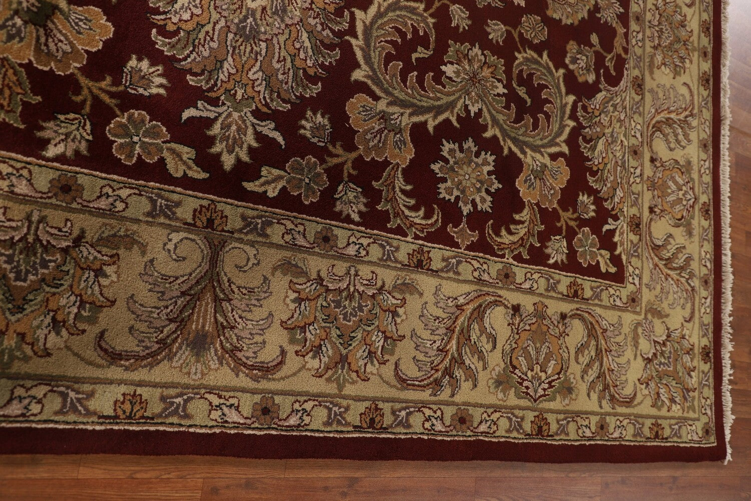 A Beautiful Genuine India Agra rug is Hand Knotted by skillful weavers in India with 100% Wool Material. This rug is in condition. dimensions are 10' 1'' X 8' 3'' in foot and 307 X 251 in centimeter. the primary color is Red.