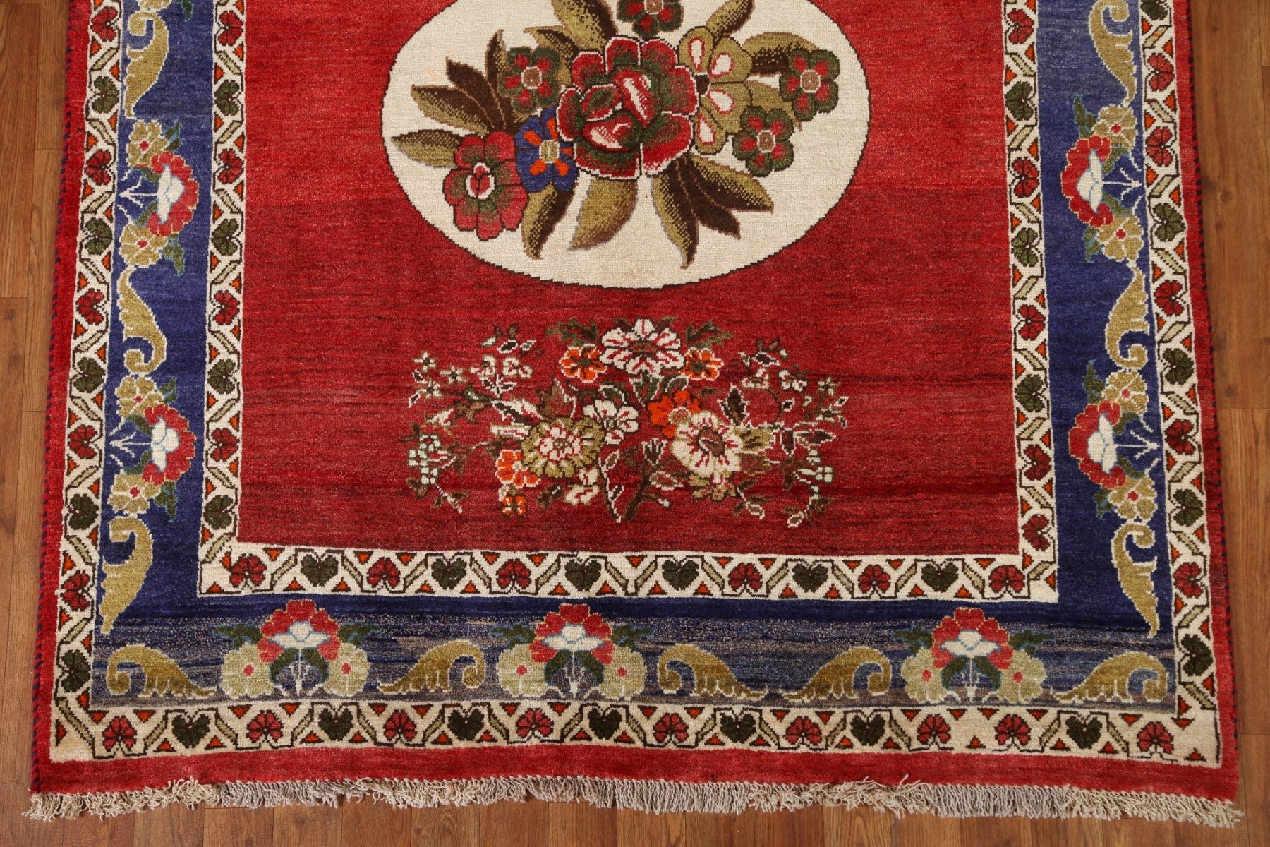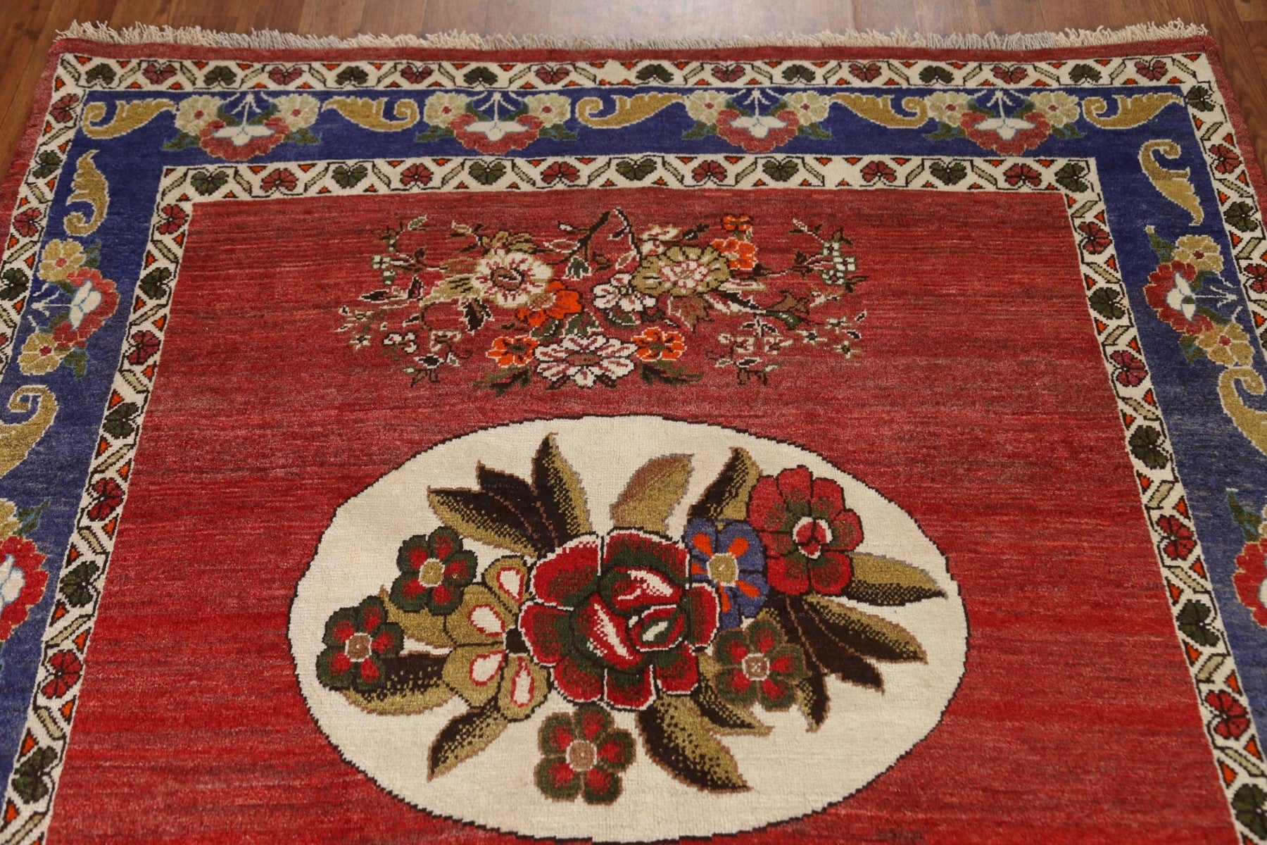 A Beautiful Genuine Persia ( Persia ) Bakhtiari rug is Hand Knotted by skillful weavers in Persia ( Persia ) with 100% Wool Material. This rug is in Excellent condition. dimensions are 7' 7'' X 4' 10'' in foot and 231 X 147 in centimeter. the primary color is Red.