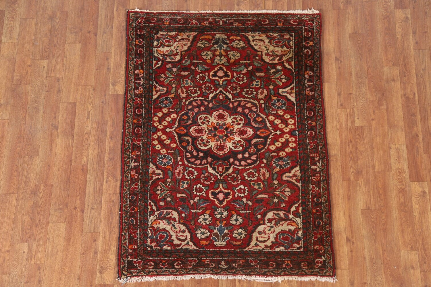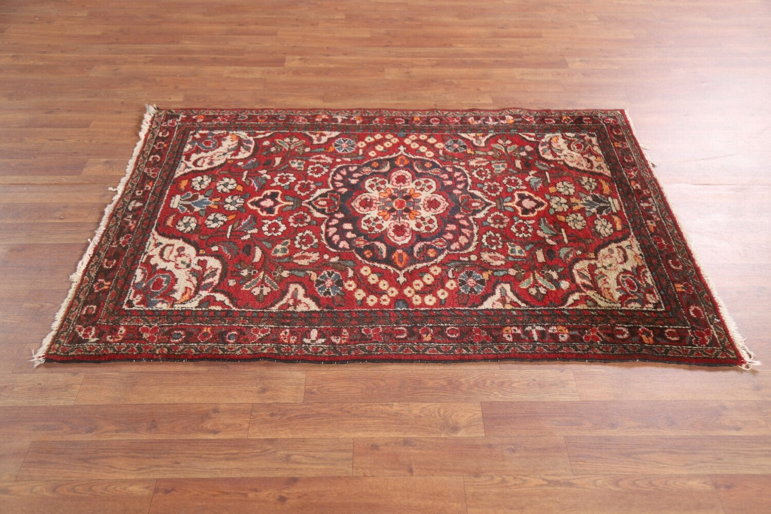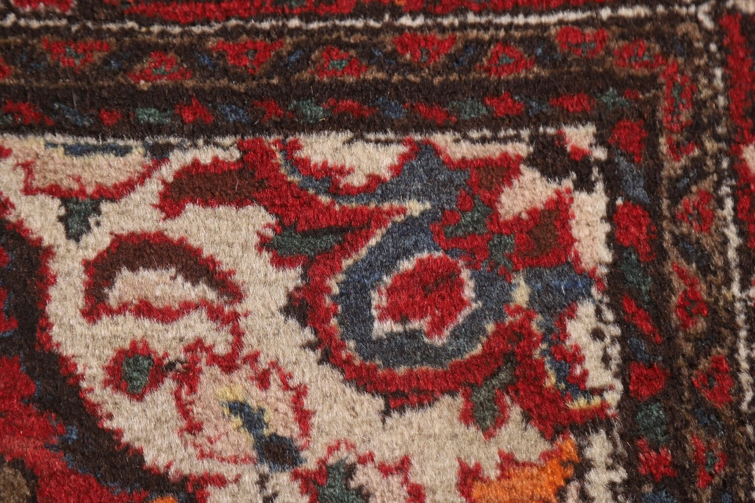 A Beautiful Genuine Persia ( Persia ) Hamedan rug is Hand Knotted by skillful weavers in Persia ( Persia ) with 100% Wool Material. This rug is in Very Good condition. dimensions are 4' 10'' X 3' 6'' in foot and 147 X 107 in centimeter. the primary color is Red.