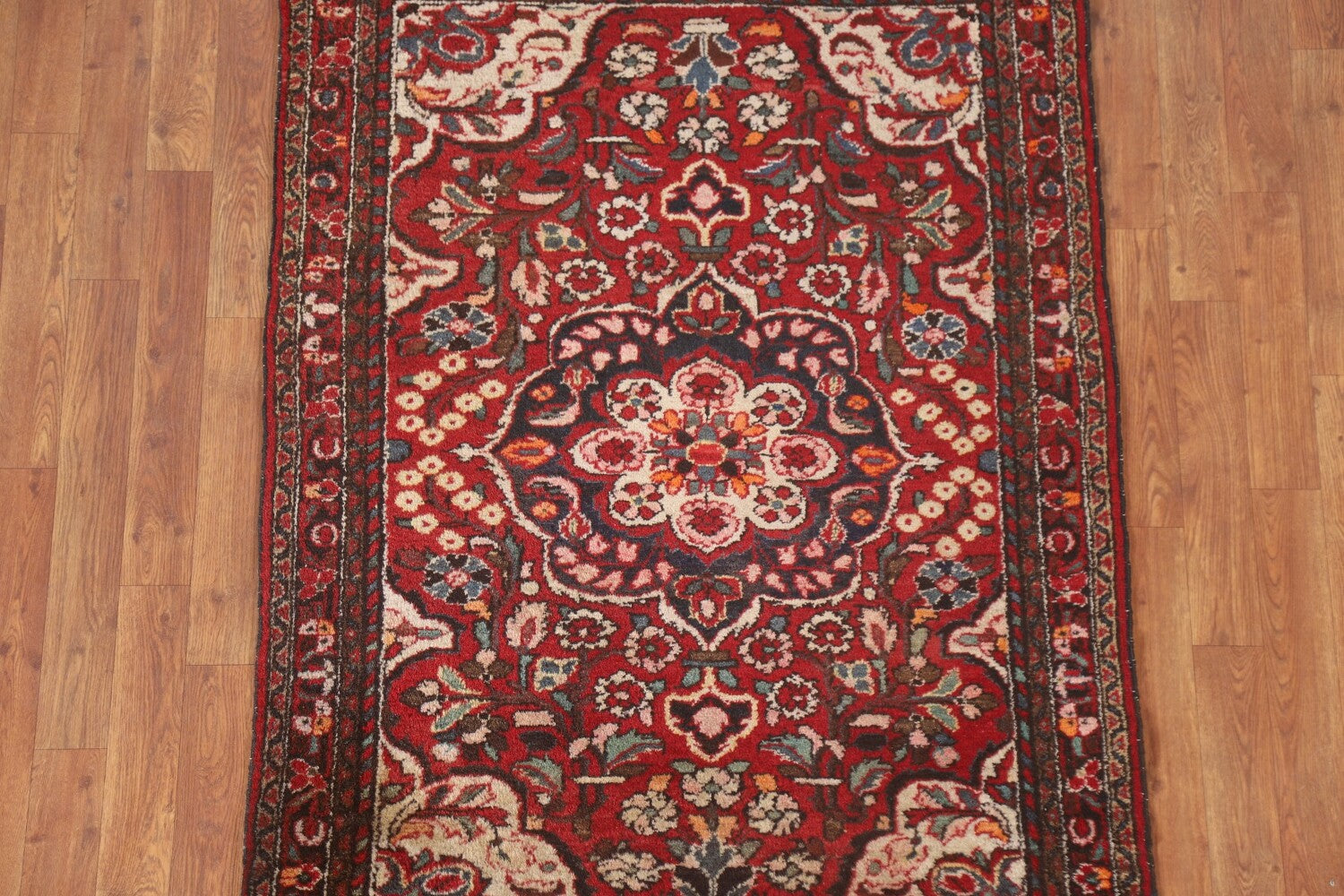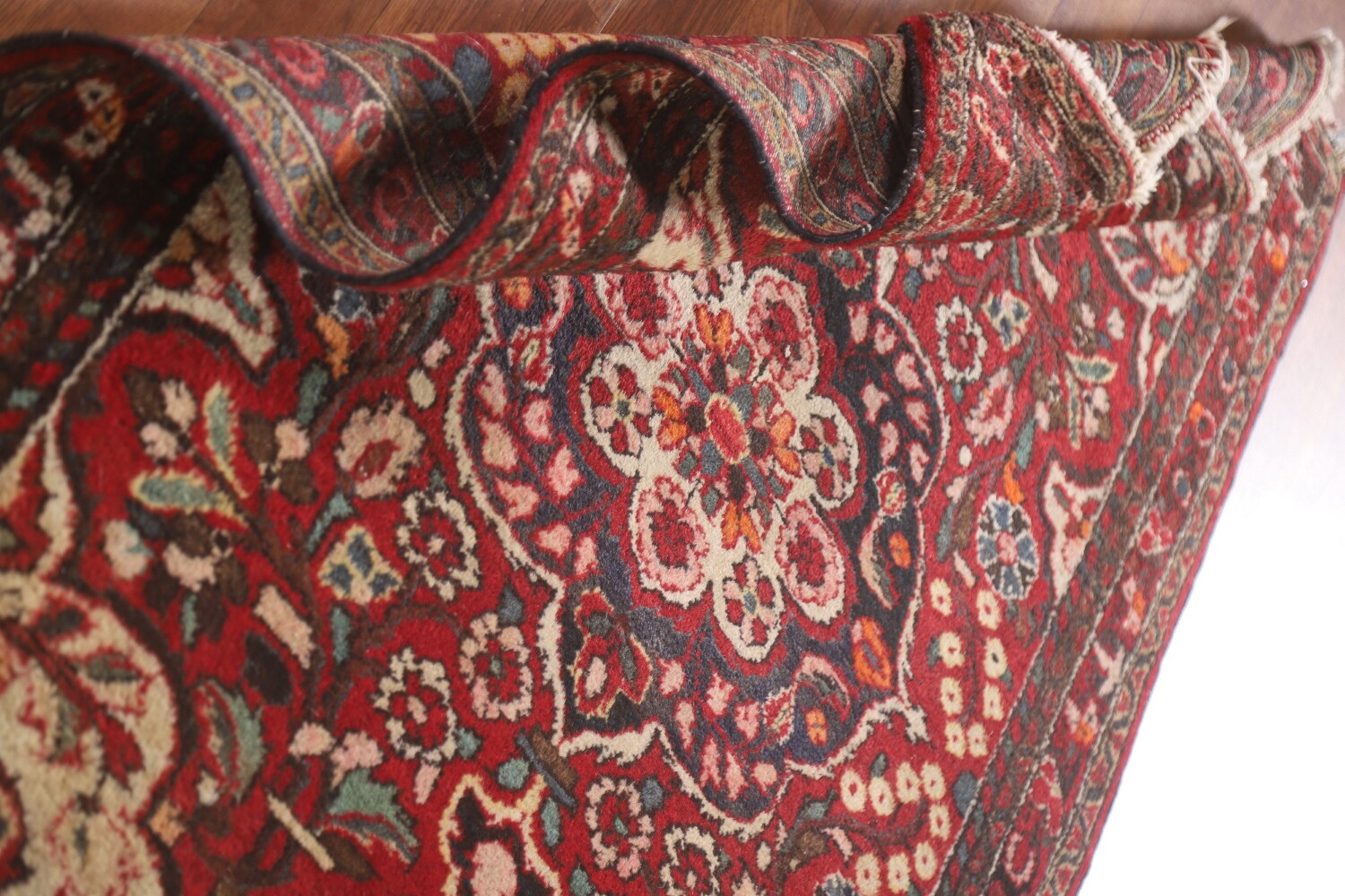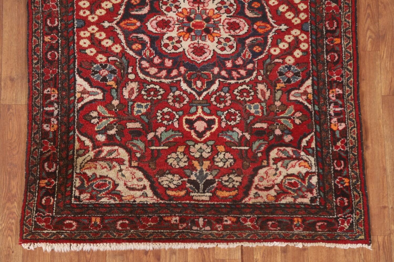 A Beautiful Genuine Persia ( Persia ) Hamedan rug is Hand Knotted by skillful weavers in Persia ( Persia ) with 100% Wool Material. This rug is in Very Good condition. dimensions are 4' 10'' X 3' 6'' in foot and 147 X 107 in centimeter. the primary color is Red.