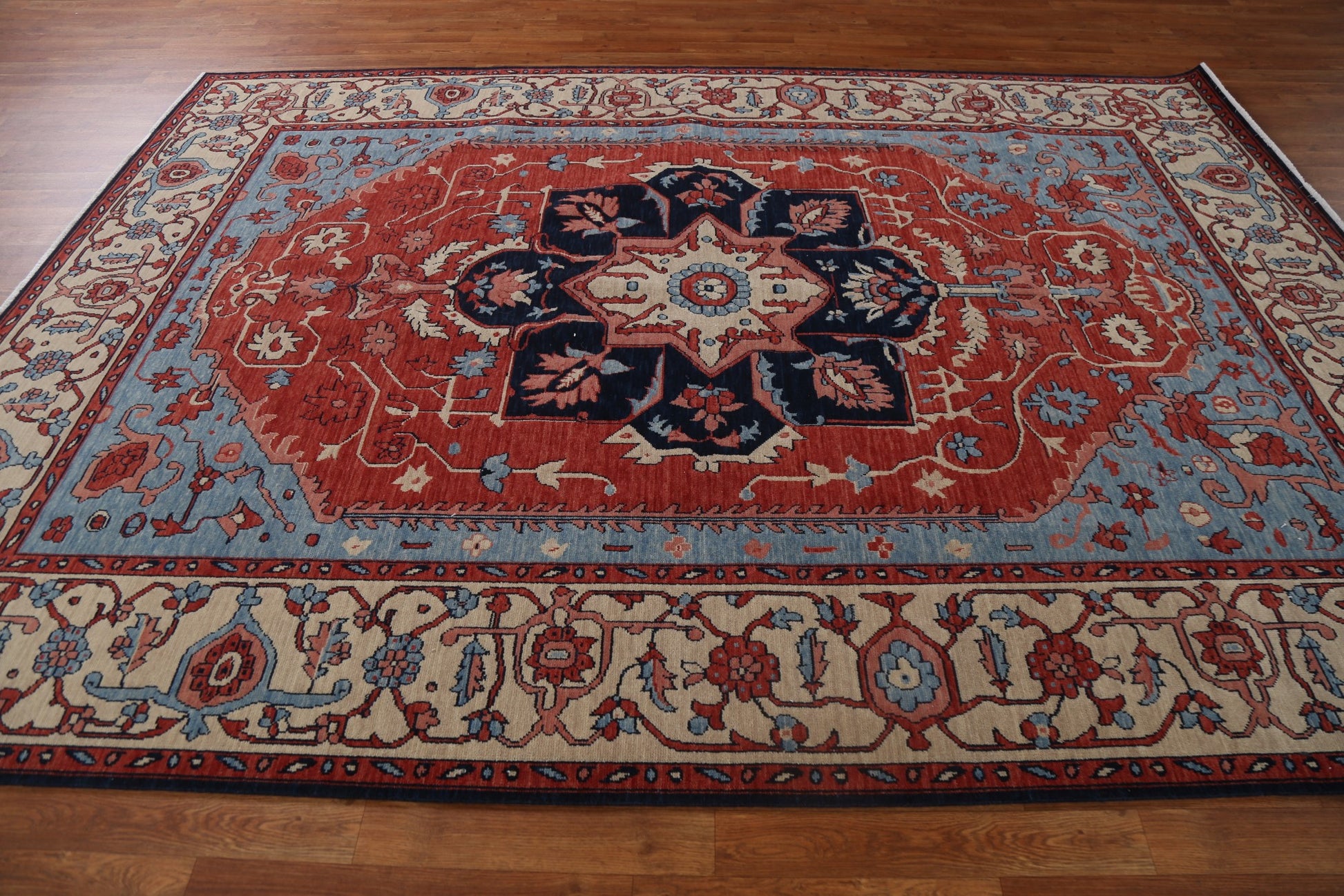 A Beautiful Genuine Turkey Heriz (serapi) rug is Hand Knotted by skillful weavers in Turkey with 100% Wool Material. This rug is in New, First Quality condition. dimensions are 9' 9'' X 7' 0'' in foot and 297 X 213 in centimeter. the primary color is Red.