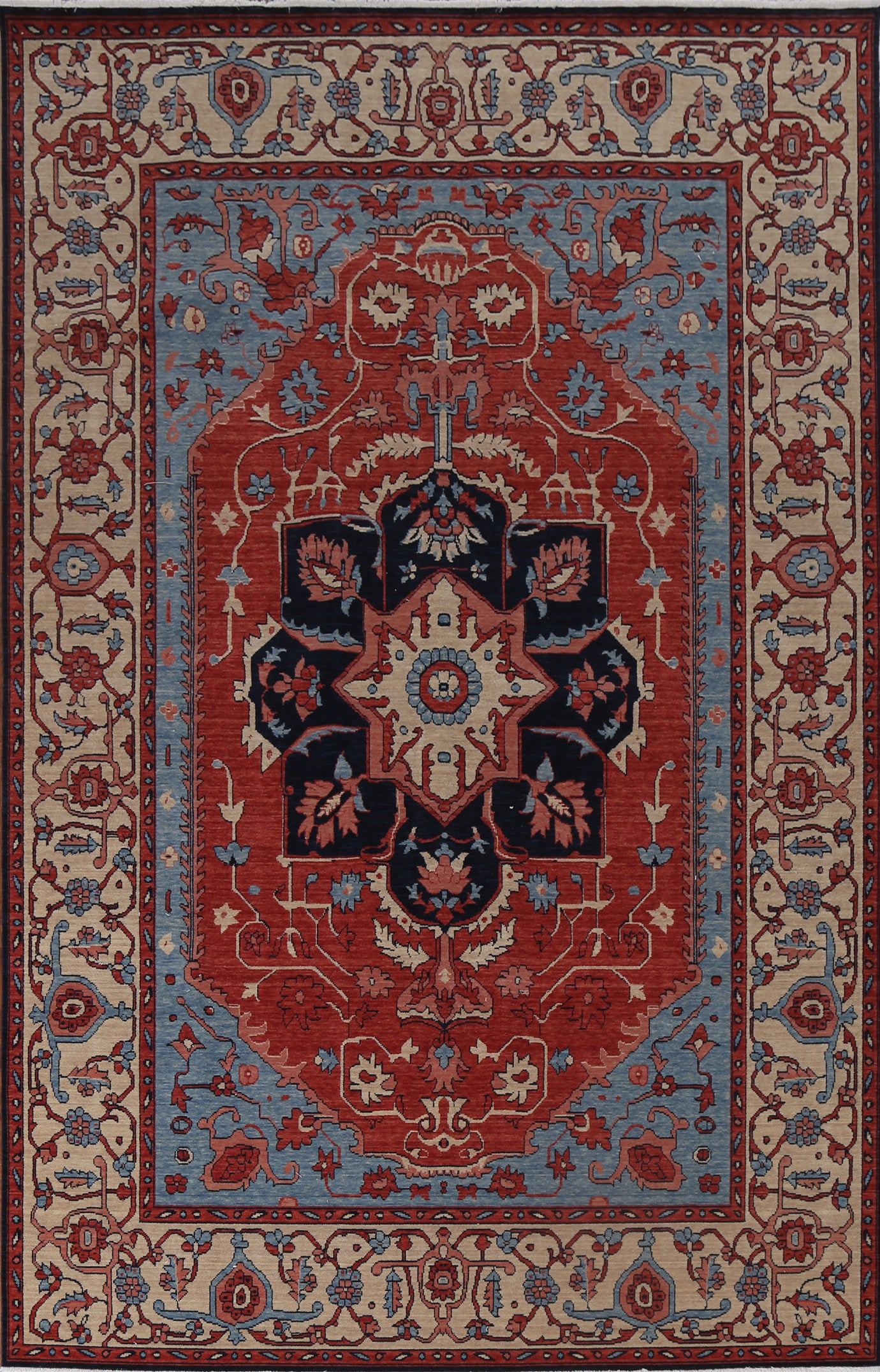 Red Floral Heriz Serapi Turkish Area Rug 7x10