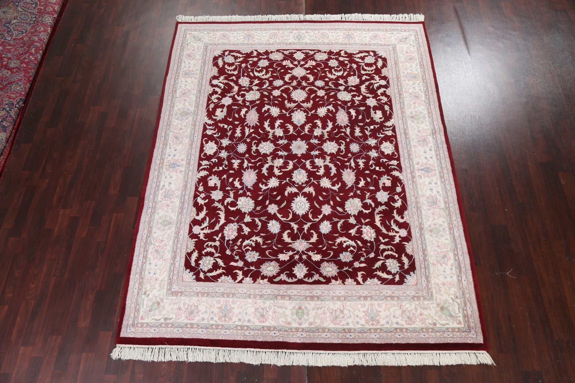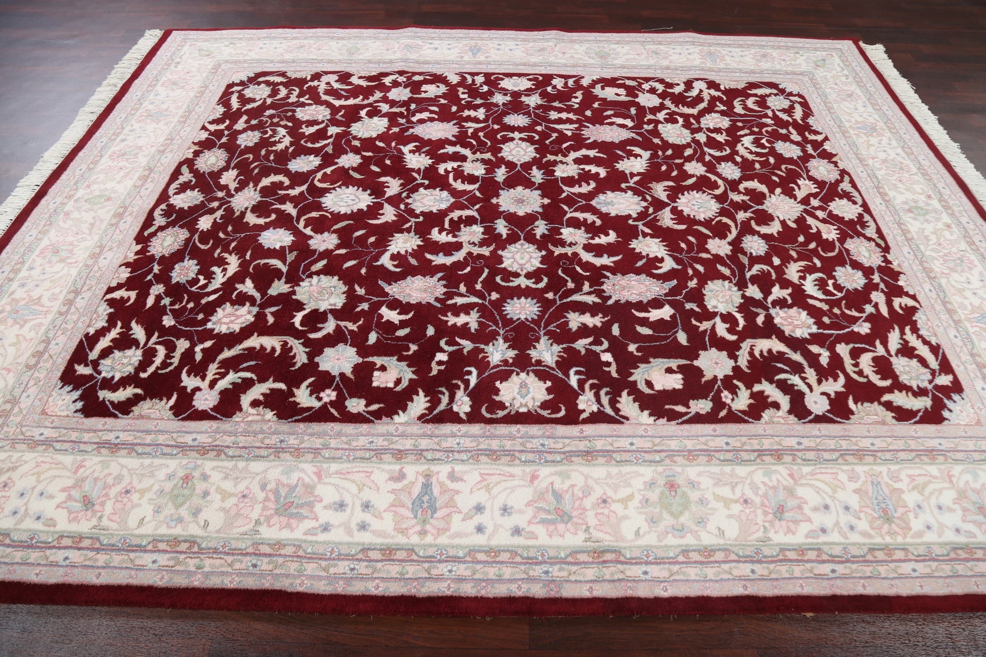 A Beautiful Genuine India Kashan rug is Hand Knotted by skillful weavers in India with 100% Wool Material. This rug is in New, First Quality condition. dimensions are 10' 1'' X 7' 11'' in foot and 307 X 241 in centimeter. the primary color is Red.