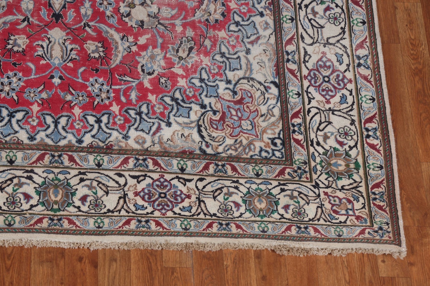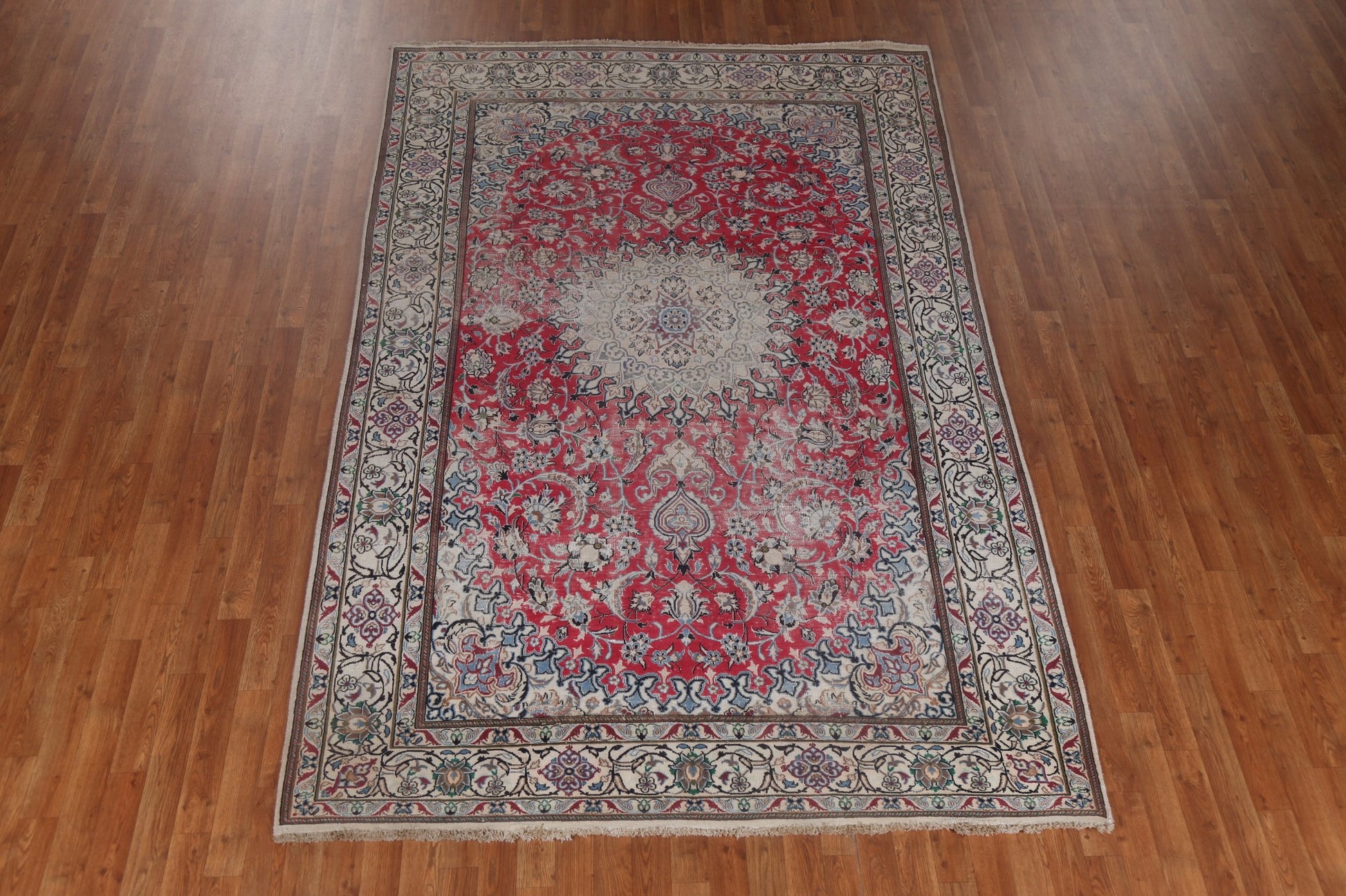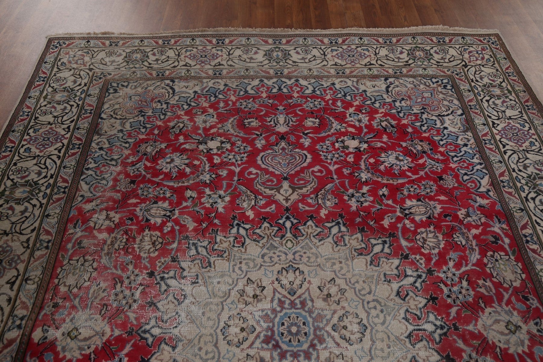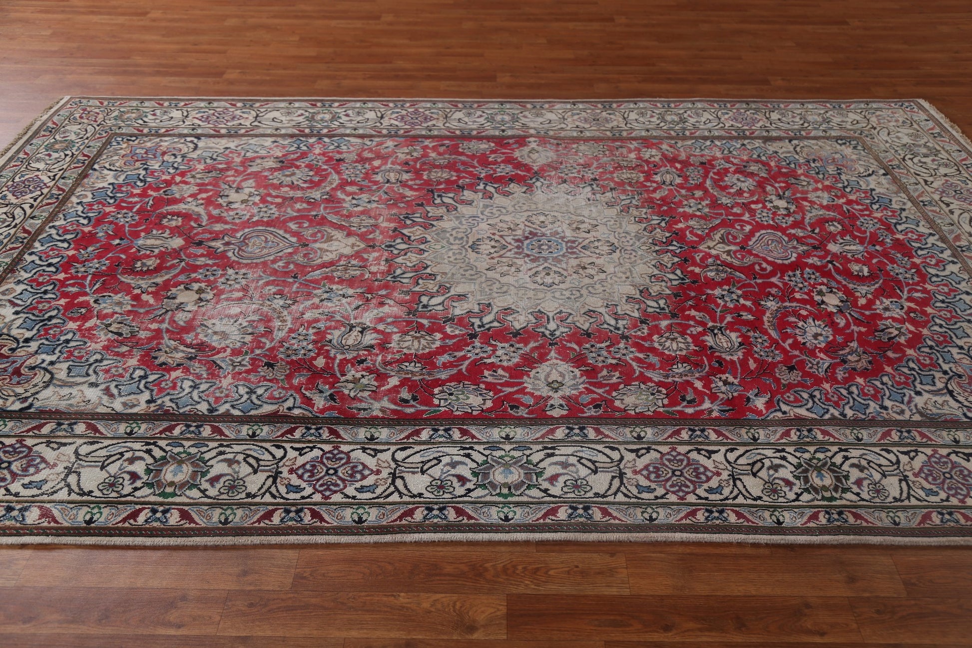 A Beautiful Genuine Persia ( Persia ) Nain rug is Hand Knotted by skillful weavers in Persia ( Persia ) with 100% Wool Material. This rug is in Very Good (Evenly Low Pile) condition. dimensions are 9' 9'' X 6' 1'' in foot and 297 X 185 in centimeter. the primary color is Red.