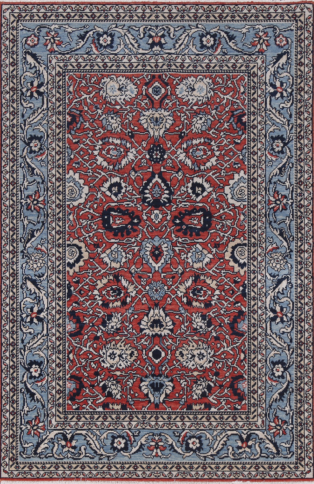 A Beautiful Genuine Turkey Sultanabad (Ziegler) rug is Hand Knotted by skillful weavers in Turkey with 100% Wool Material. This rug is in New, First Quality condition. dimensions are 5' 10'' X 3' 11'' in foot and 178 X 119 in centimeter. the primary color is Red.