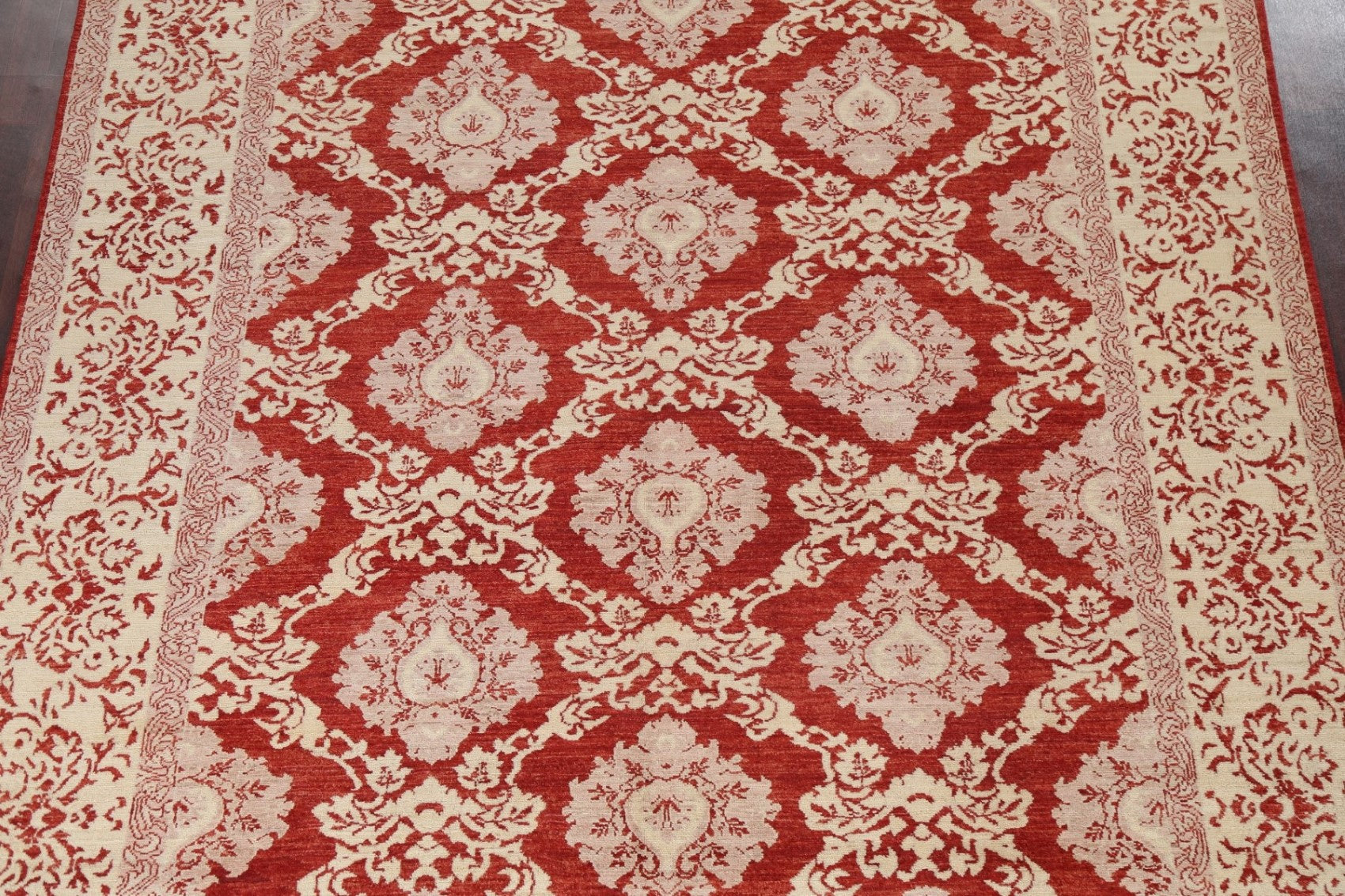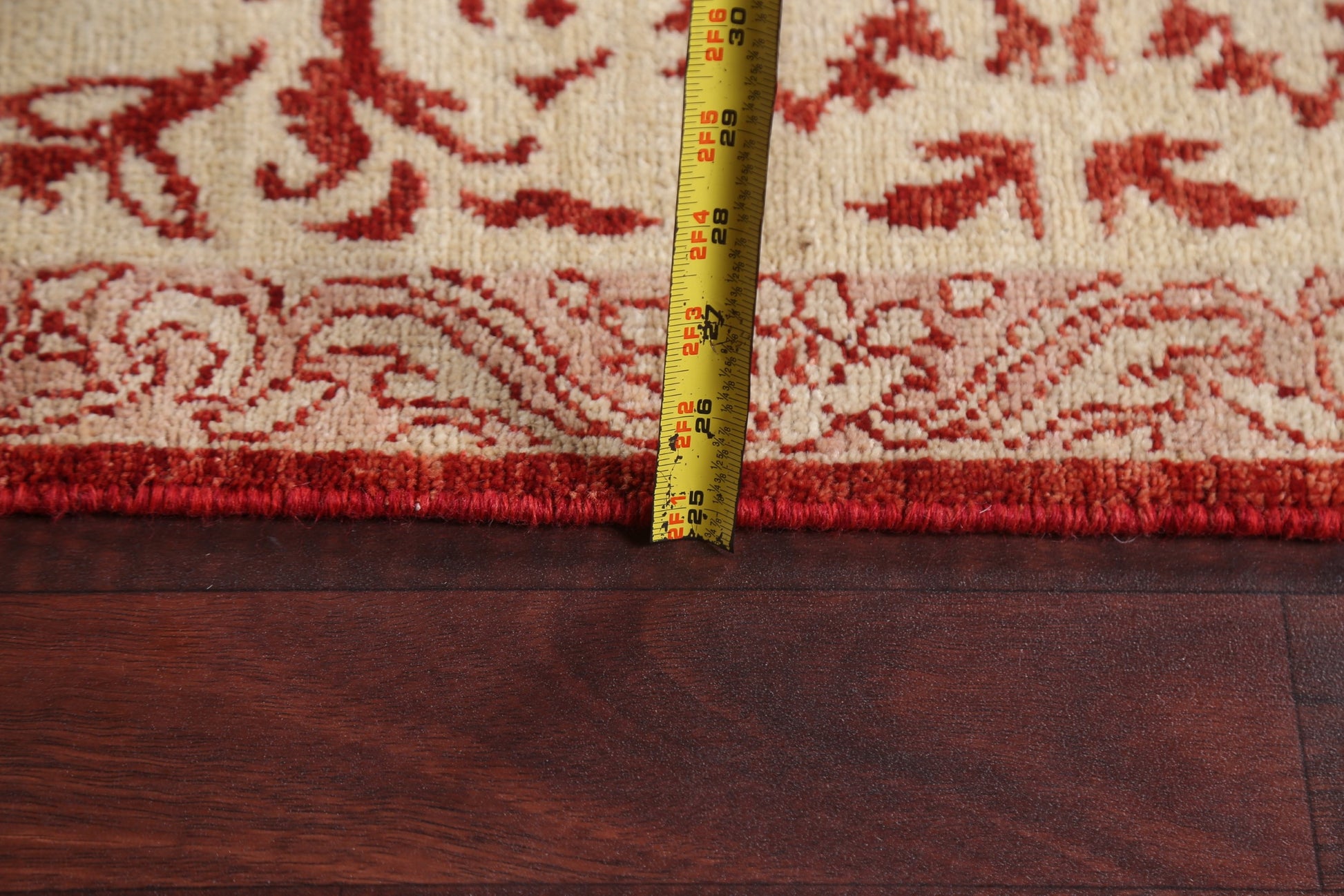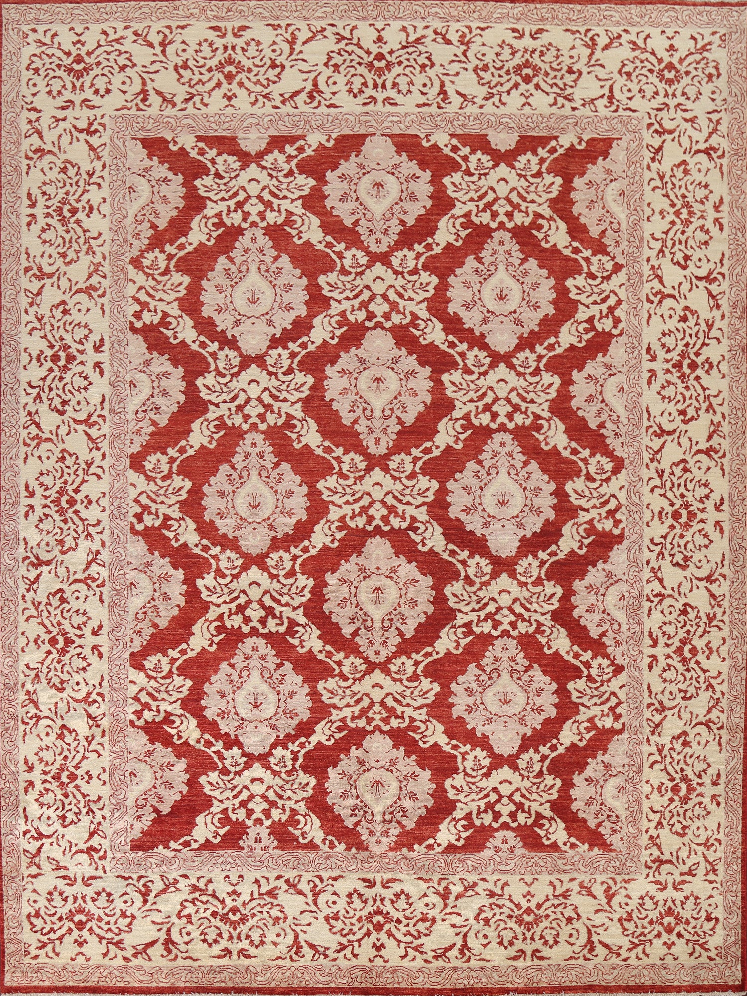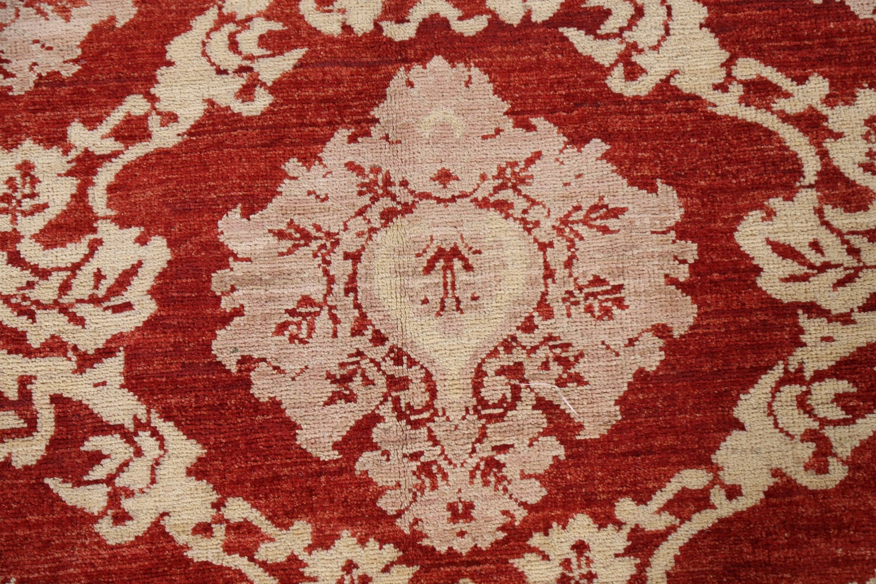 A Beautiful Genuine Pakistan Ziegler rug is Hand Knotted by skillful weavers in Pakistan with 100% Wool Material. This rug is in New, First Quality condition. dimensions are 9' 11'' X 8' 1'' in foot and 302 X 246 in centimeter. the primary color is Red.