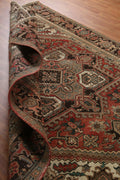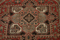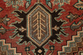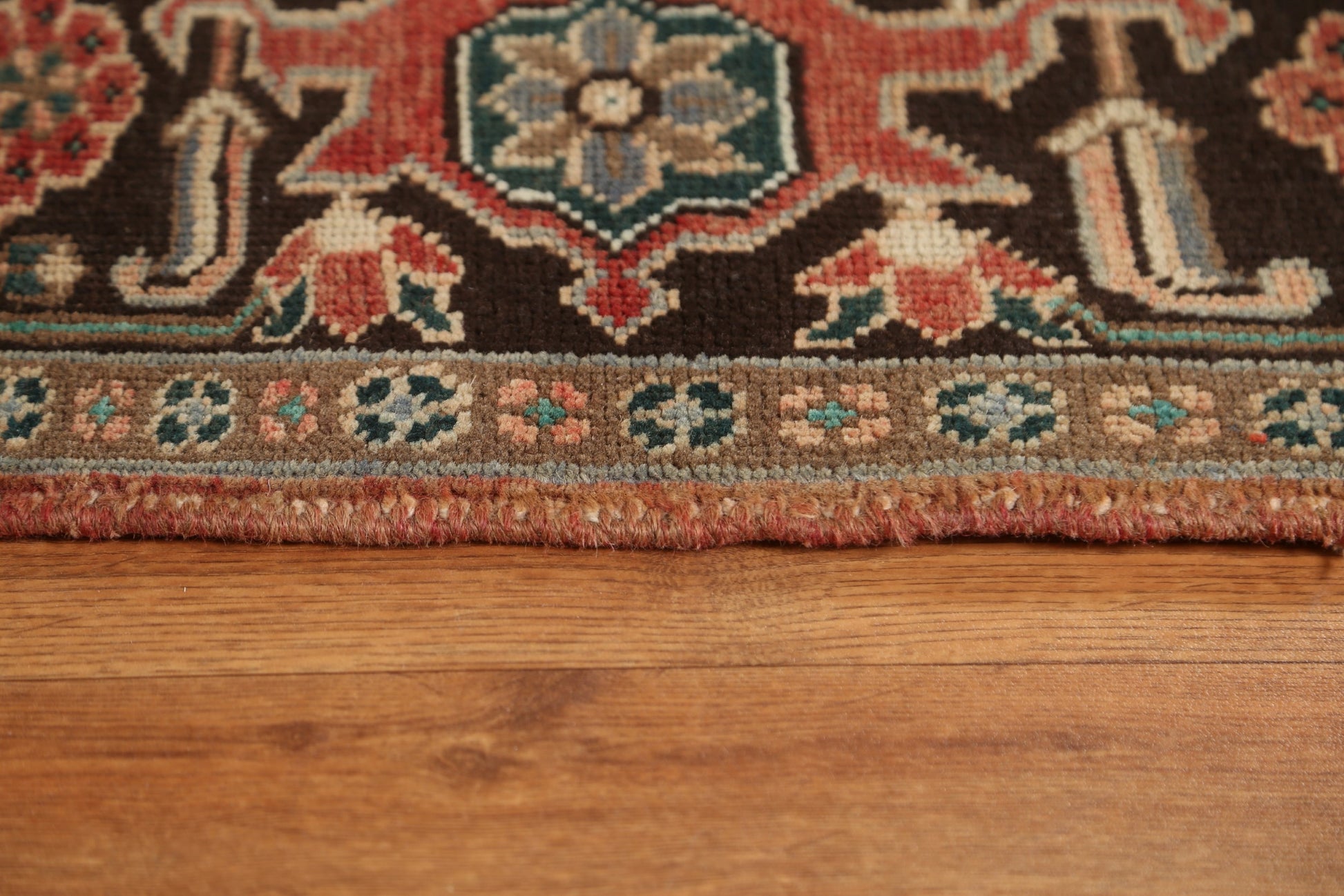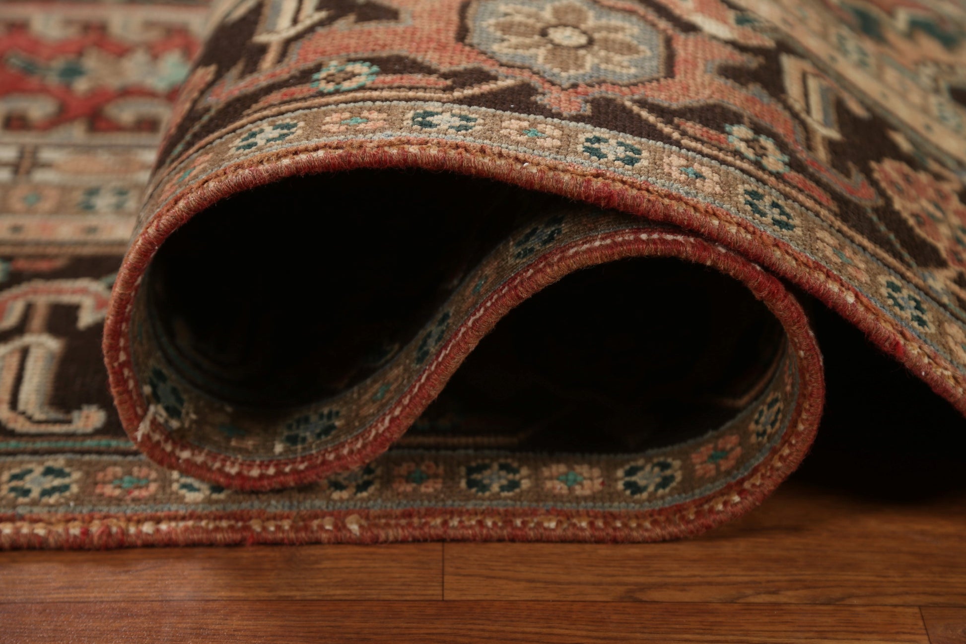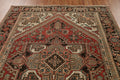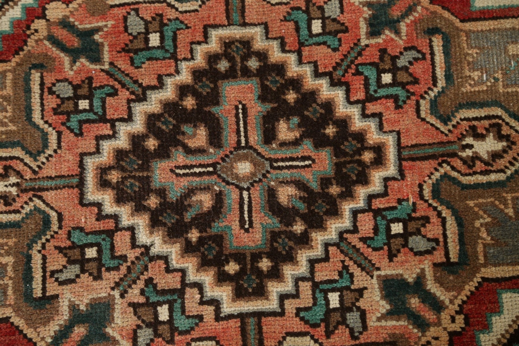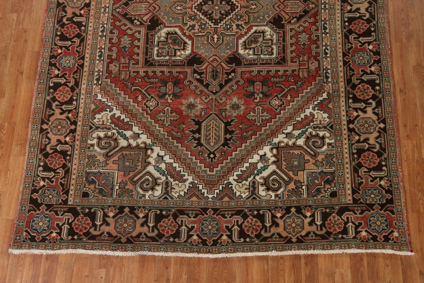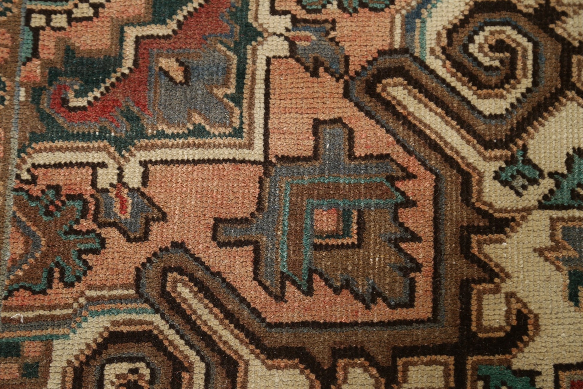 A Beautiful Genuine Persia ( Persia ) Heriz rug is Hand Knotted by skillful weavers in Persia ( Persia ) with 100% Wool Material. This rug is in Very Good ( Low Pile ) condition. dimensions are 9' 6'' X 6' 9'' in foot and 290 X 206 in centimeter. the primary color is Red.