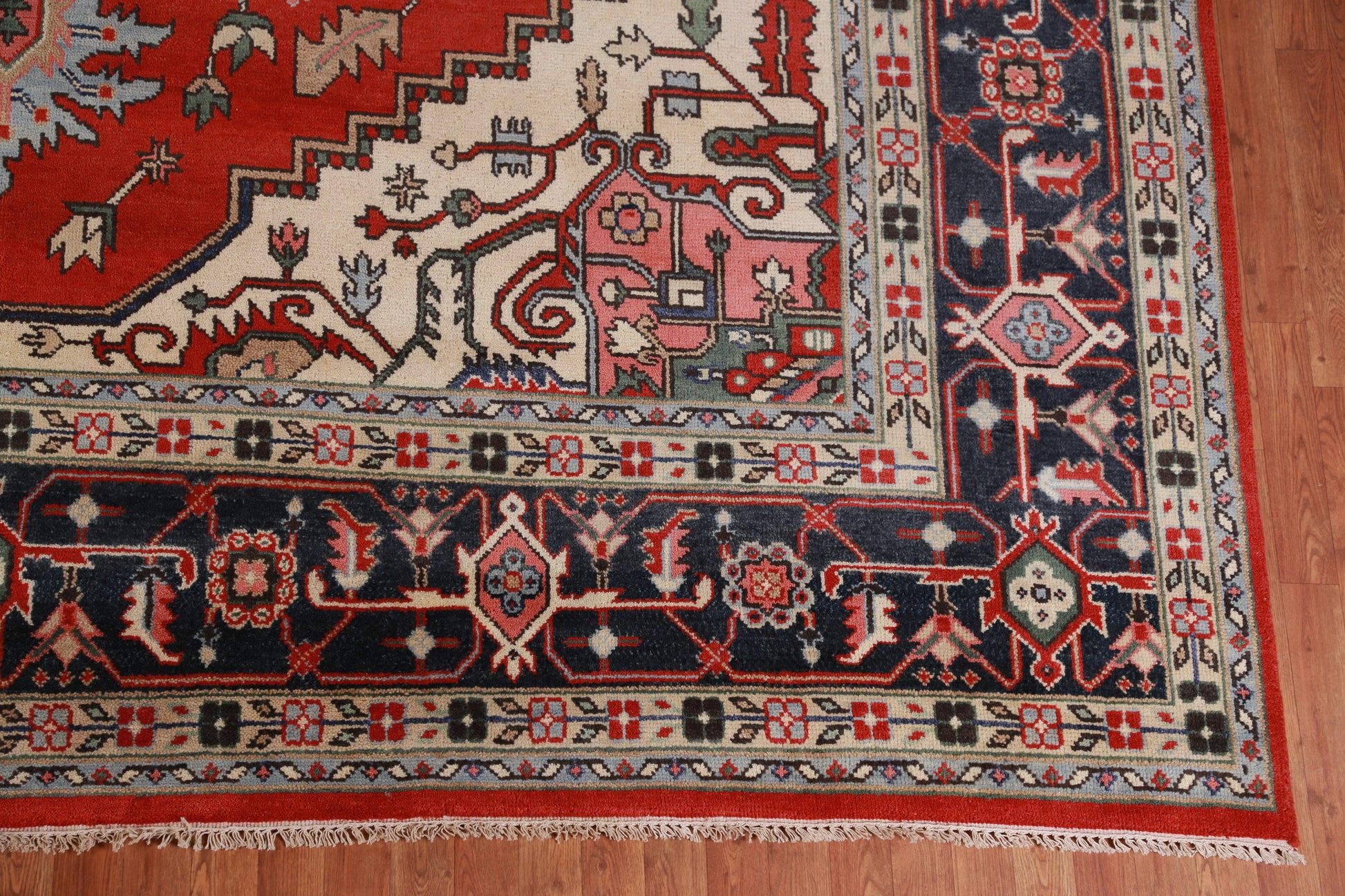 Red Geometric Heriz Serapi Oriental Large Rug 12x15