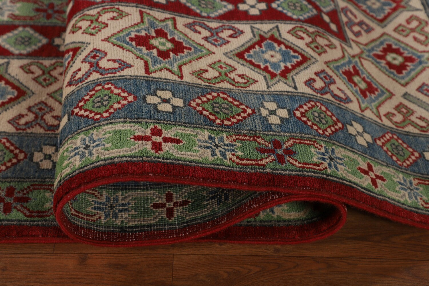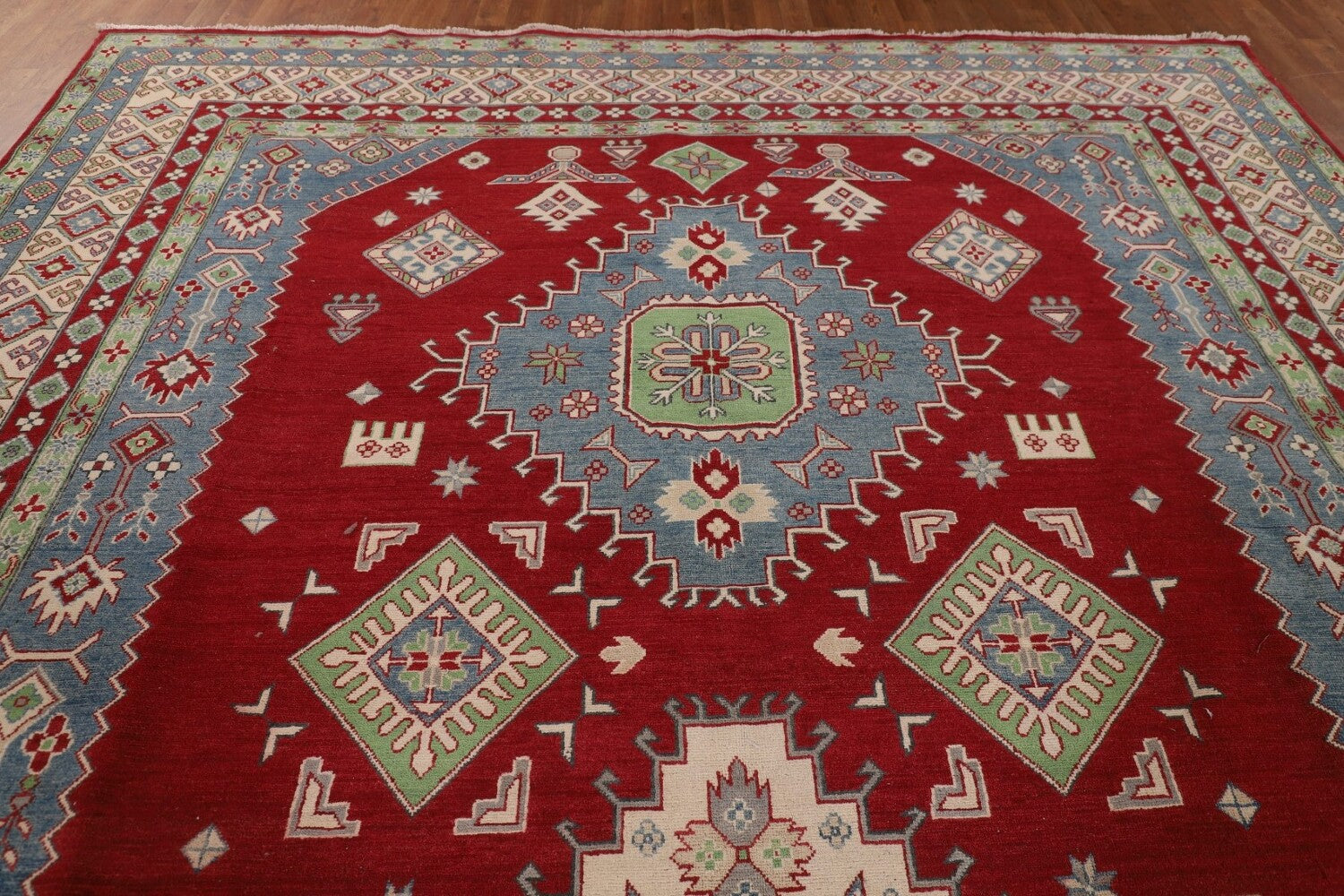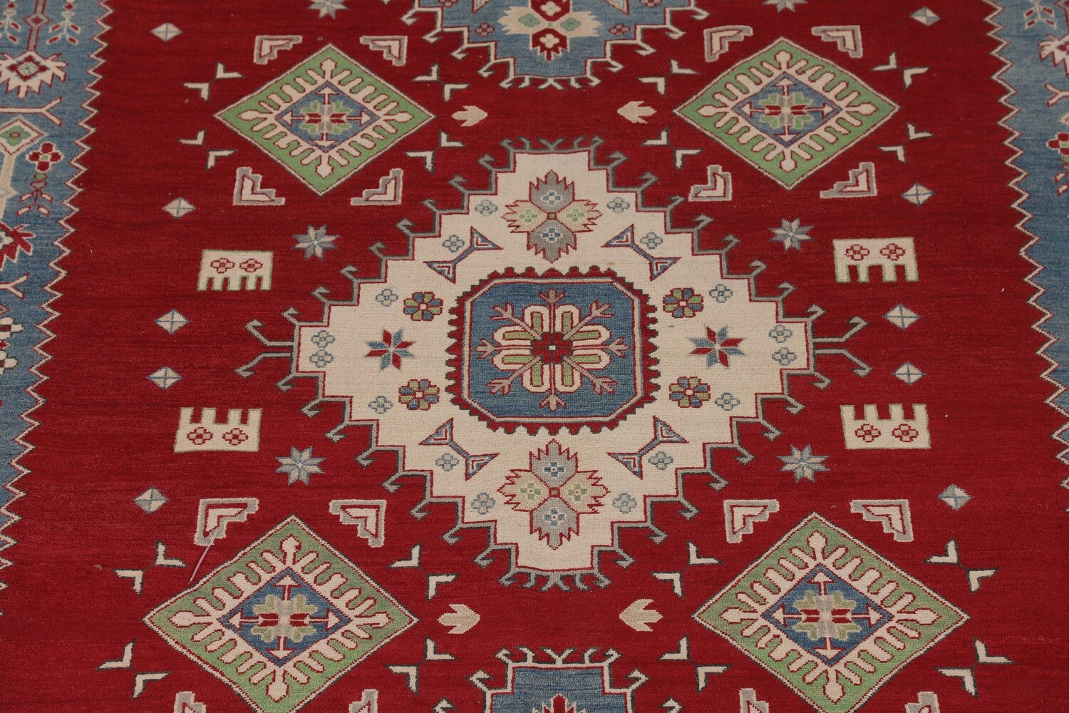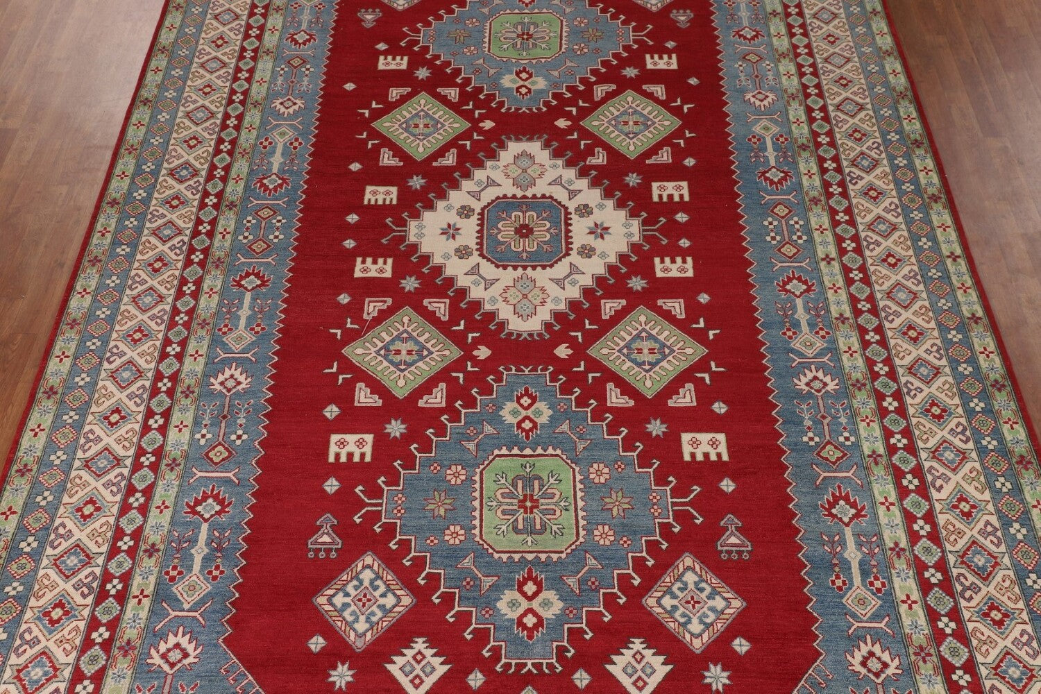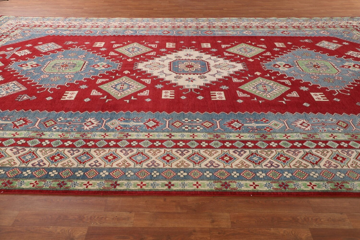A Beautiful Genuine Pakistan Kazak rug is Hand Knotted by skillful weavers in Pakistan with 100% Wool Material. This rug is in New, First Quality condition. dimensions are 15' 11'' X 9' 9'' in foot and 485 X 297 in centimeter. the primary color is Red.