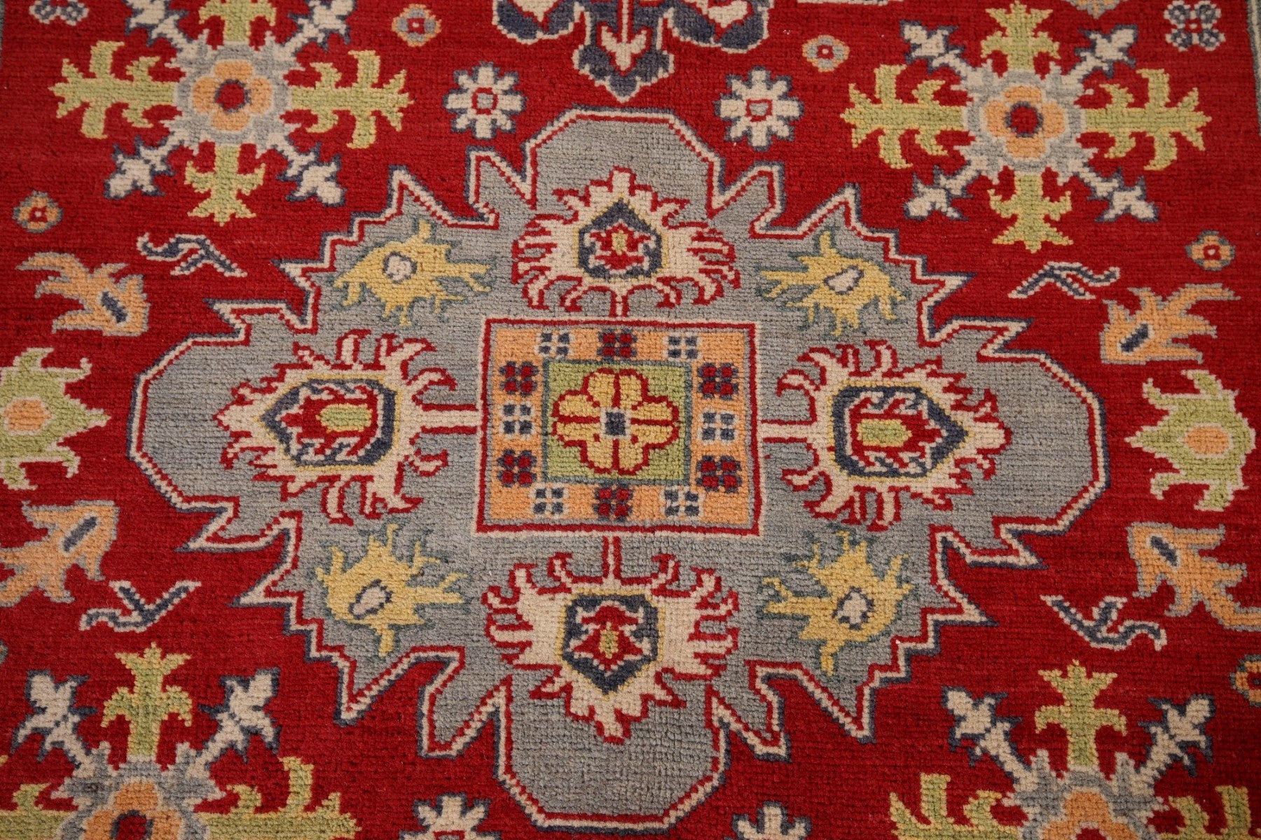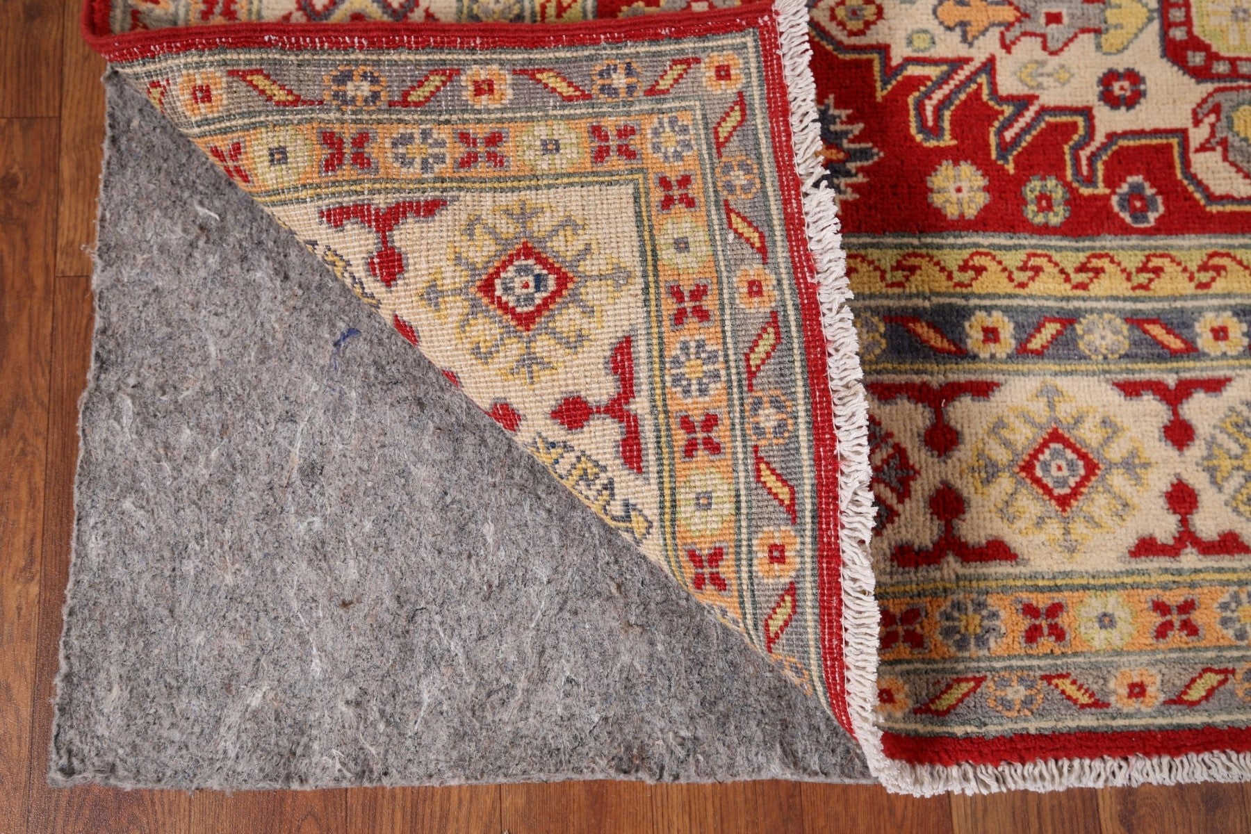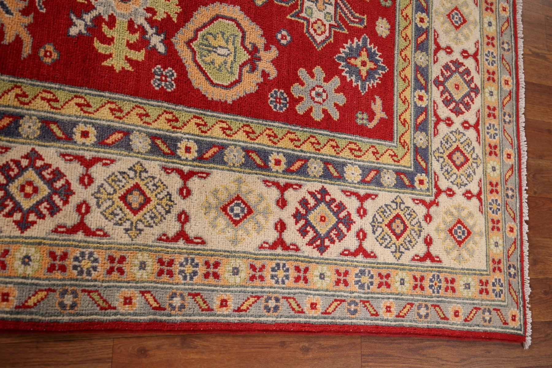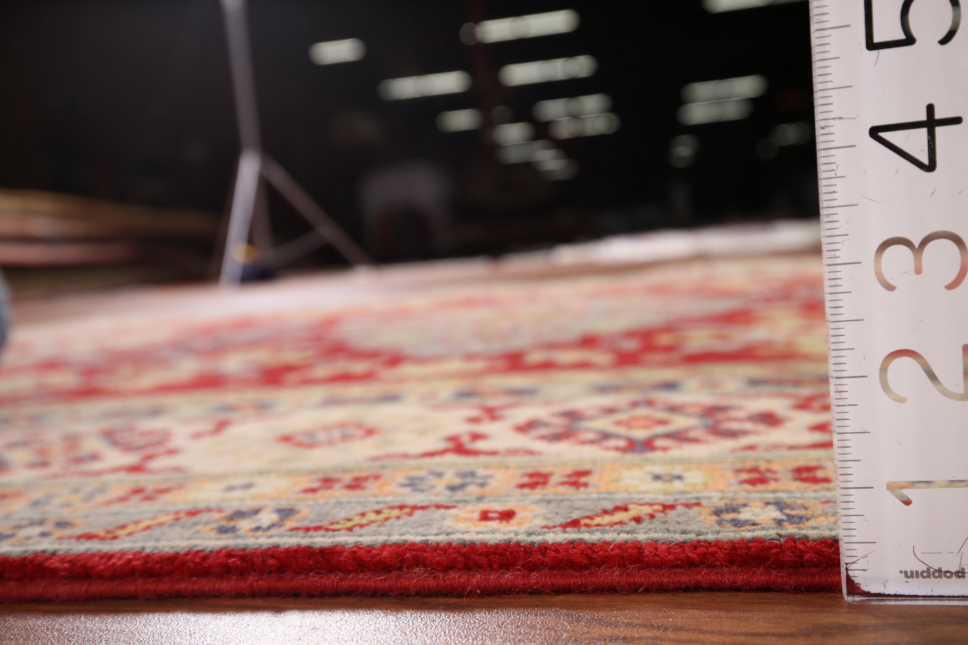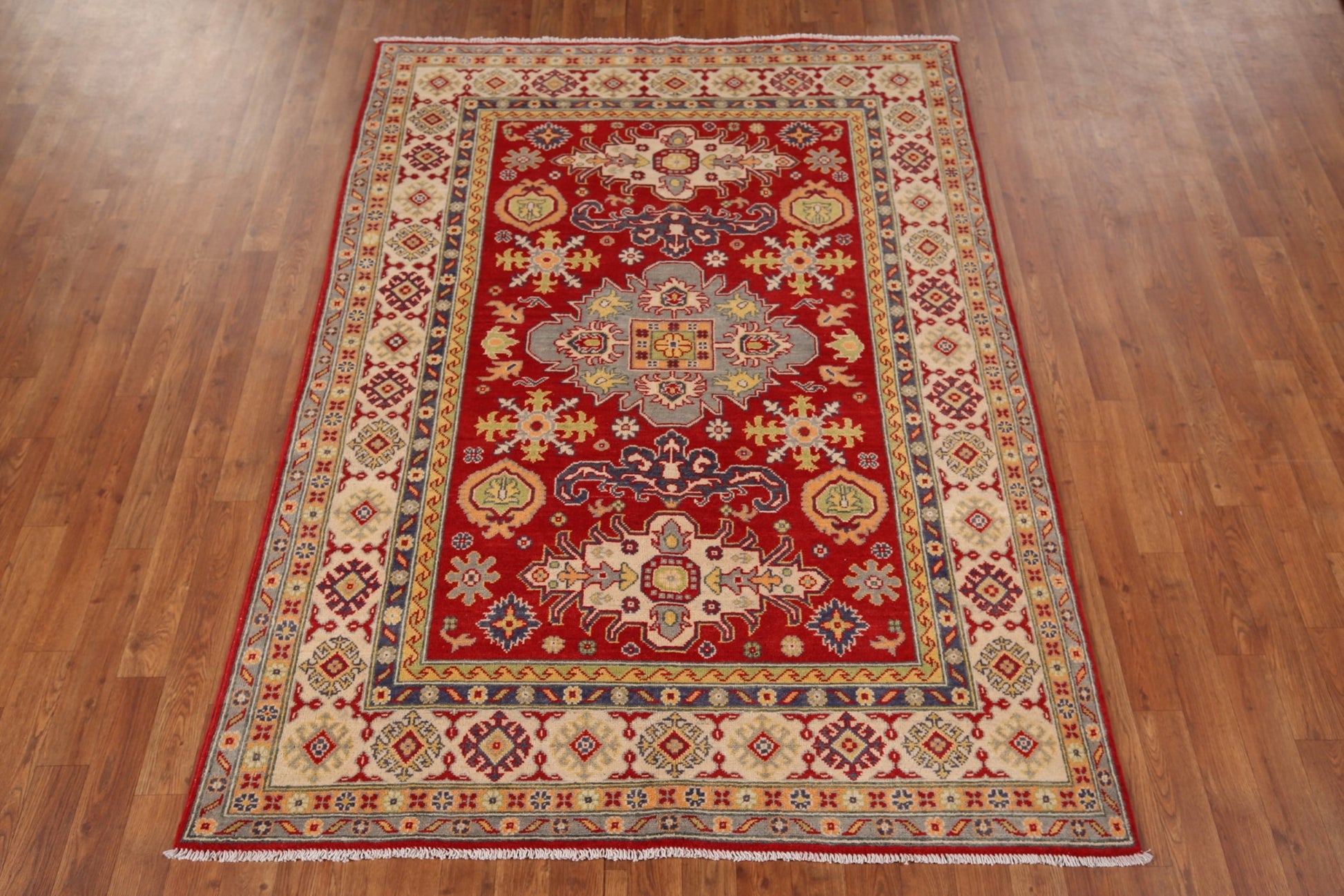 A Beautiful Genuine Pakistan Kazak rug is Hand Knotted by skillful weavers in Pakistan with 100% Wool Material. This rug is in New, First Quality condition. dimensions are 6' 8'' X 4' 10'' in foot and  203 X 147 in centimeter. the primary color is Red.