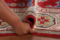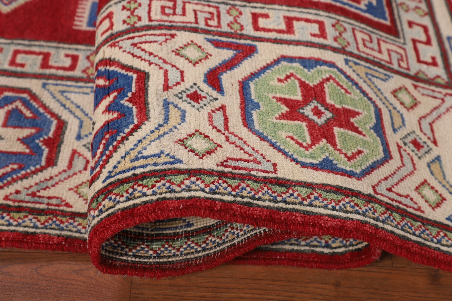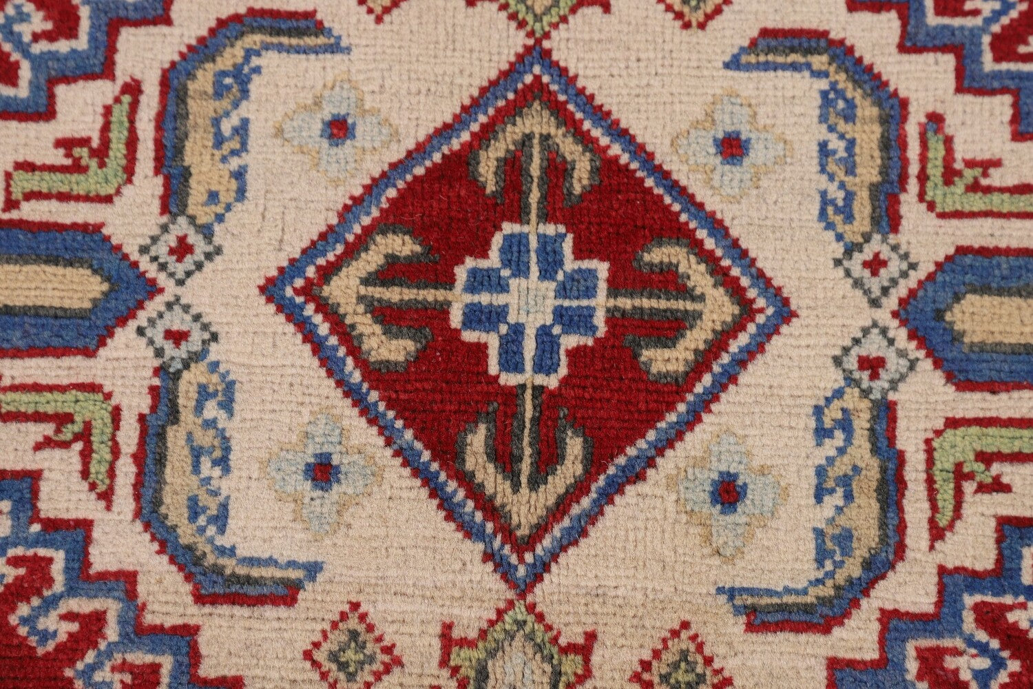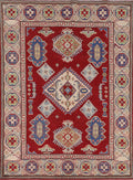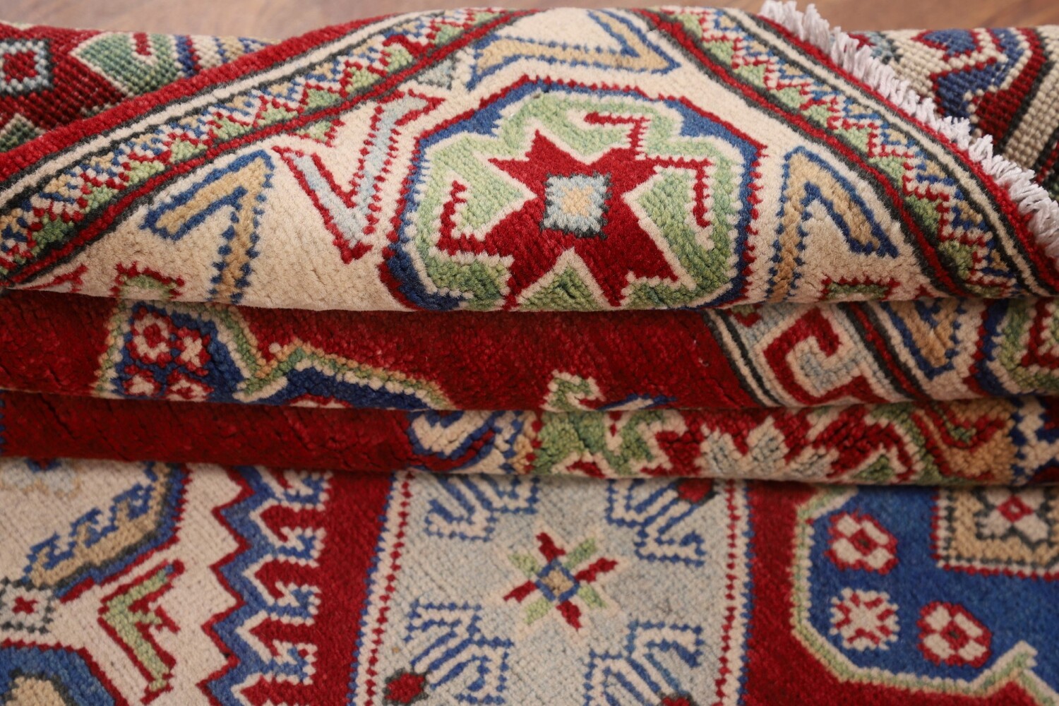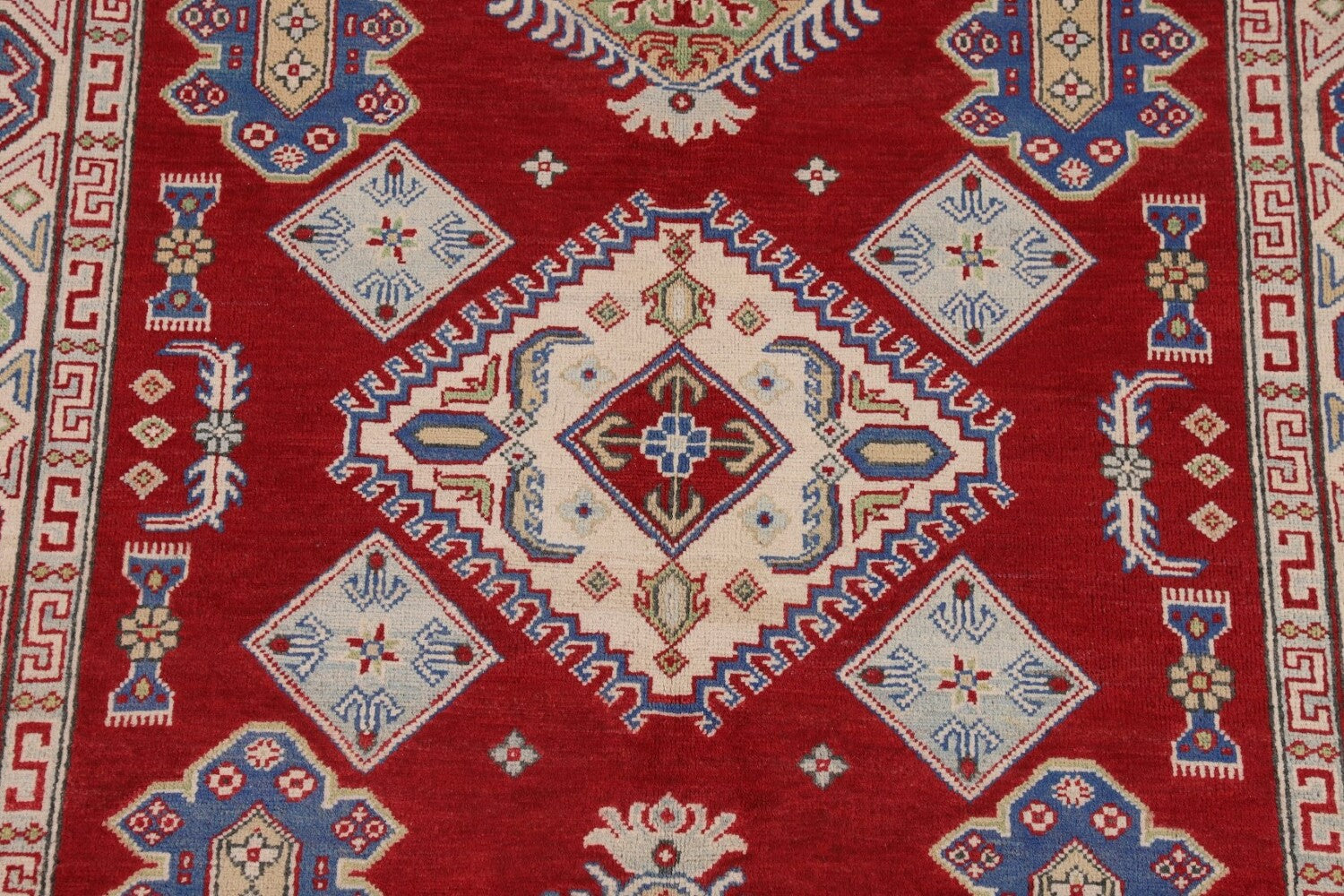 A Beautiful Genuine Pakistan Kazak rug is Hand Knotted by skillful weavers in Pakistan with 100% Wool Material. This rug is in New, First Quality condition. dimensions are 6' 9'' X 5' 2'' in foot and 206 X 157 in centimeter. the primary color is Red.
