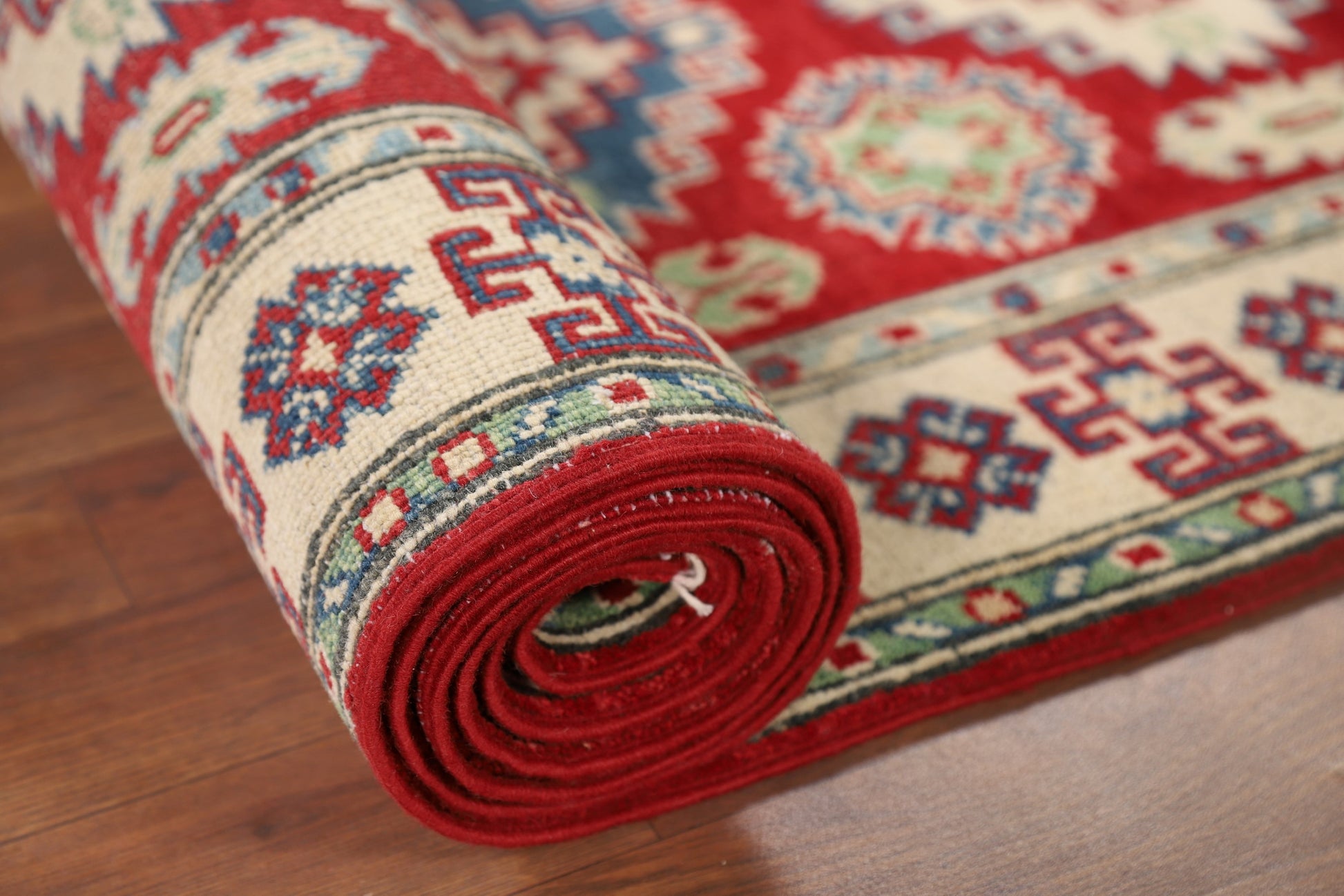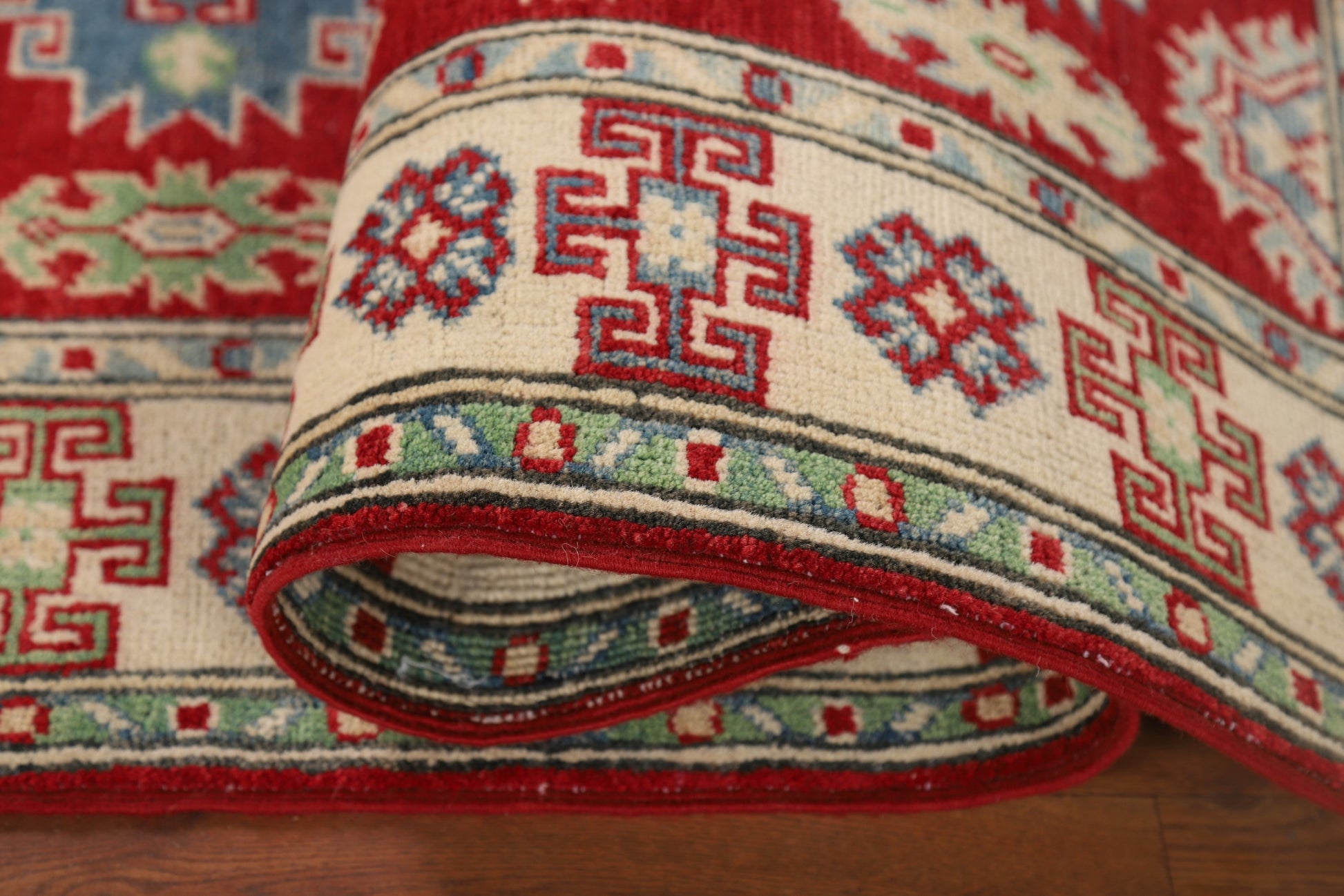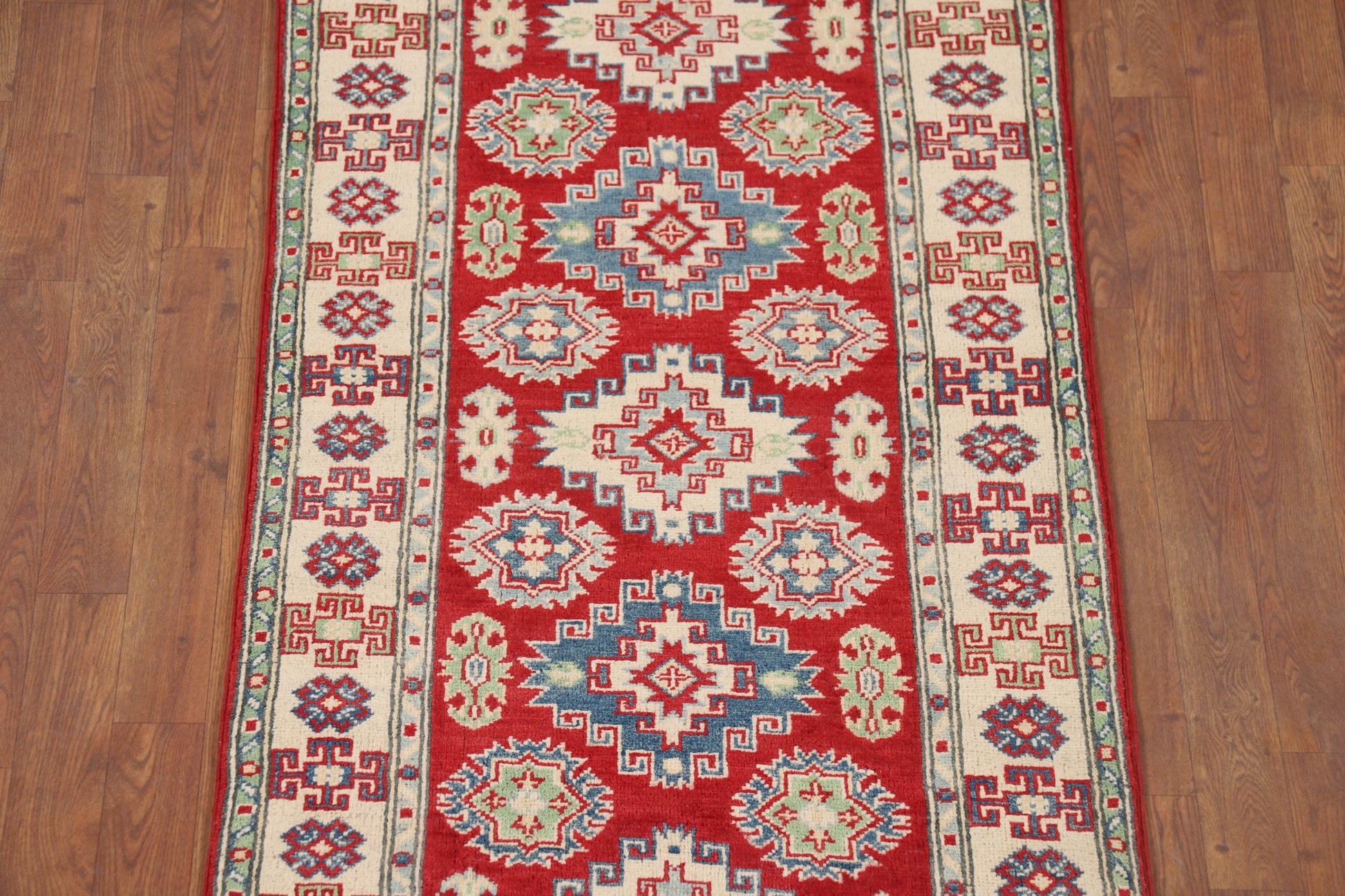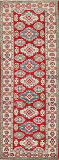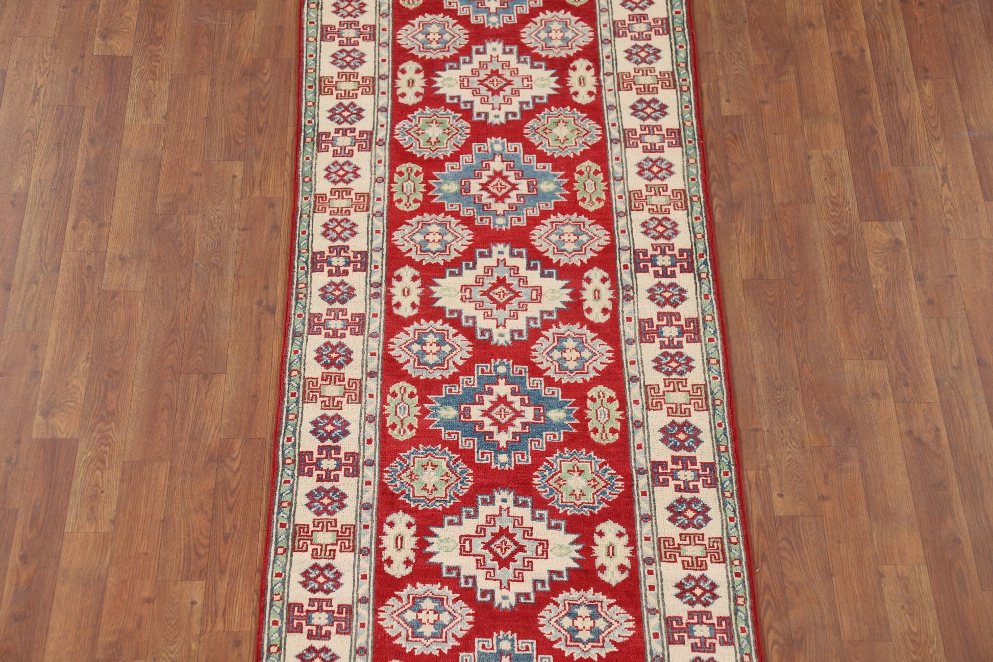 Red Geometric Kazak Oriental Runner Rug 3x10
