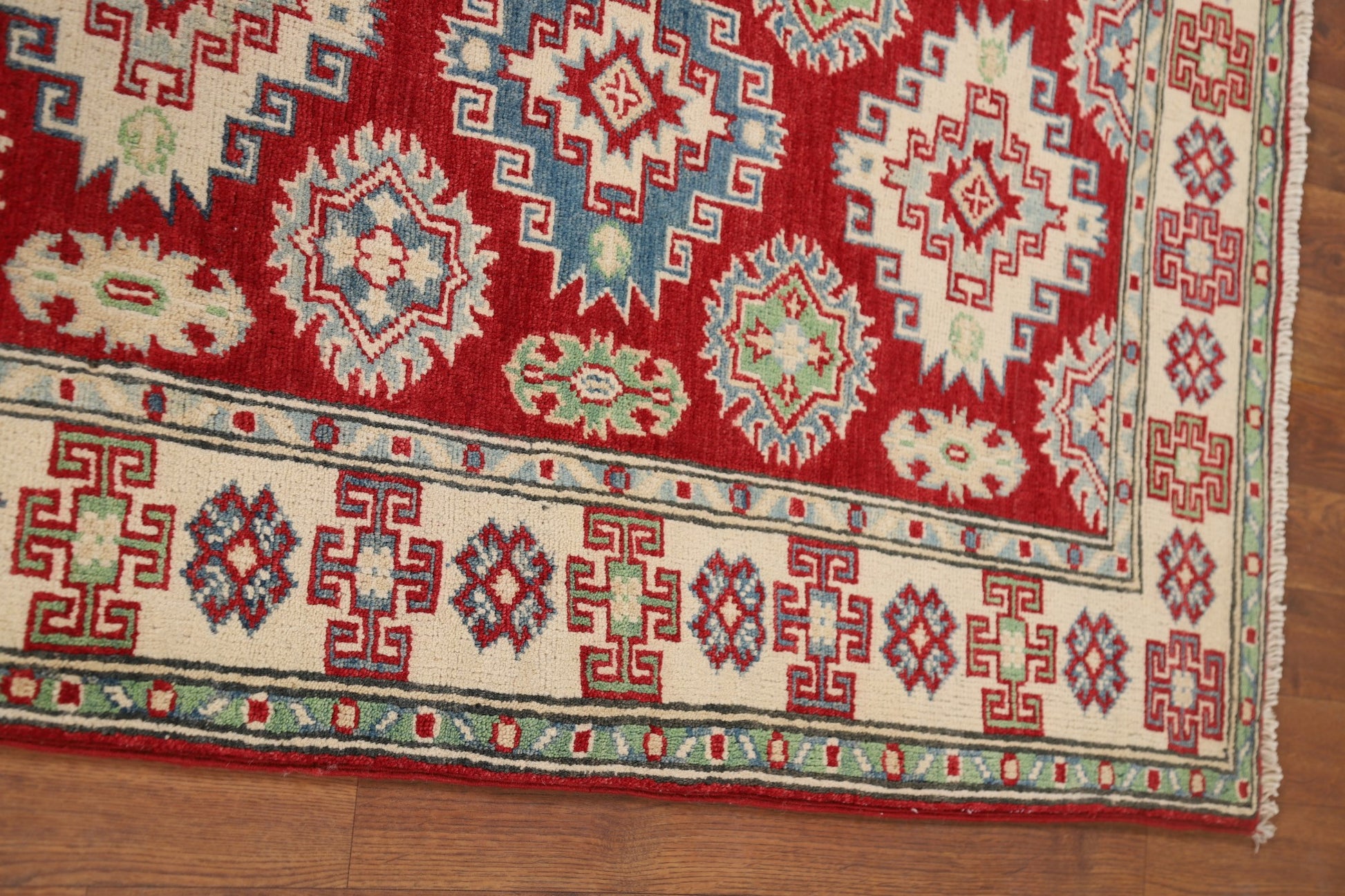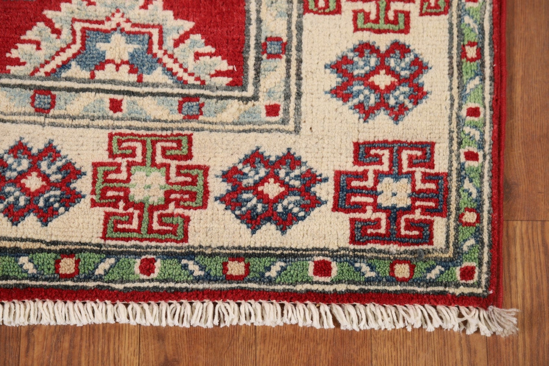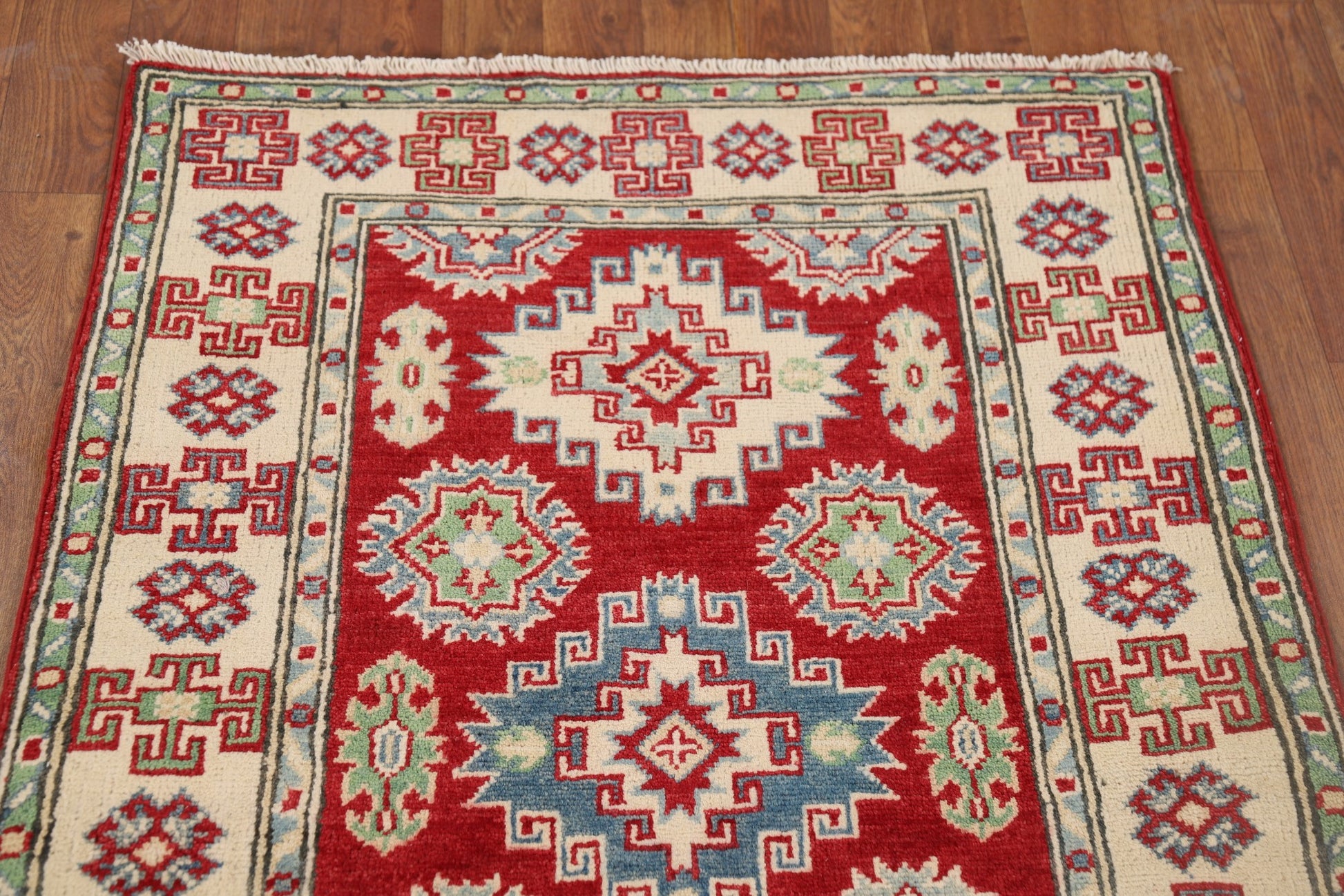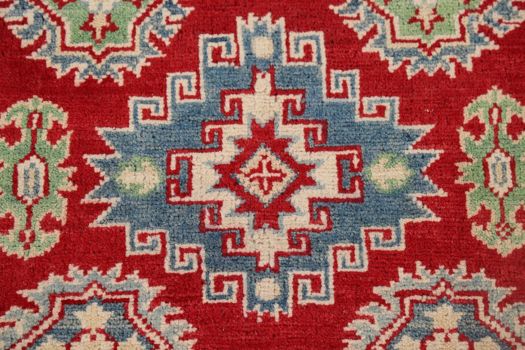 Red Geometric Kazak Oriental Runner Rug 3x10