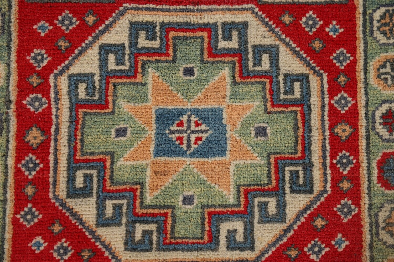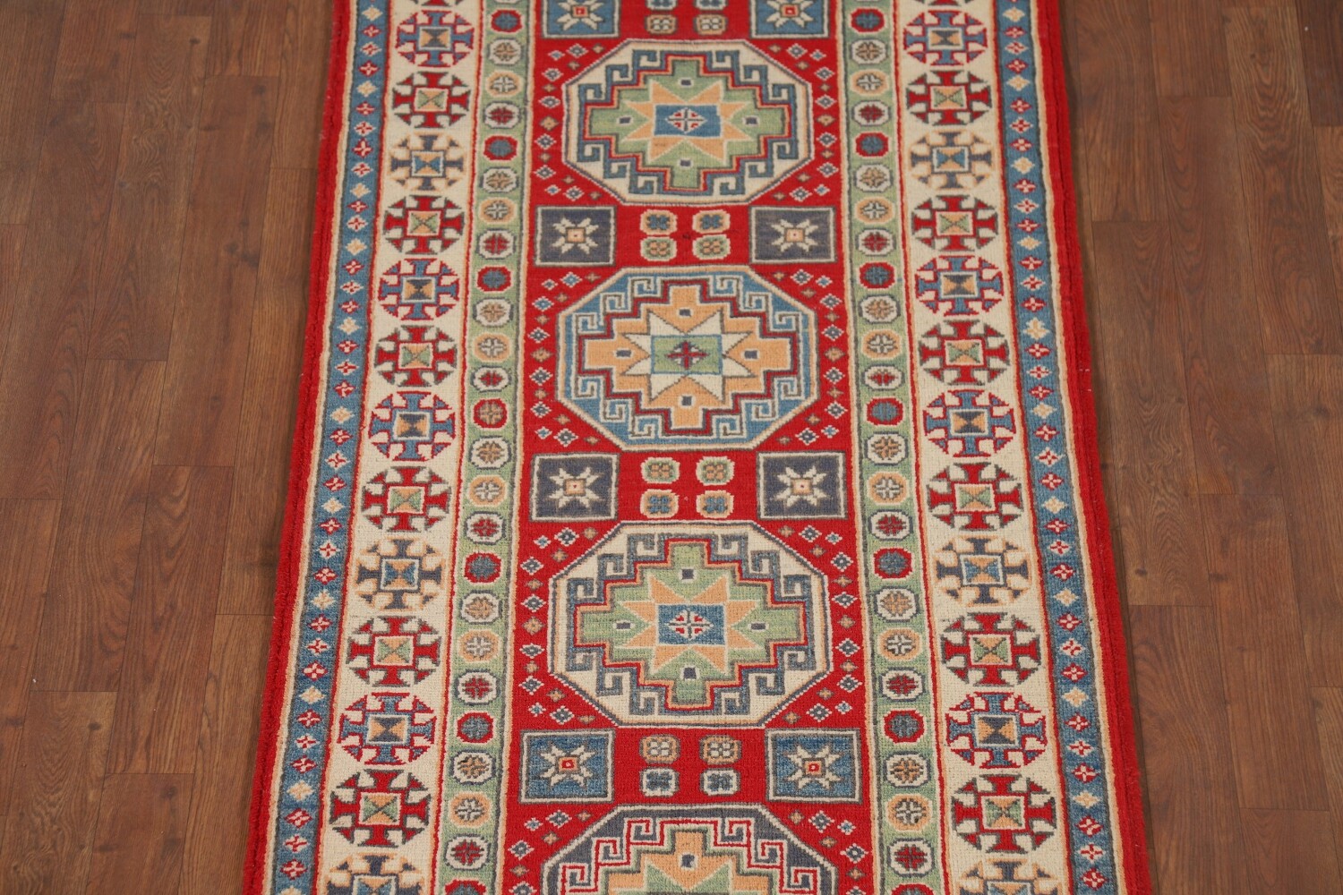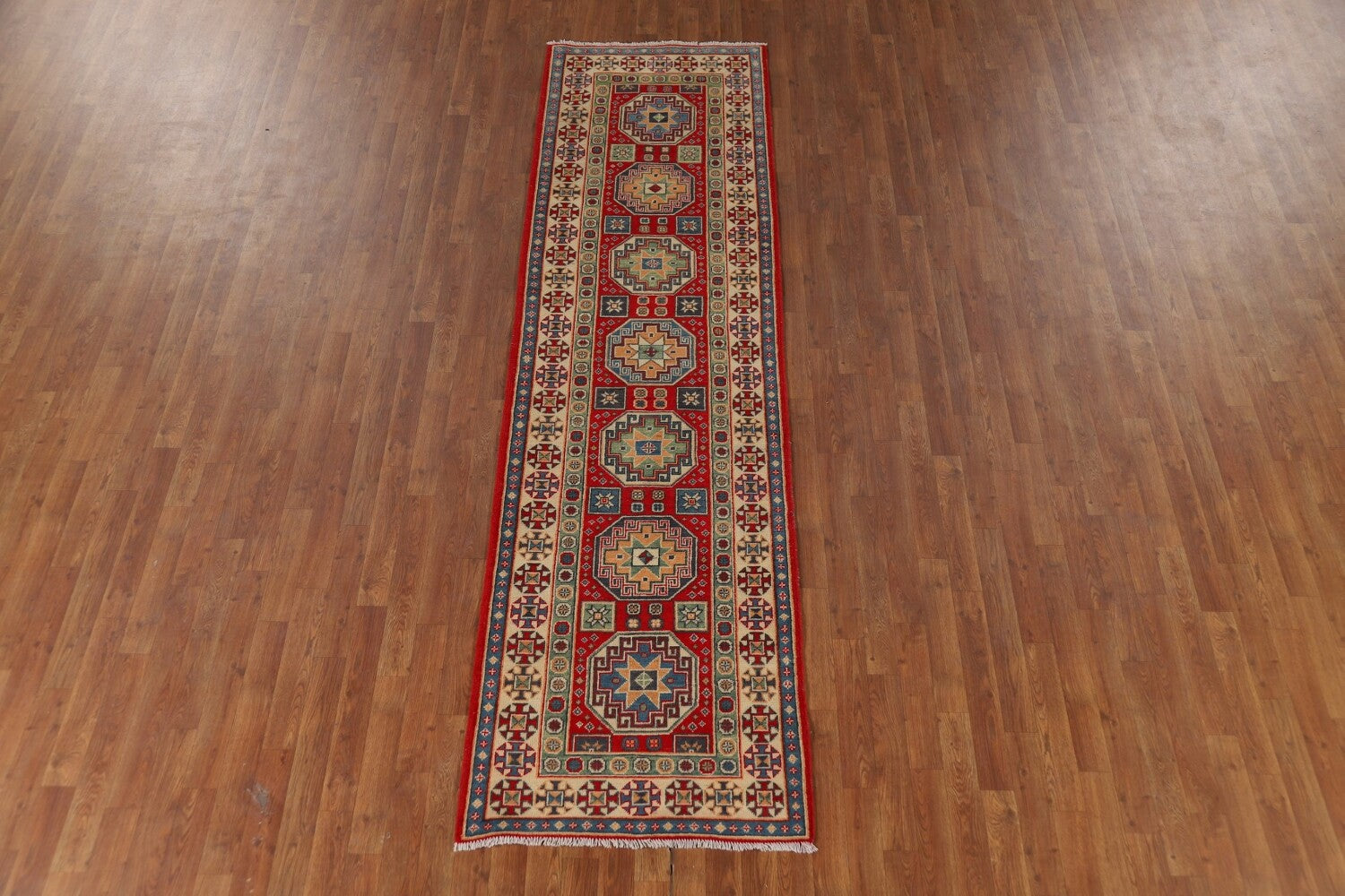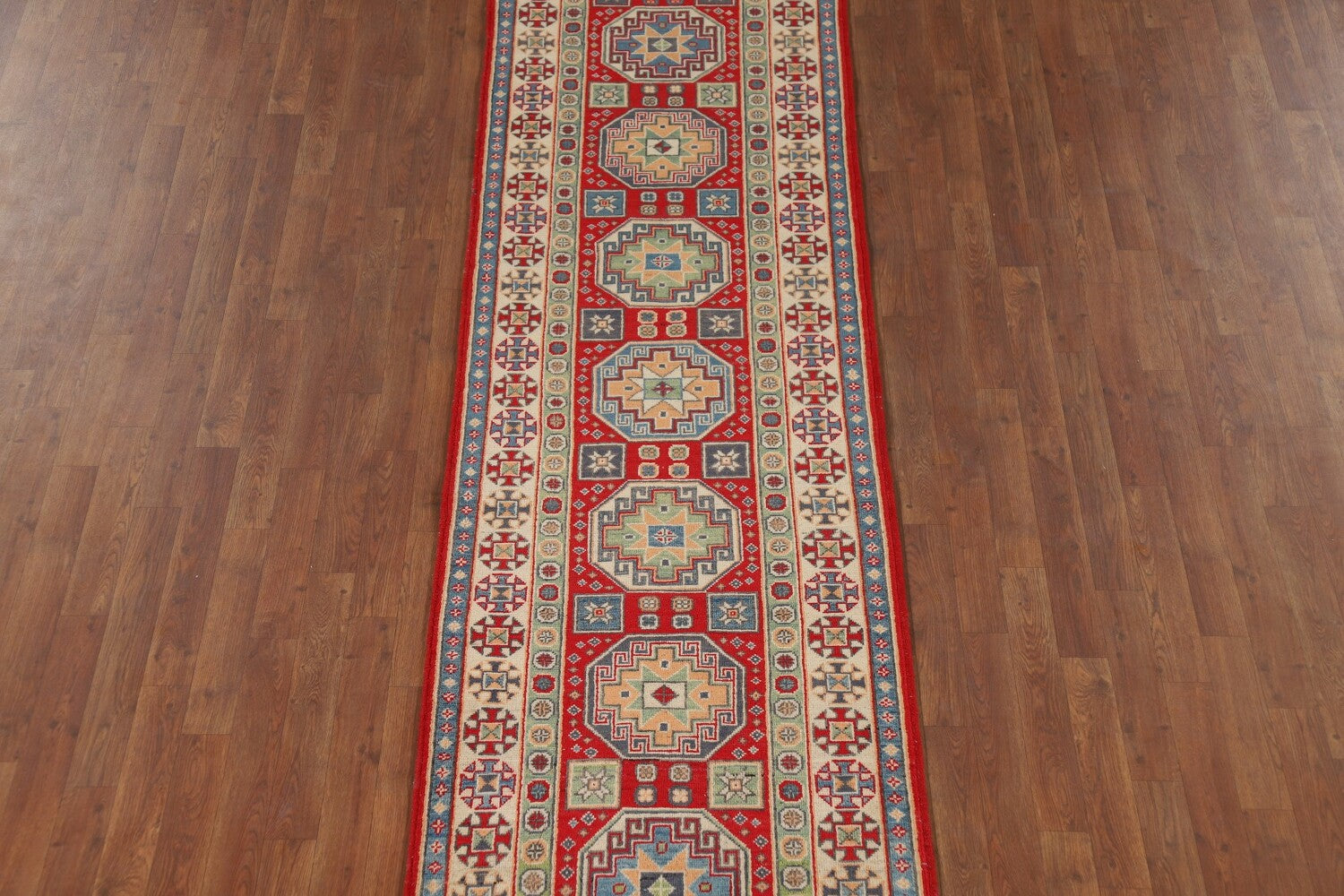 Red Geometric Kazak Oriental Runner Rug 3x10