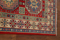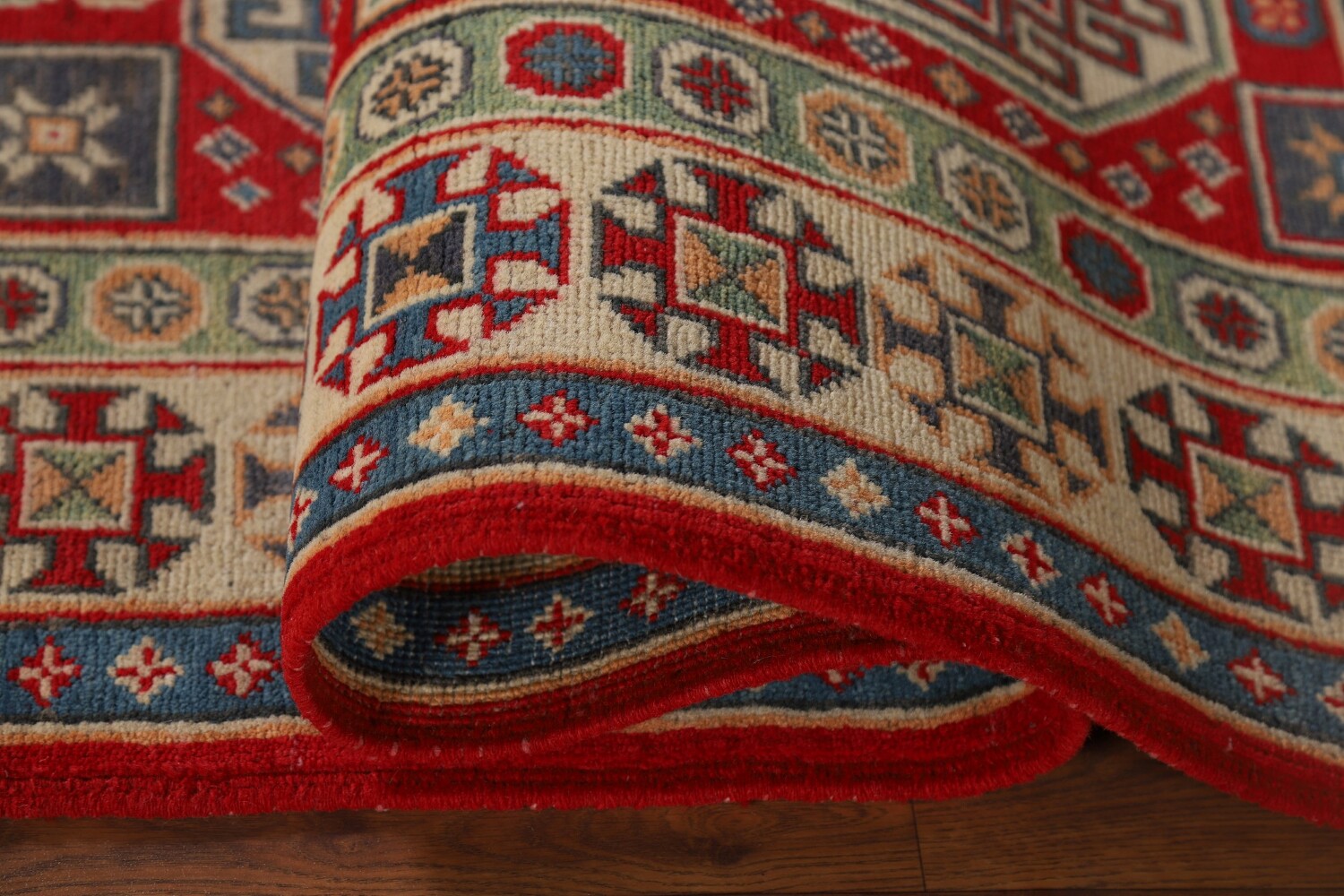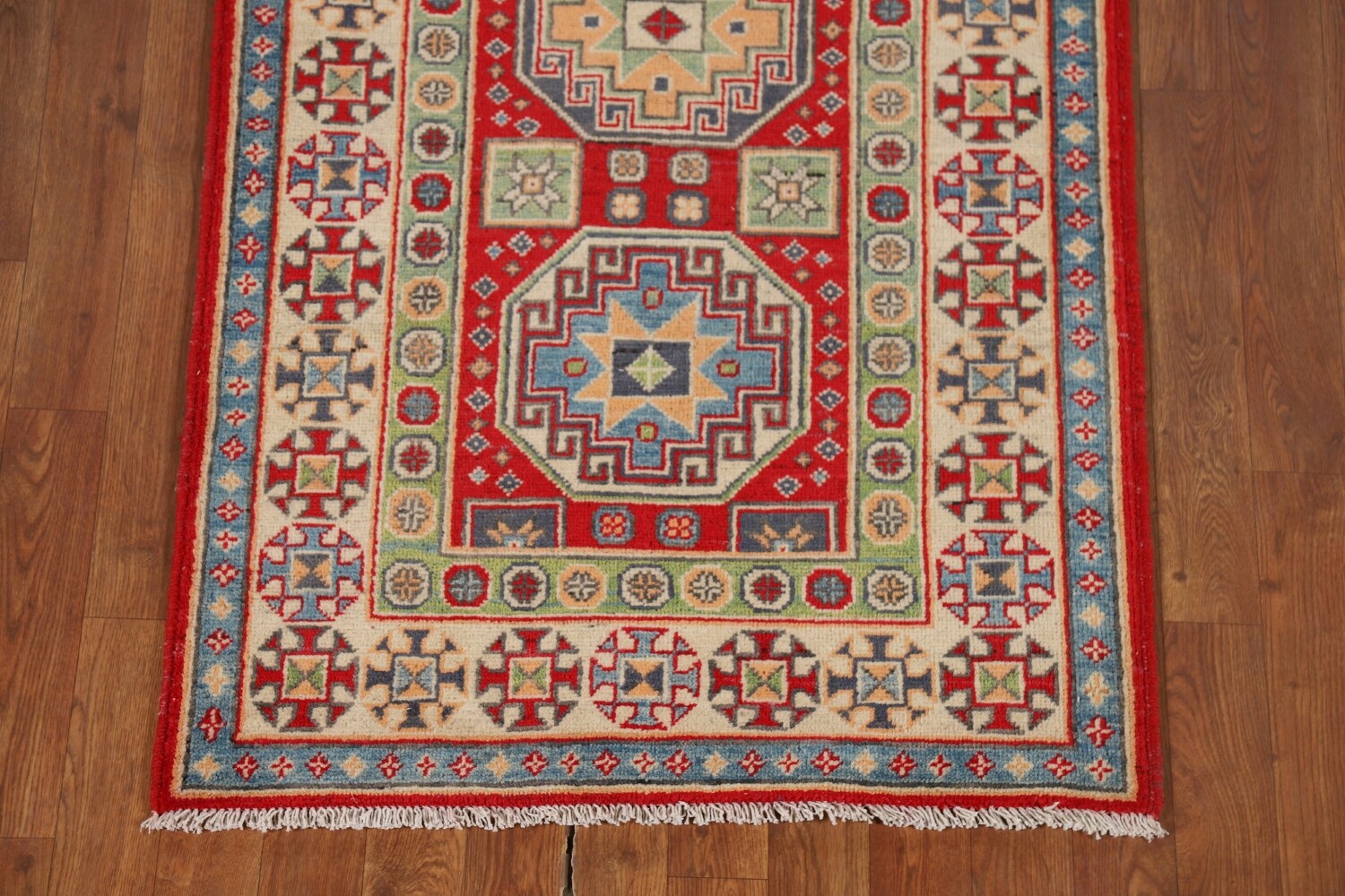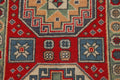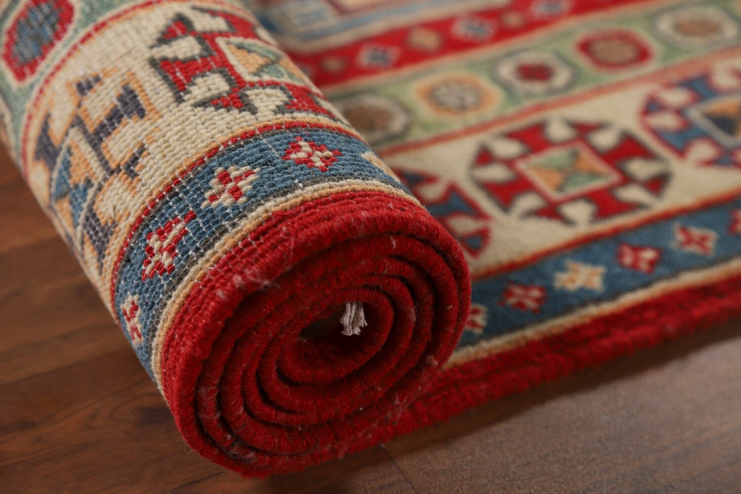 Red Geometric Kazak Oriental Runner Rug 3x10
