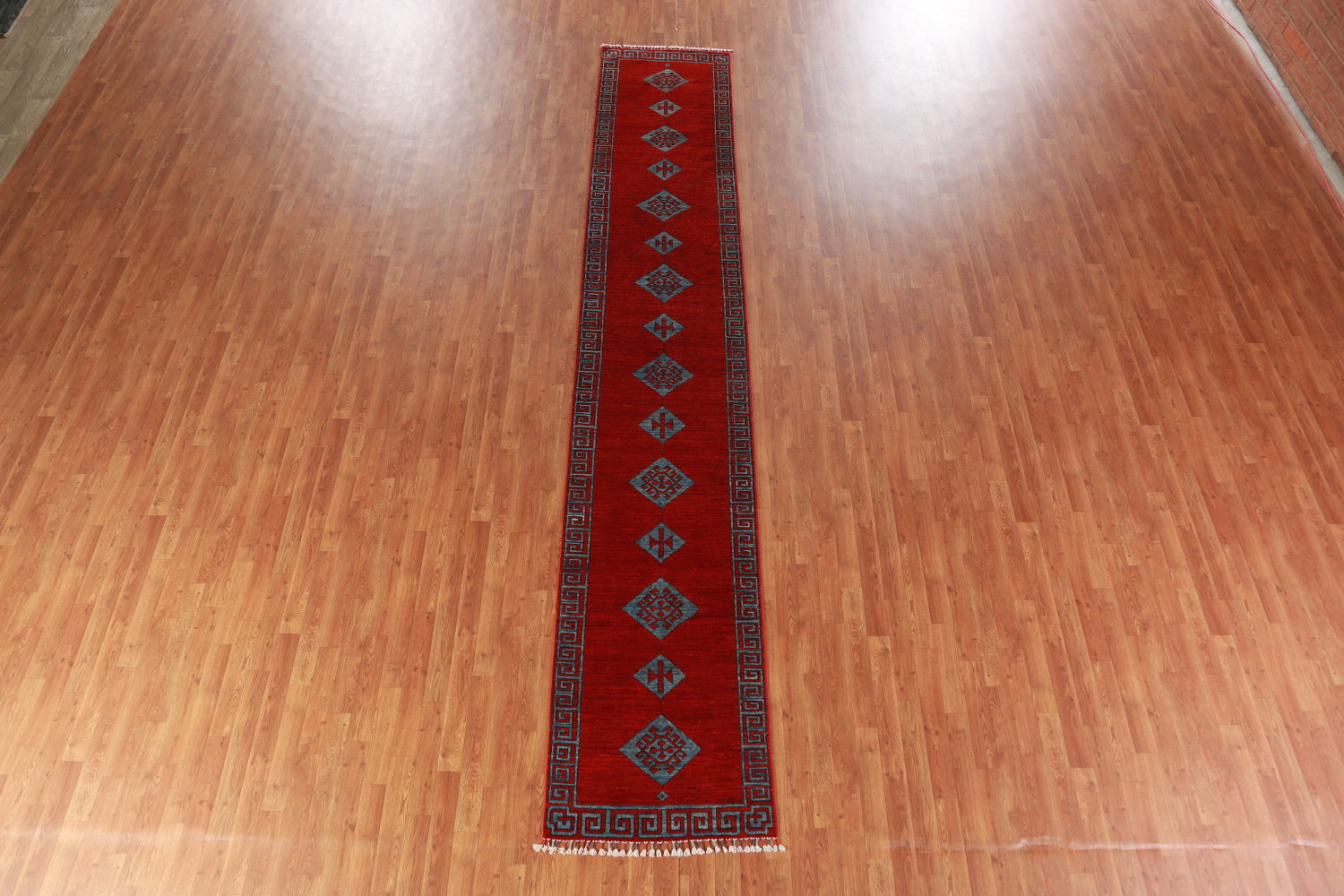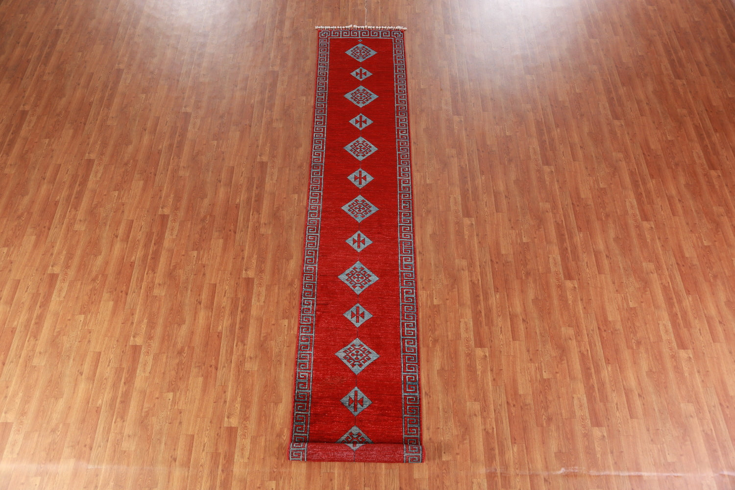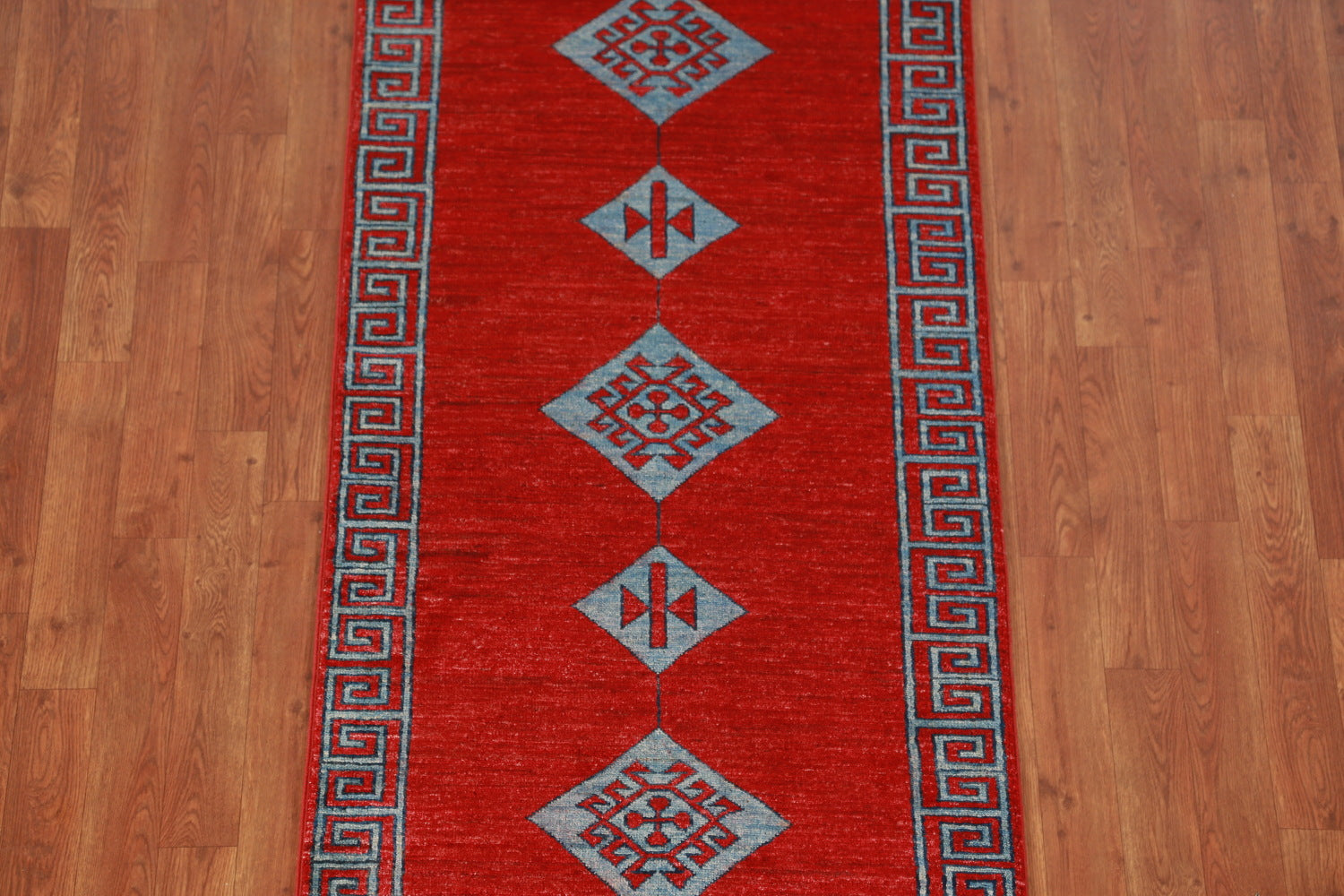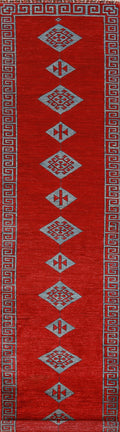 Red Geometric Kazak Oriental Runner Rug 3x15