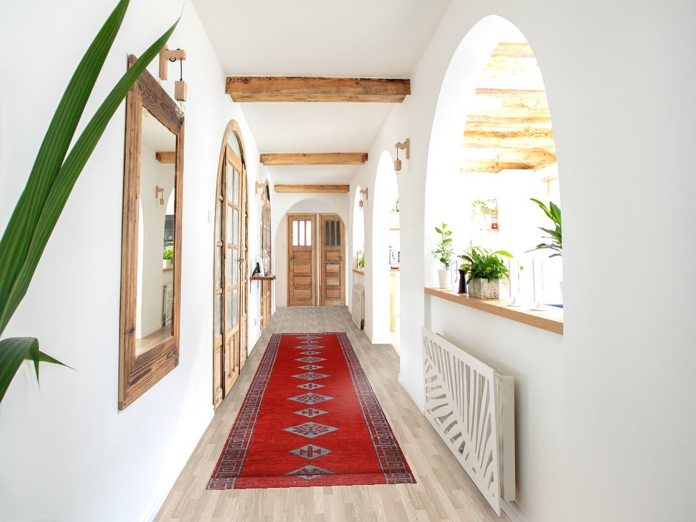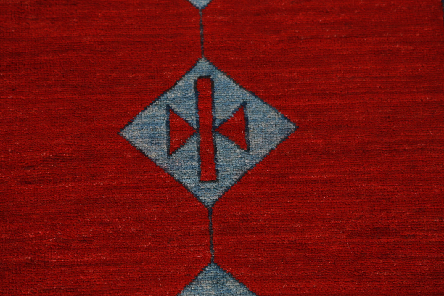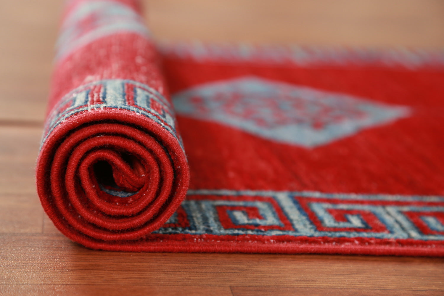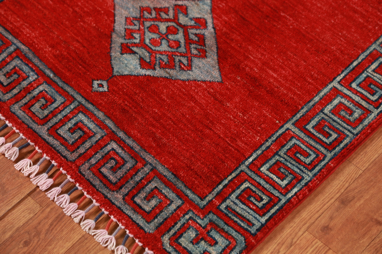 Red Geometric Kazak Oriental Runner Rug 3x15