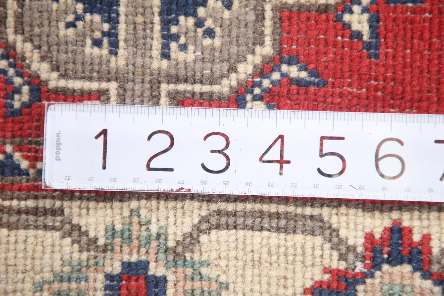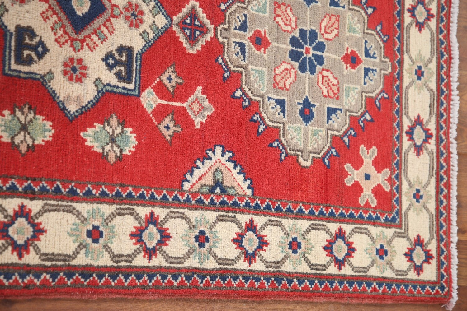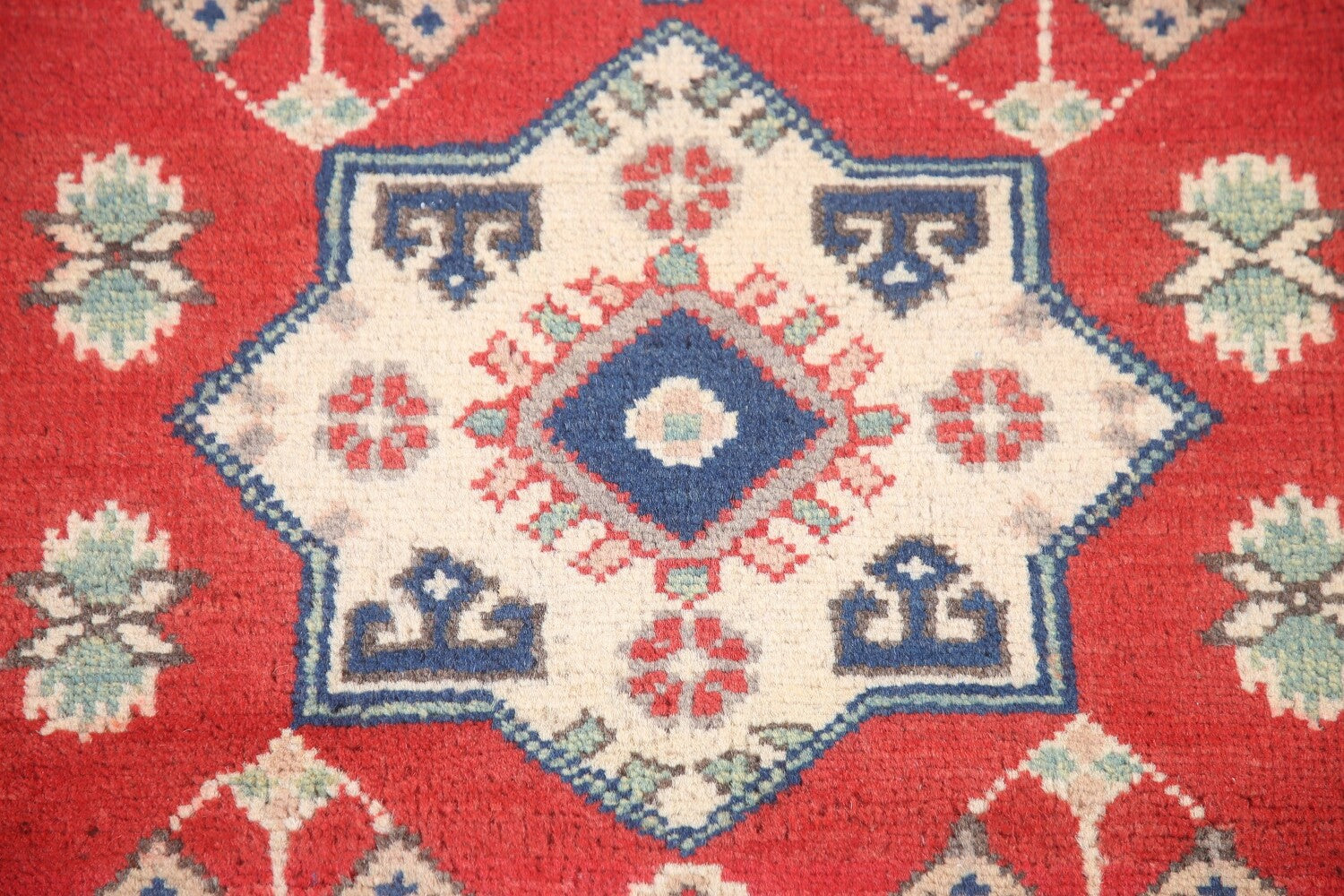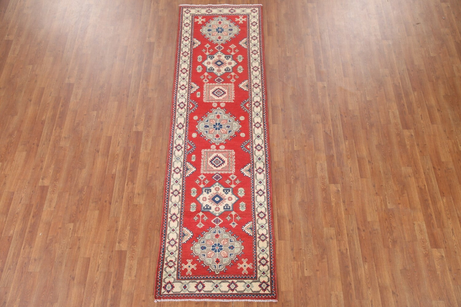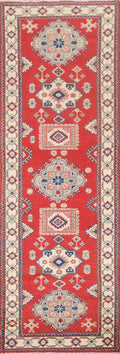 Red Geometric Kazak Oriental Runner Rug 3x9