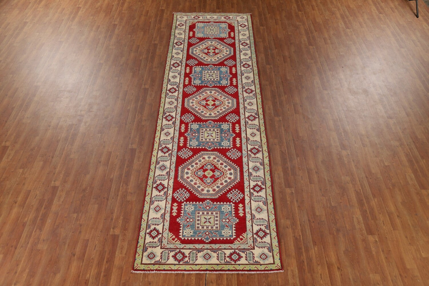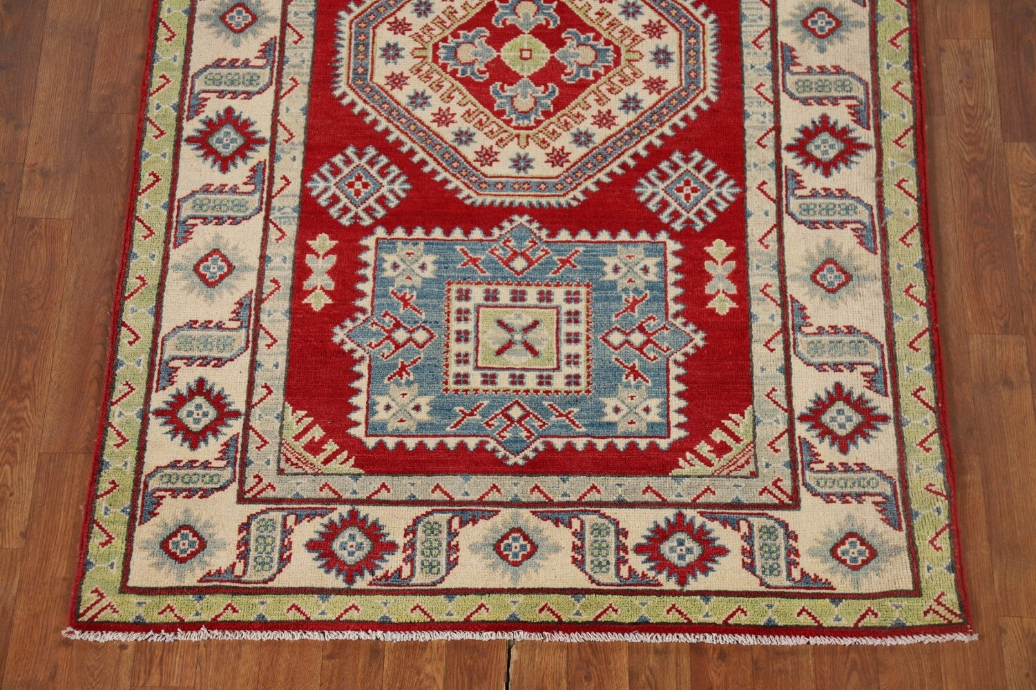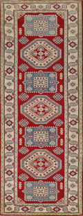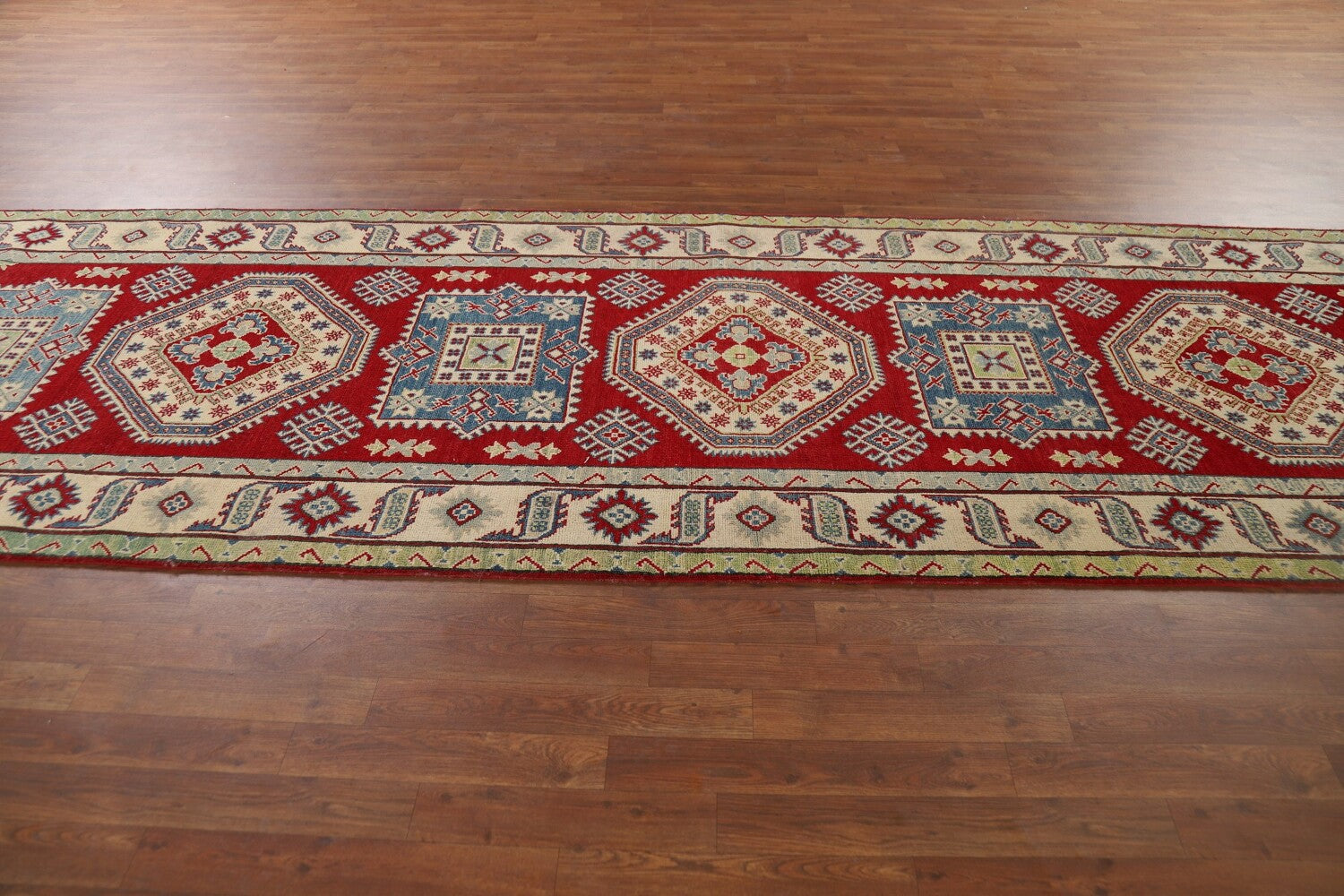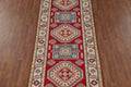 Red Geometric Kazak Oriental Runner Rug 4x14