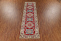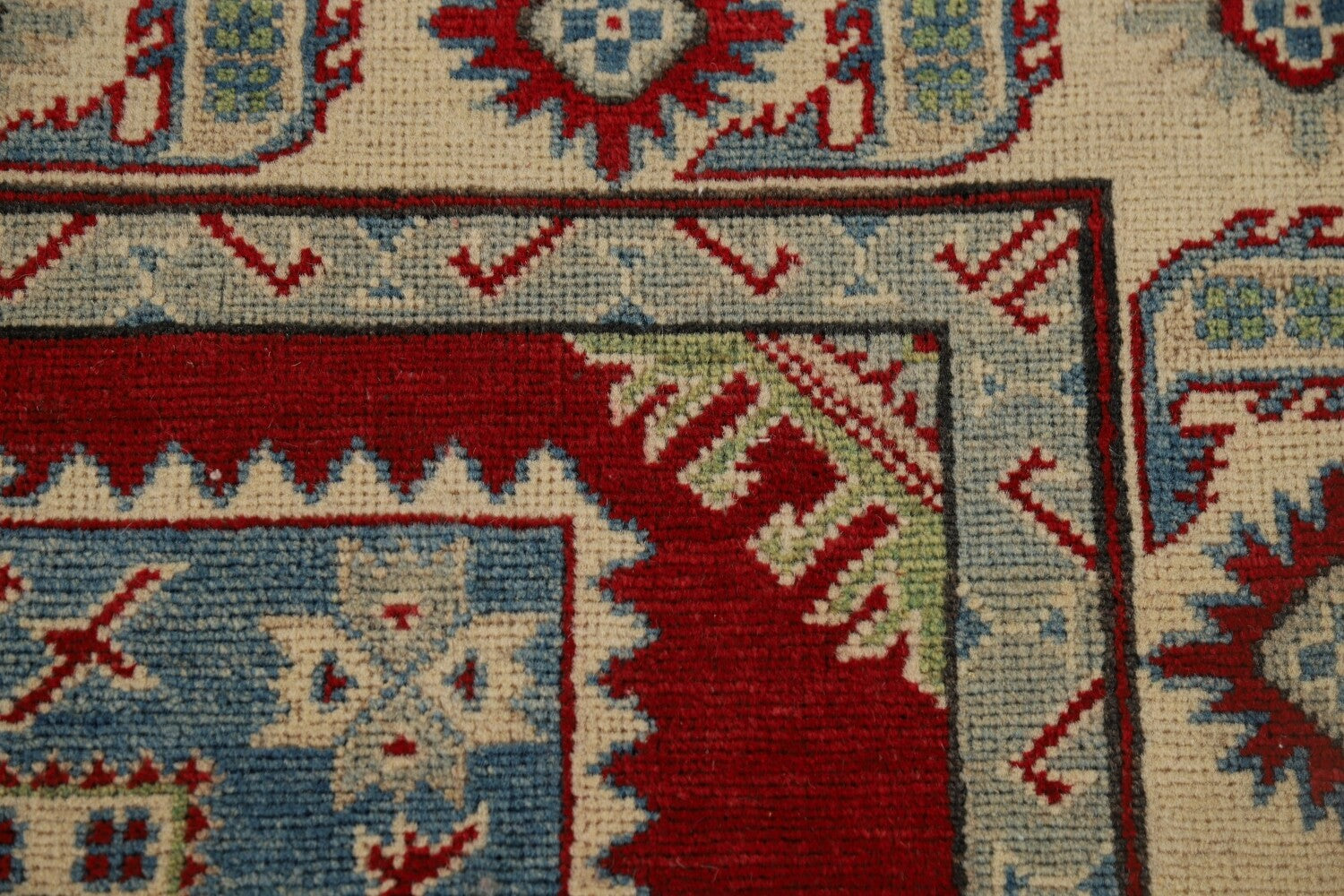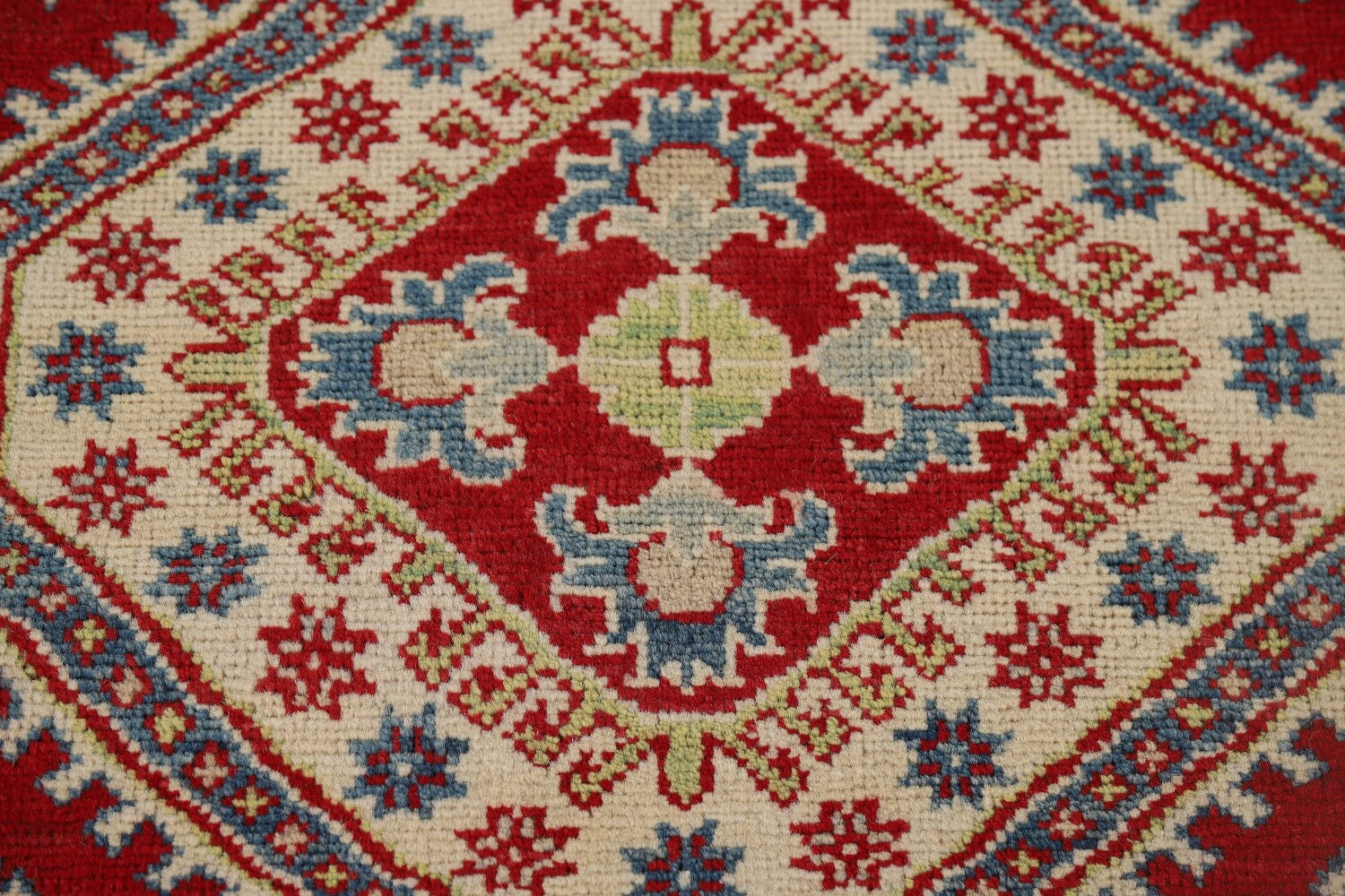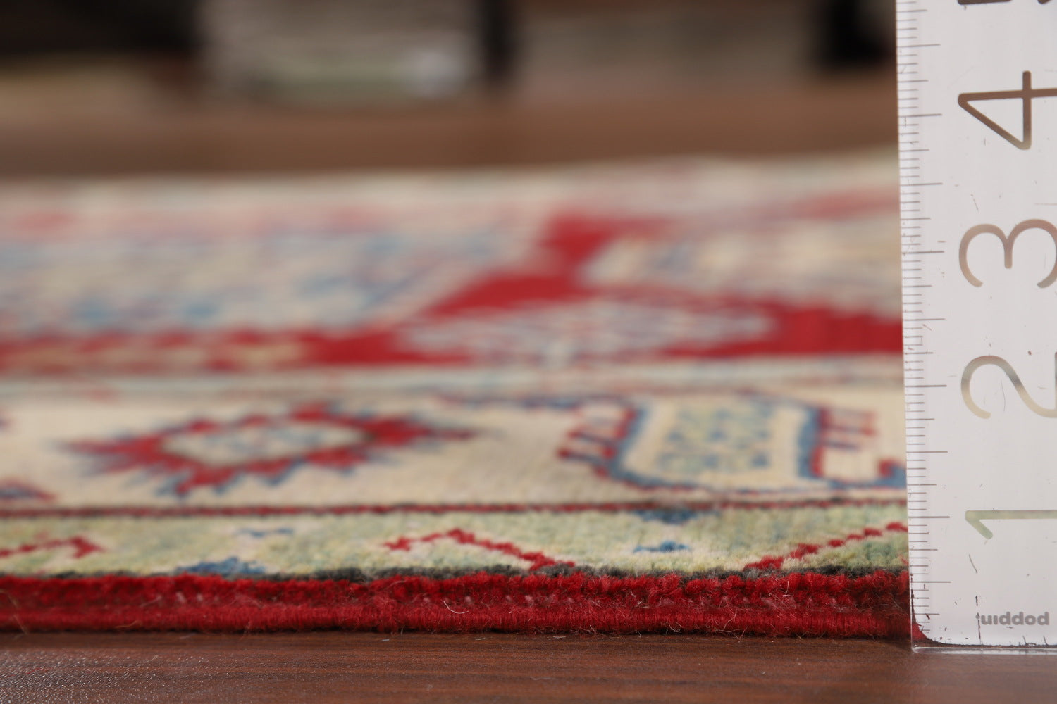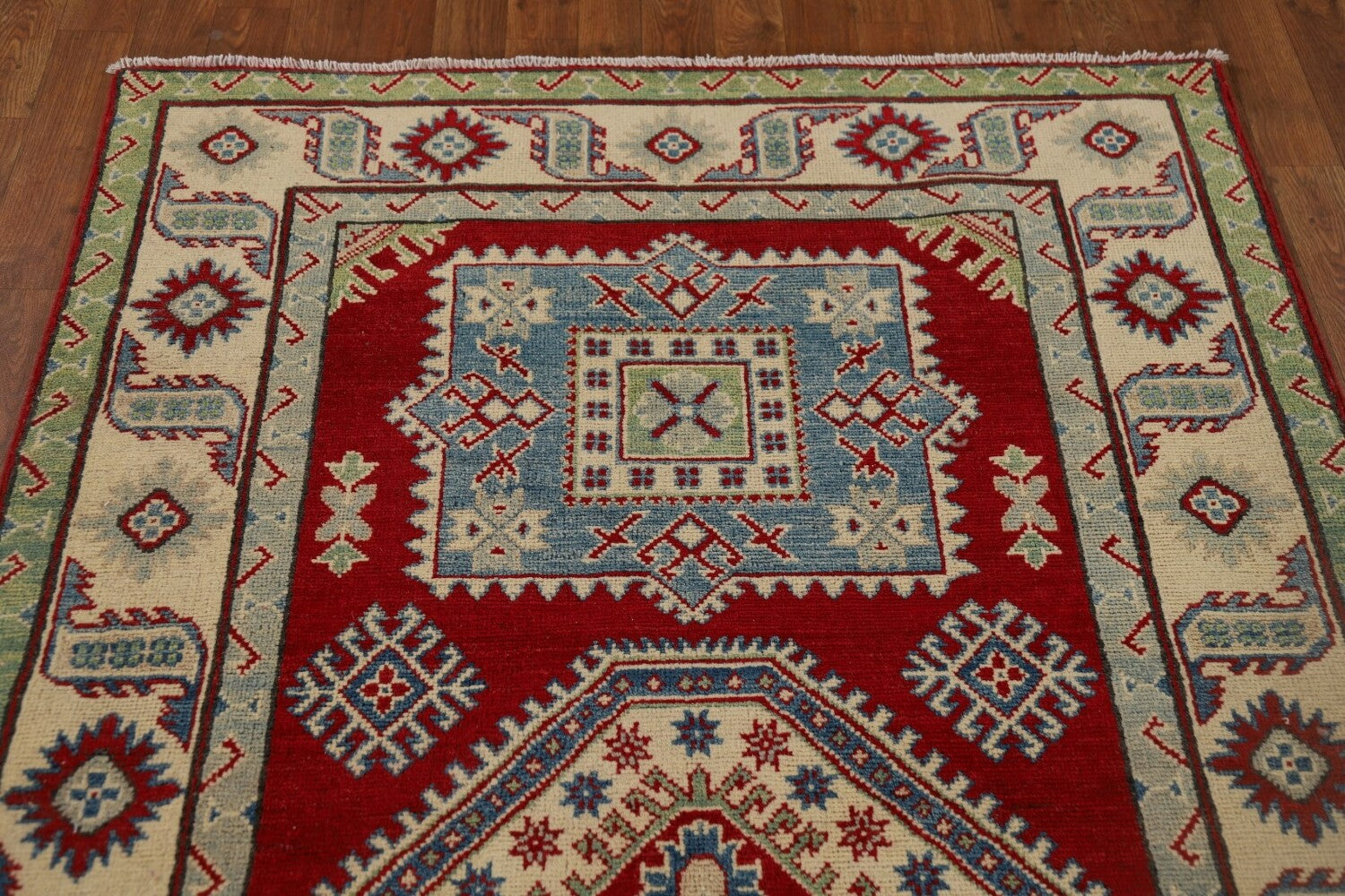 Red Geometric Kazak Oriental Runner Rug 4x14