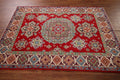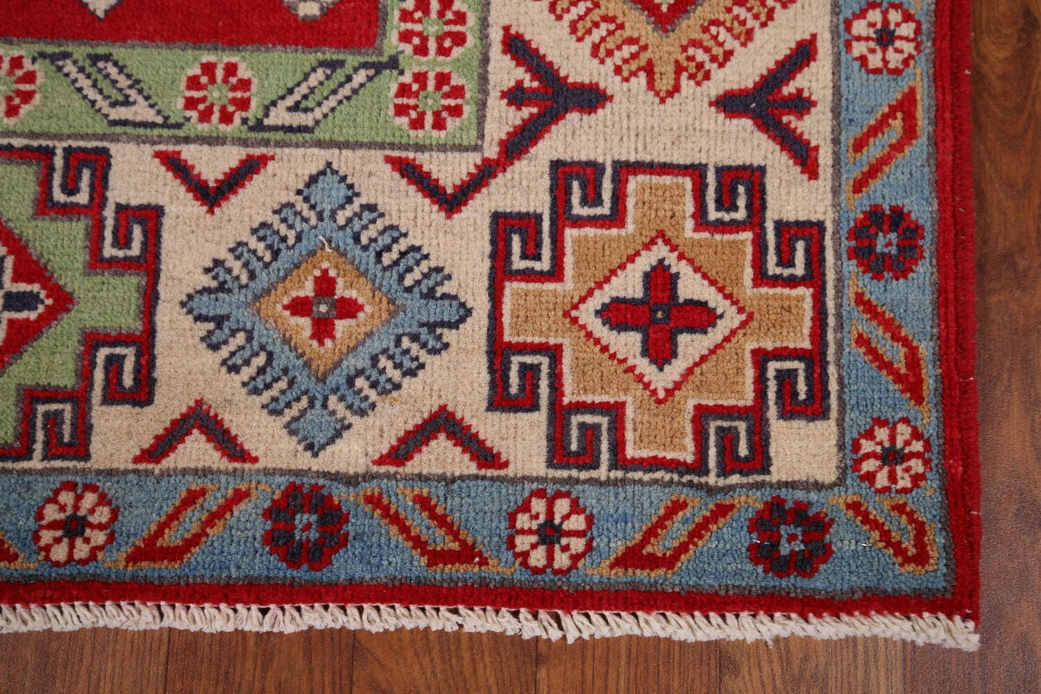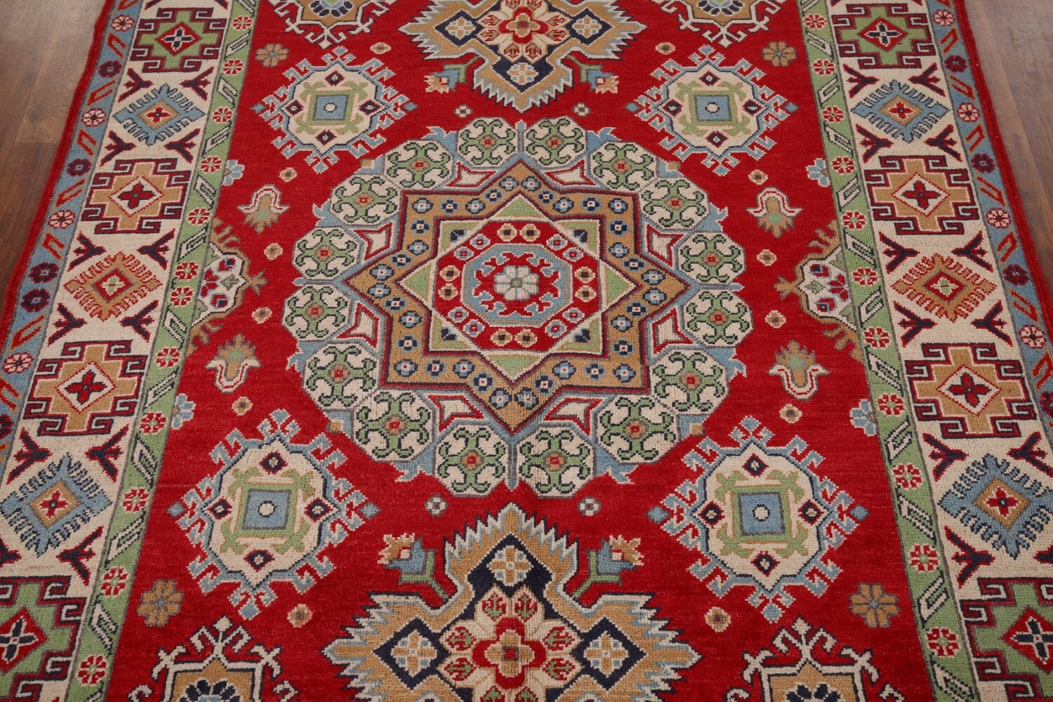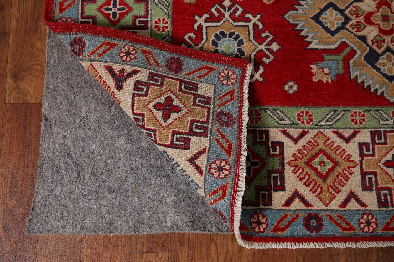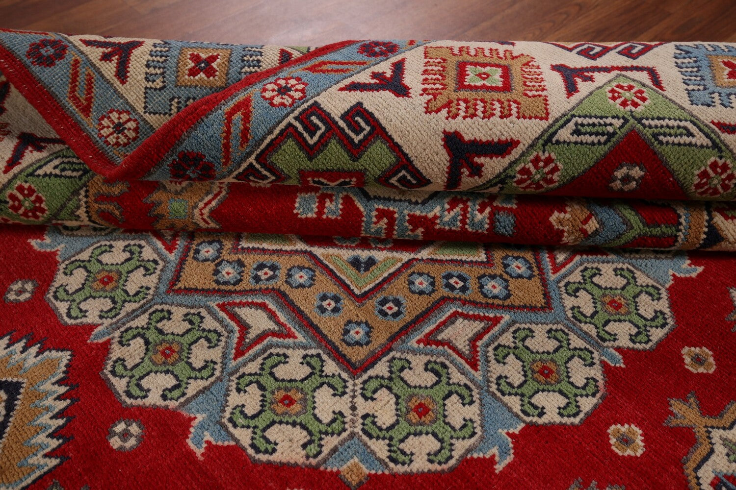 A Beautiful Genuine Pakistan Kazak rug is Hand Knotted by skillful weavers in Pakistan with 100% Wool Material. This rug is in New, First Quality condition. dimensions are 6' 9'' X 5' 0'' in foot and 206 X 152 in centimeter. the primary color is Red.