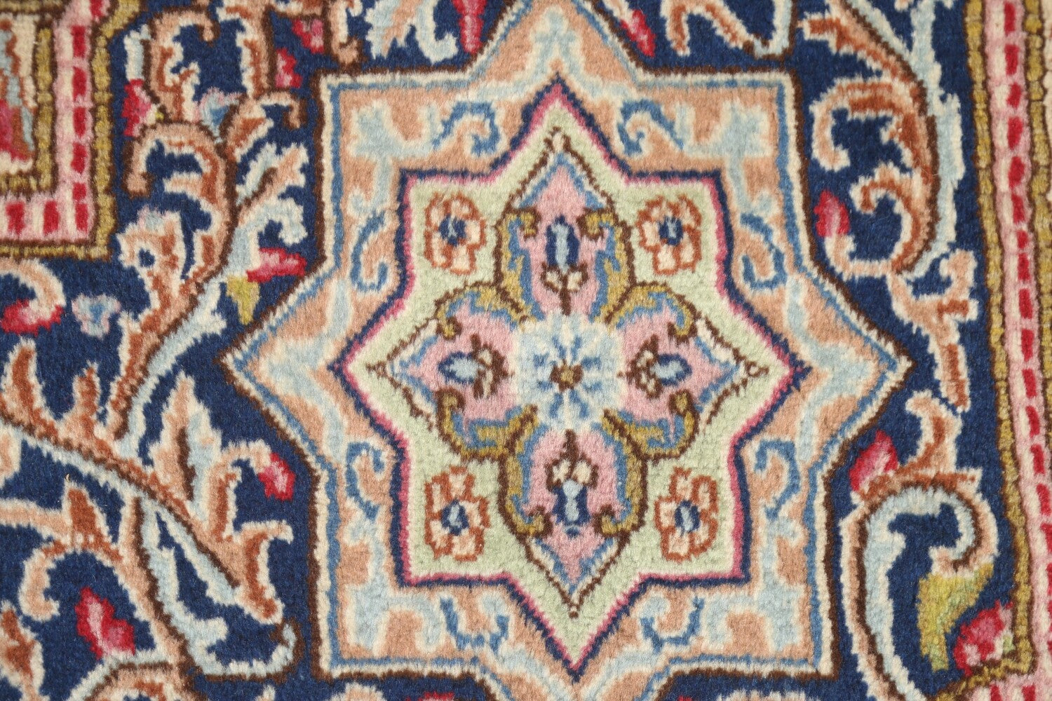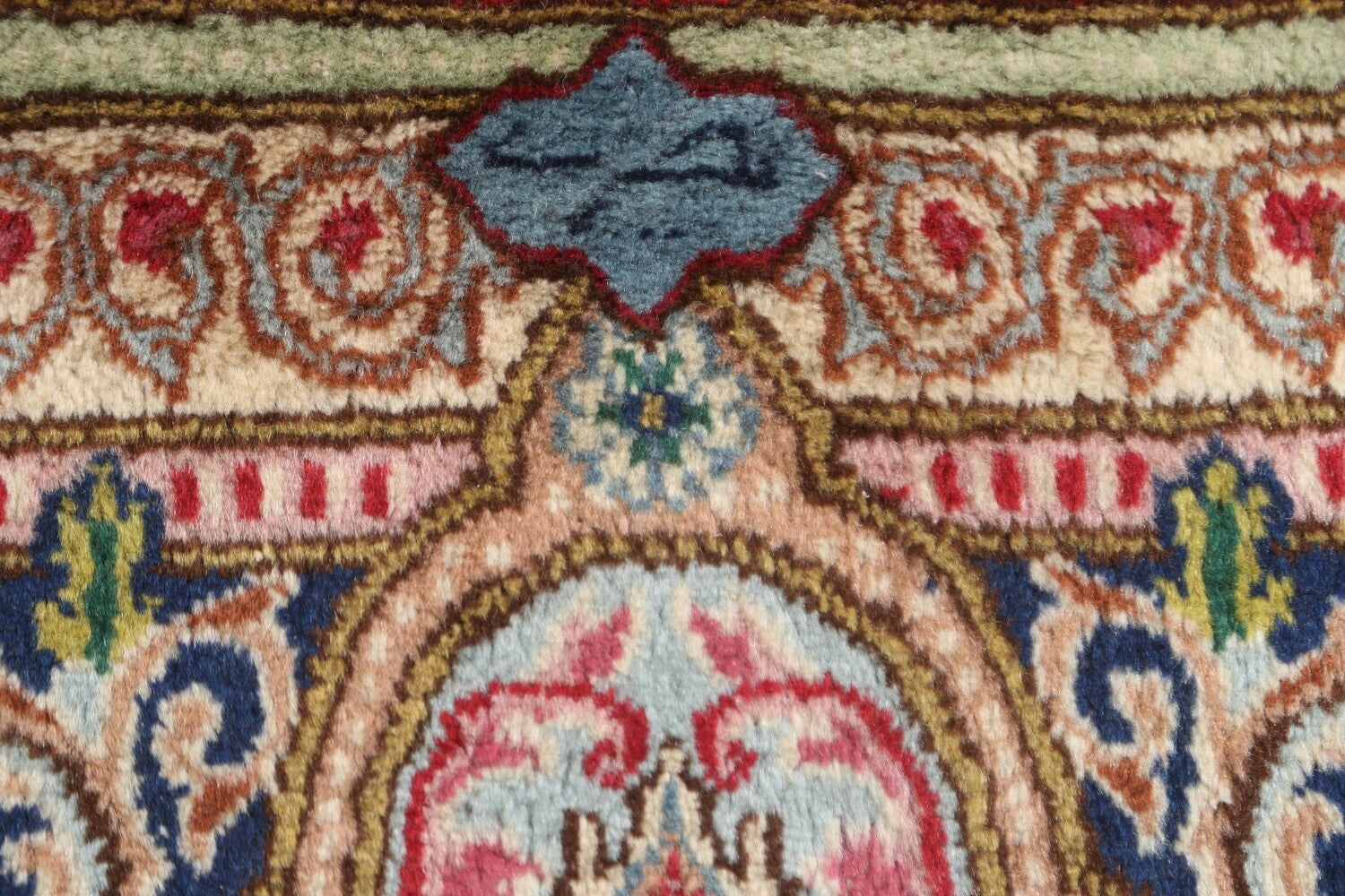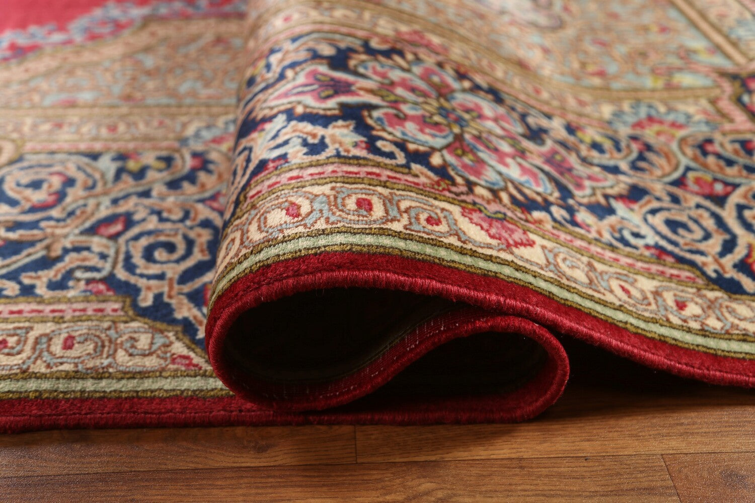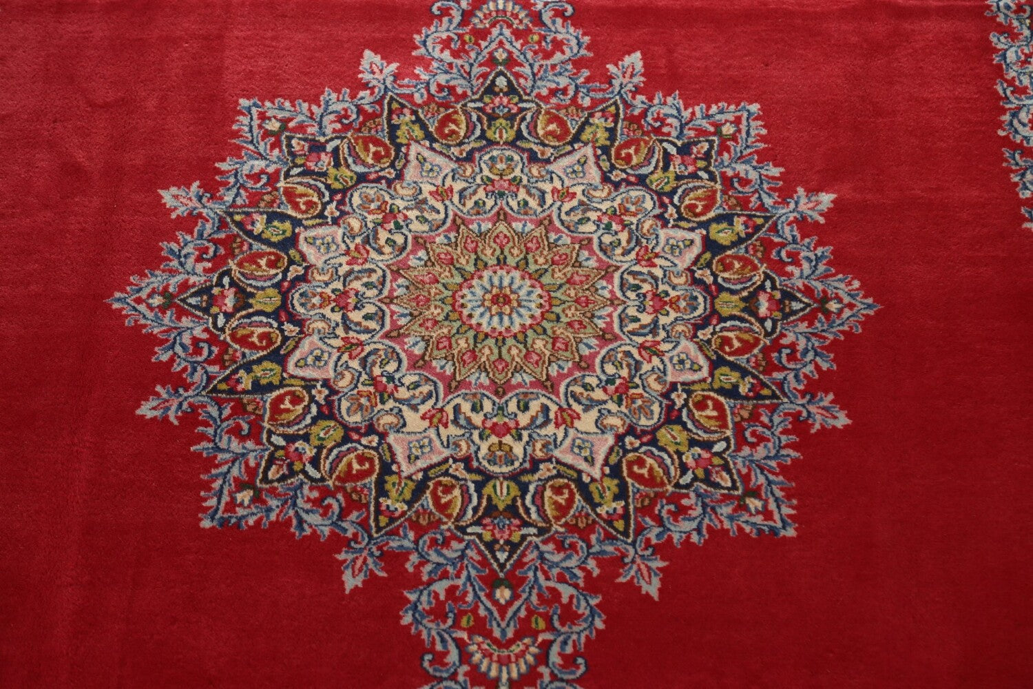 A Beautiful Genuine Persia ( Persia ) Kerman (Signed) rug is Hand Knotted by skillful weavers in Persia ( Persia ) with 100% Wool Material. This rug is in Very Good condition. dimensions are 13' 5'' X 9' 9'' in foot and 409 X 297 in centimeter. the primary color is Red.