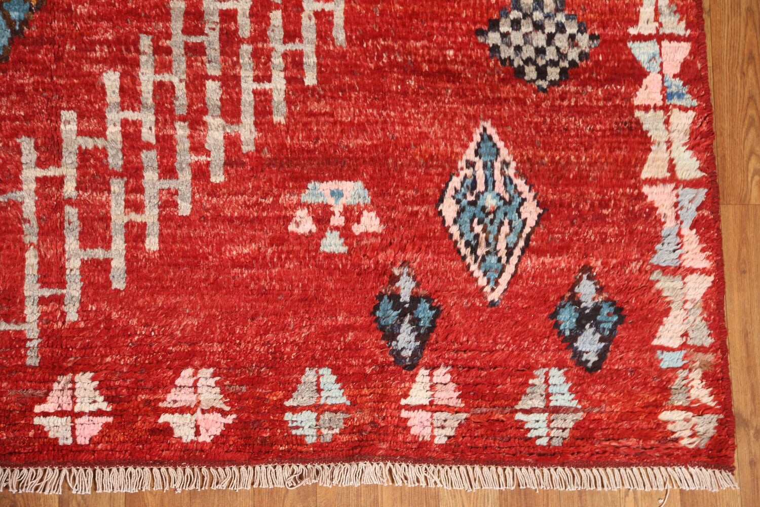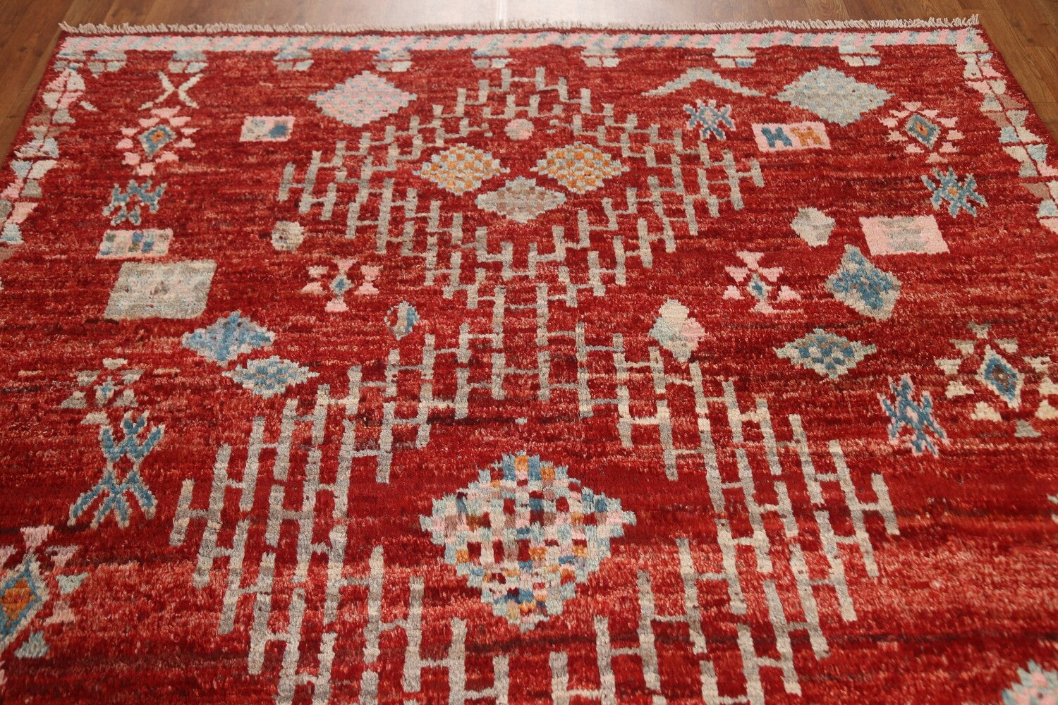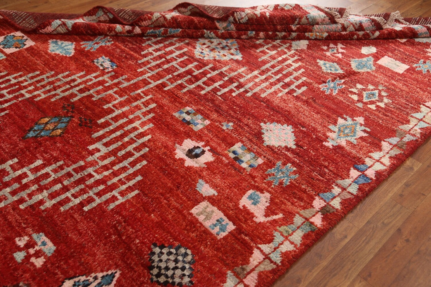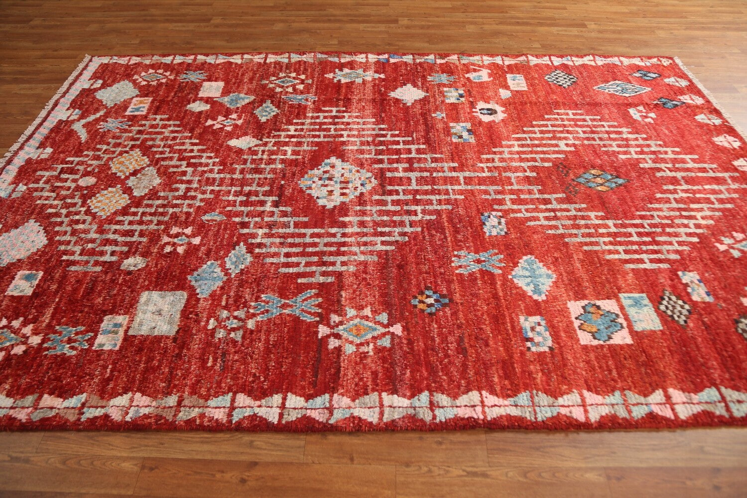 A Beautiful Genuine Pakistan Moroccan rug is Hand Knotted by skillful weavers in Pakistan with 100% Wool Material. This rug is in condition. dimensions are 9' 1'' X 6' 3'' in foot and 277 X 191 in centimeter. the primary color is Red.