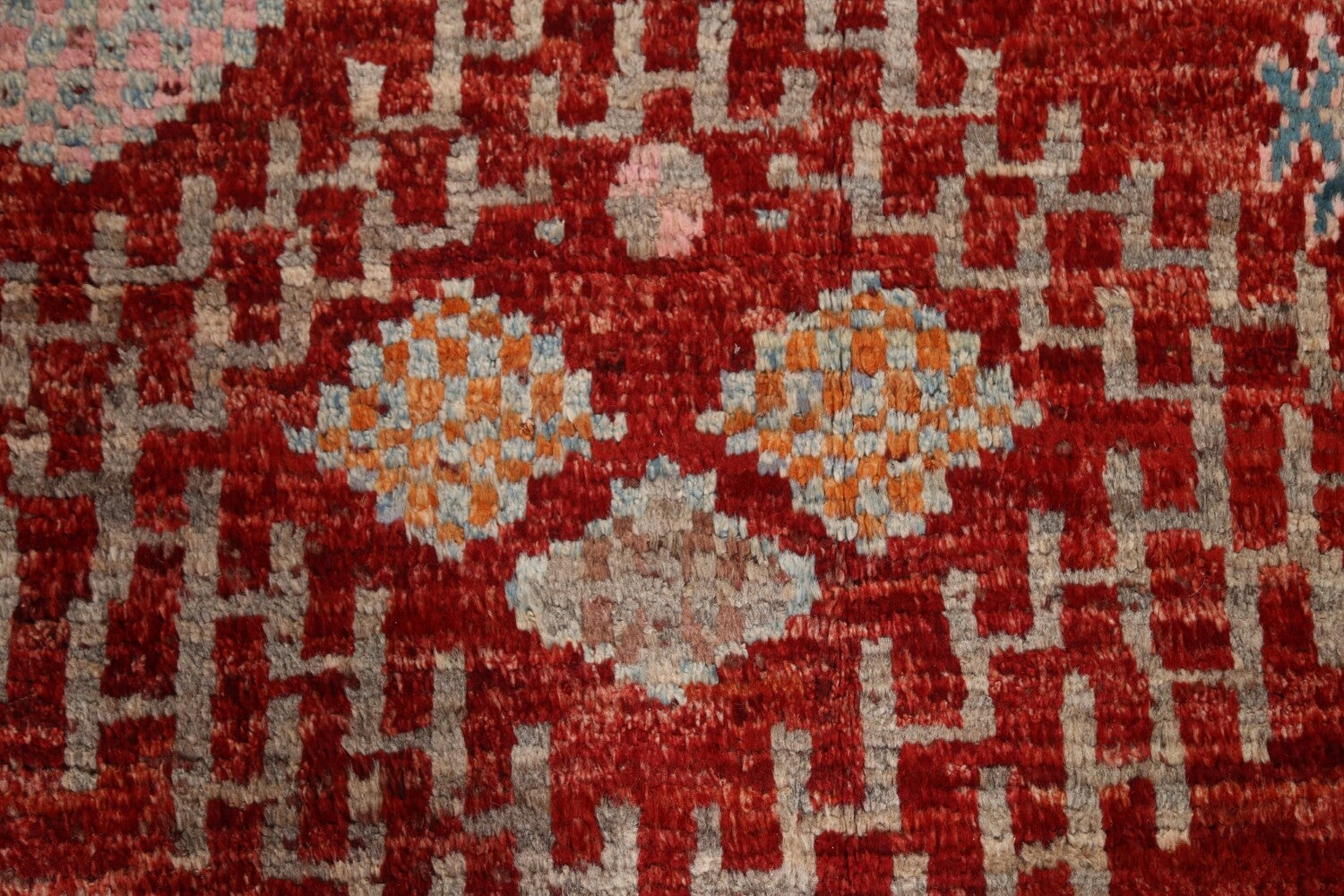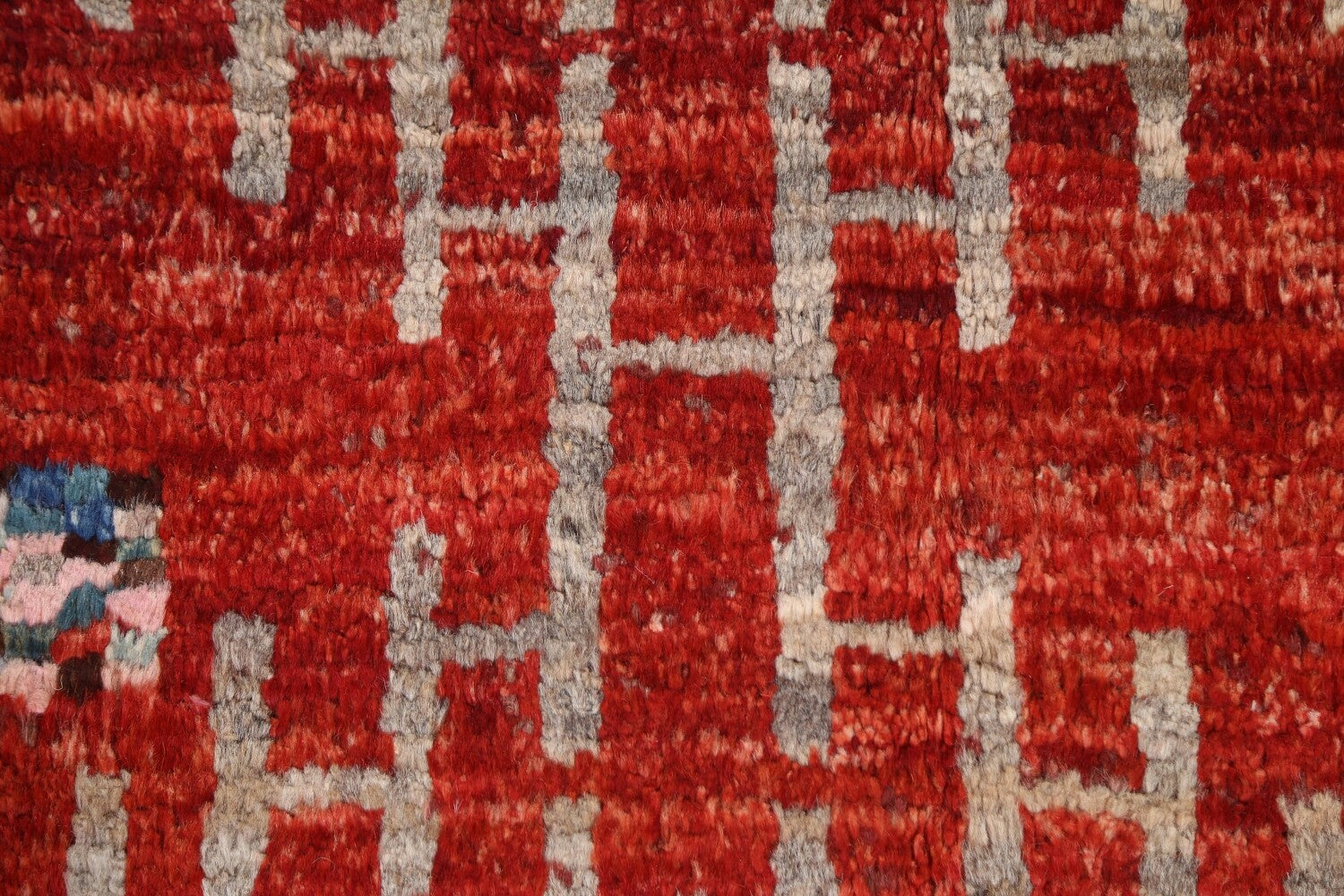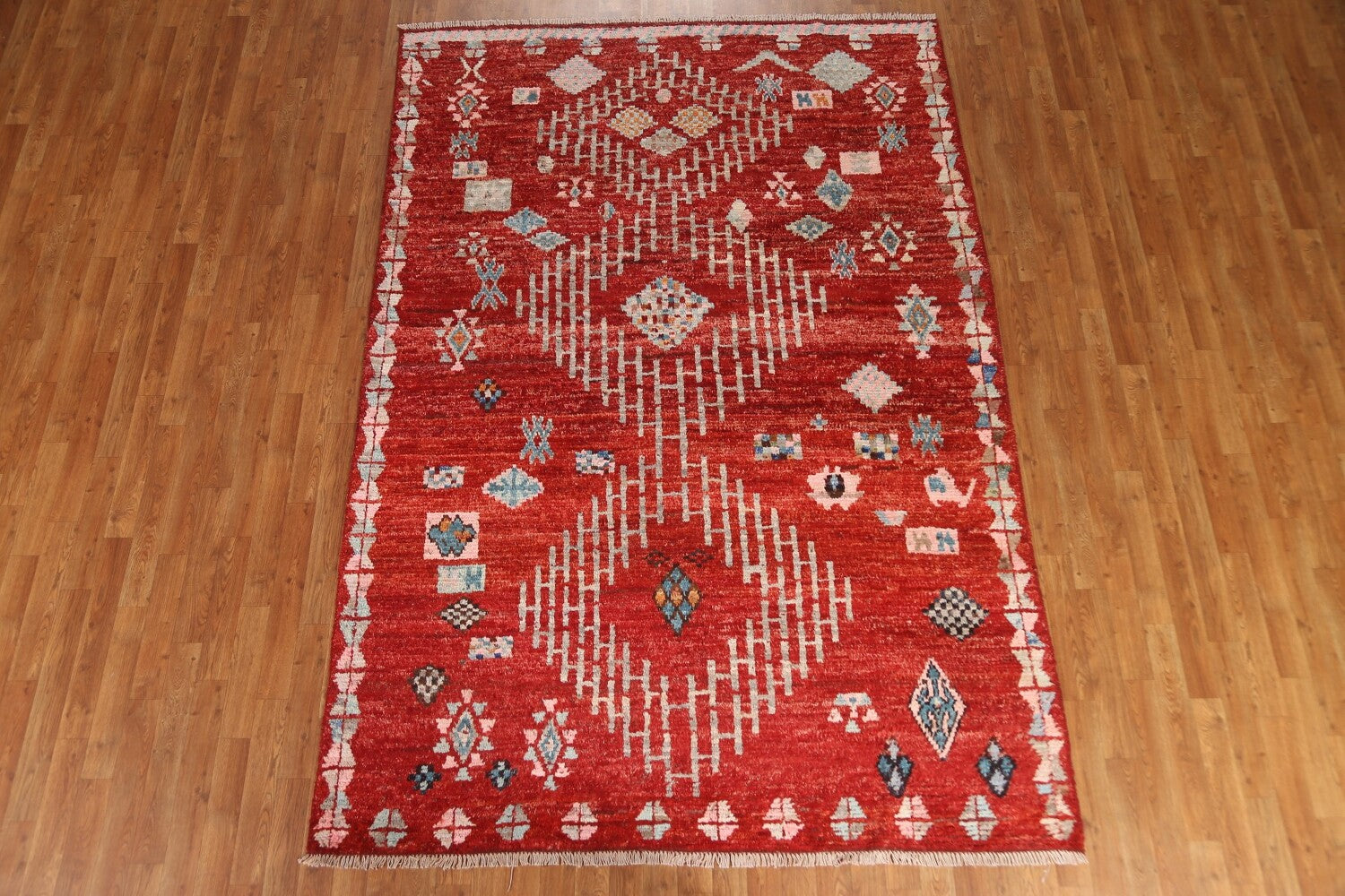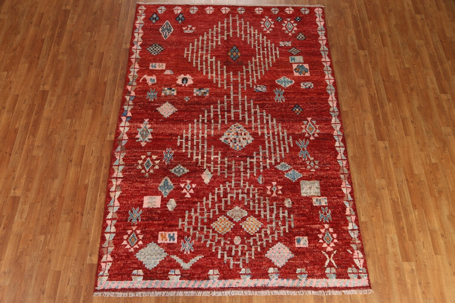 A Beautiful Genuine Pakistan Moroccan rug is Hand Knotted by skillful weavers in Pakistan with 100% Wool Material. This rug is in condition. dimensions are 9' 1'' X 6' 3'' in foot and 277 X 191 in centimeter. the primary color is Red.