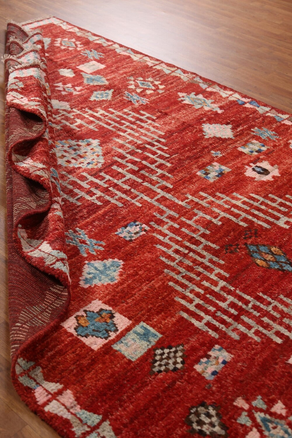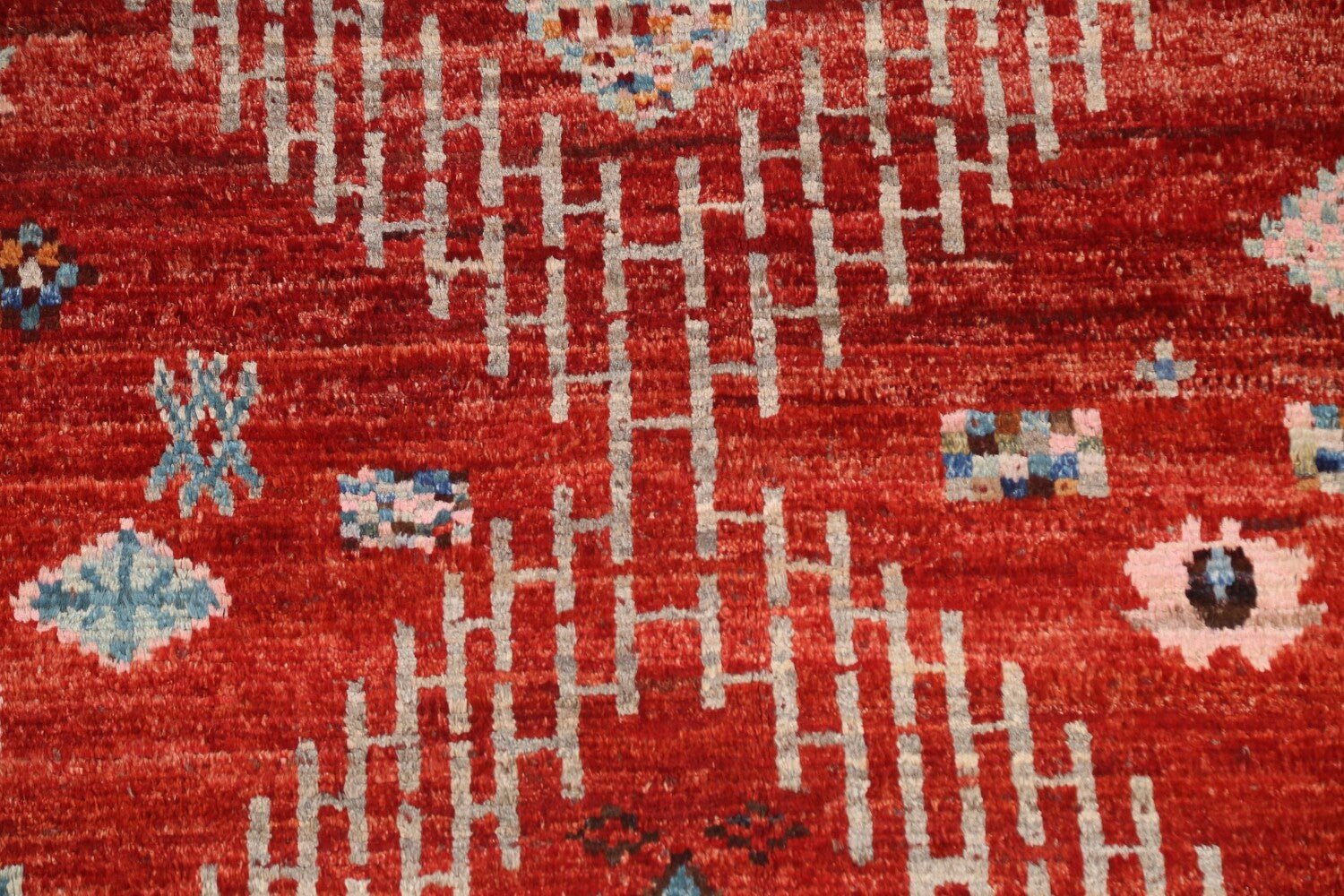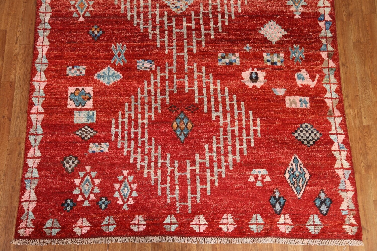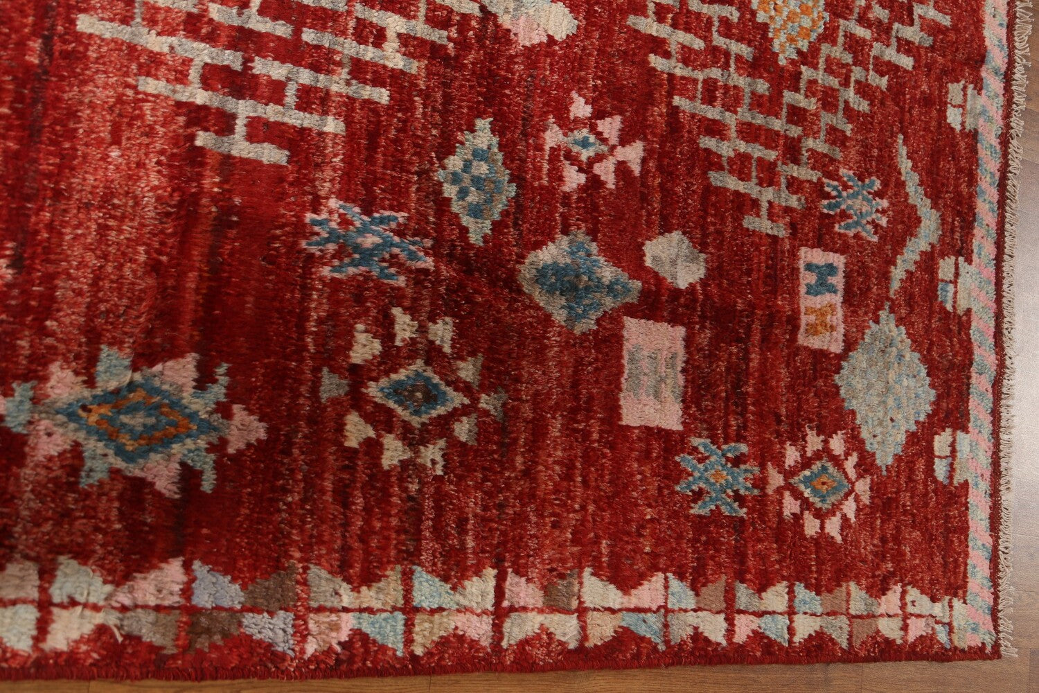 A Beautiful Genuine Pakistan Moroccan rug is Hand Knotted by skillful weavers in Pakistan with 100% Wool Material. This rug is in condition. dimensions are 9' 1'' X 6' 3'' in foot and 277 X 191 in centimeter. the primary color is Red.