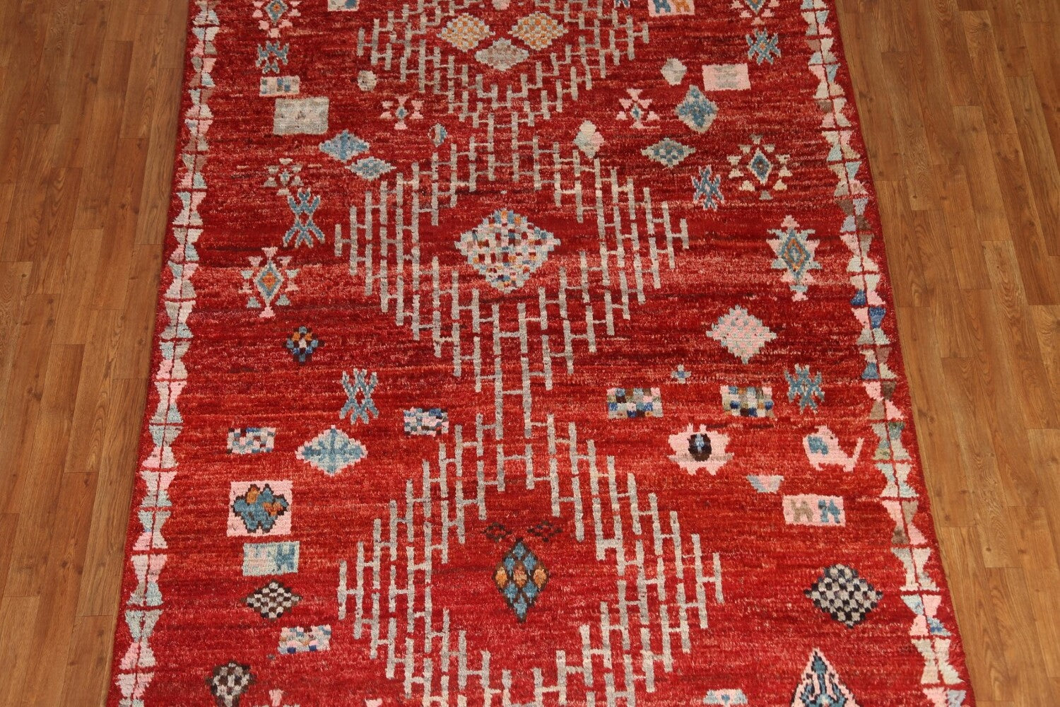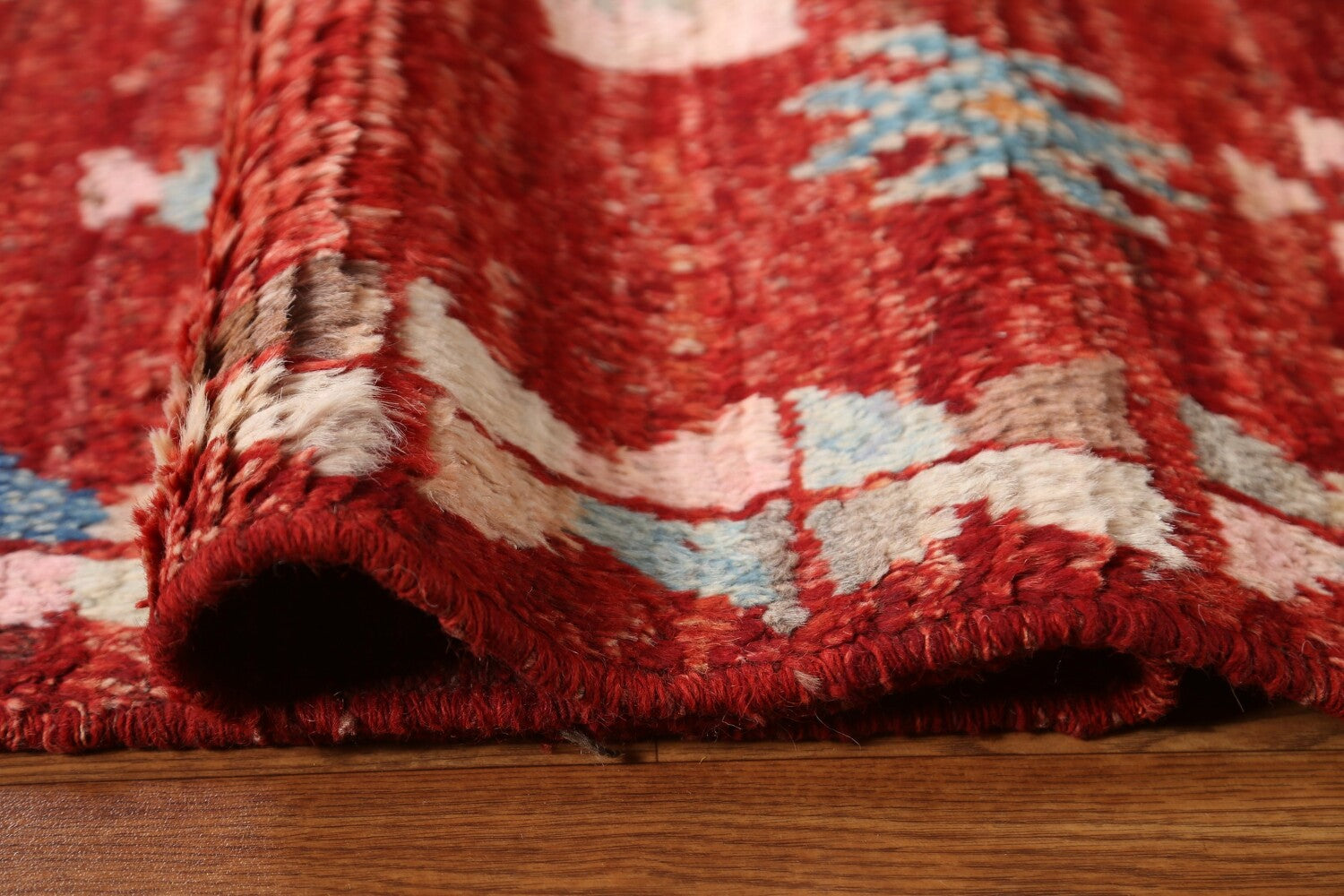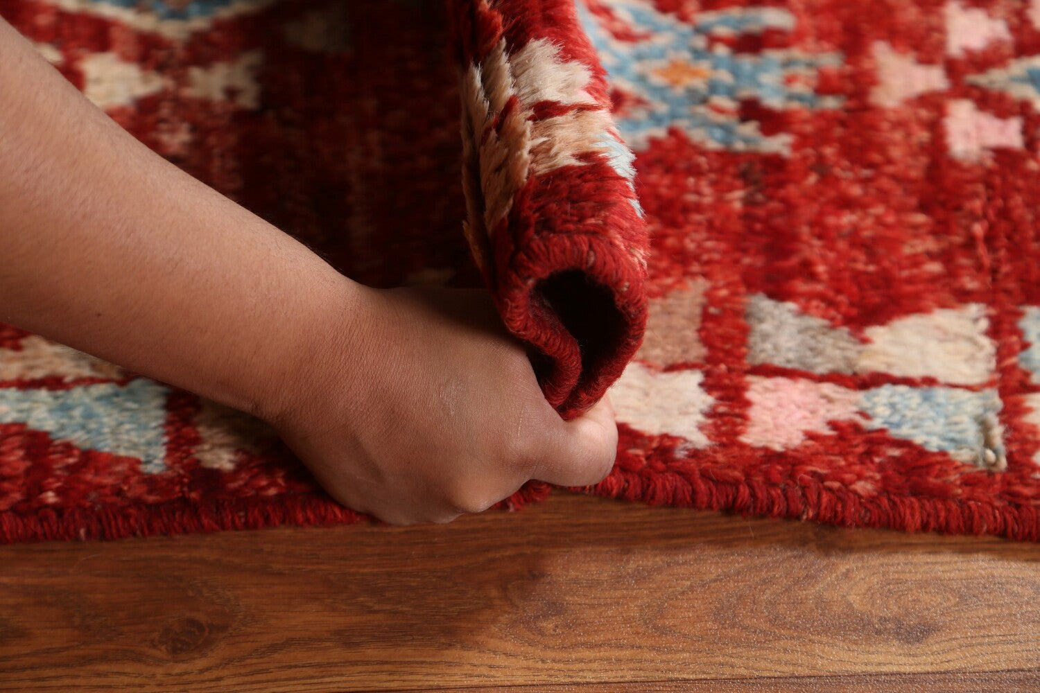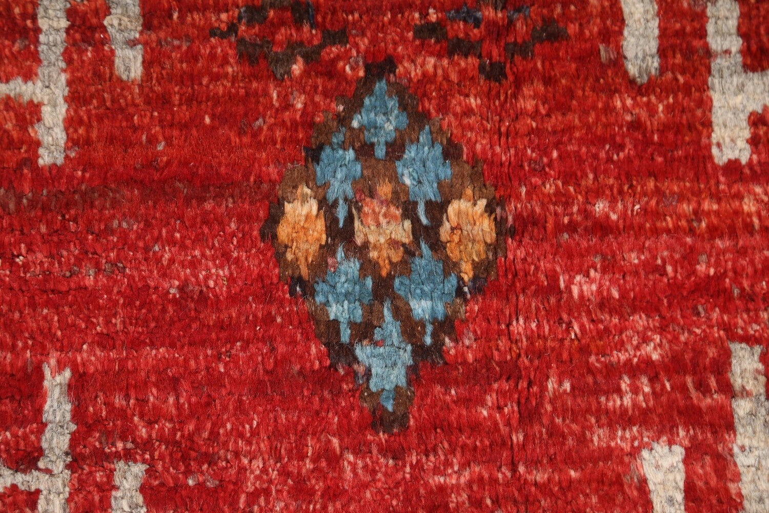 A Beautiful Genuine Pakistan Moroccan rug is Hand Knotted by skillful weavers in Pakistan with 100% Wool Material. This rug is in condition. dimensions are 9' 1'' X 6' 3'' in foot and 277 X 191 in centimeter. the primary color is Red.