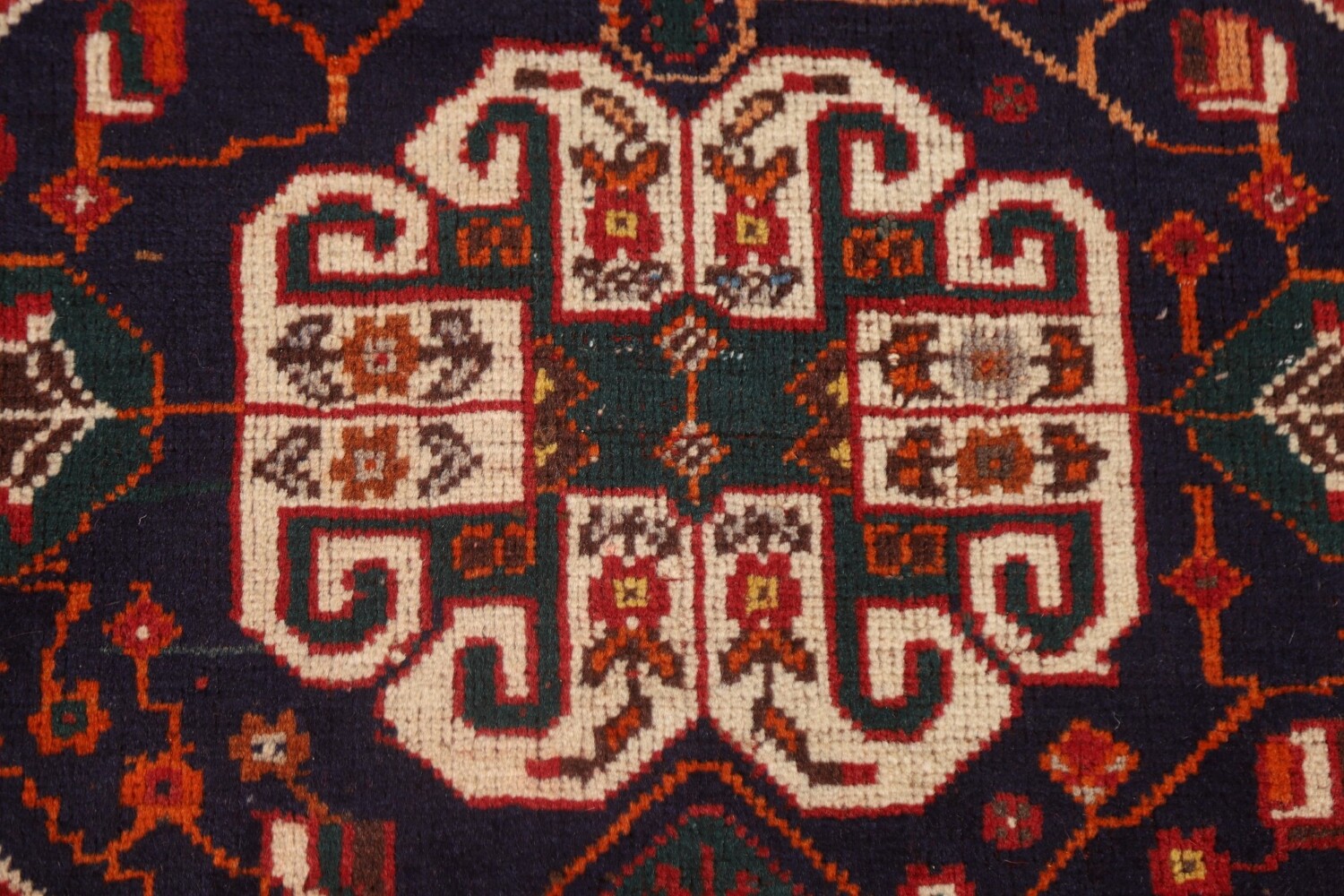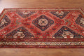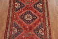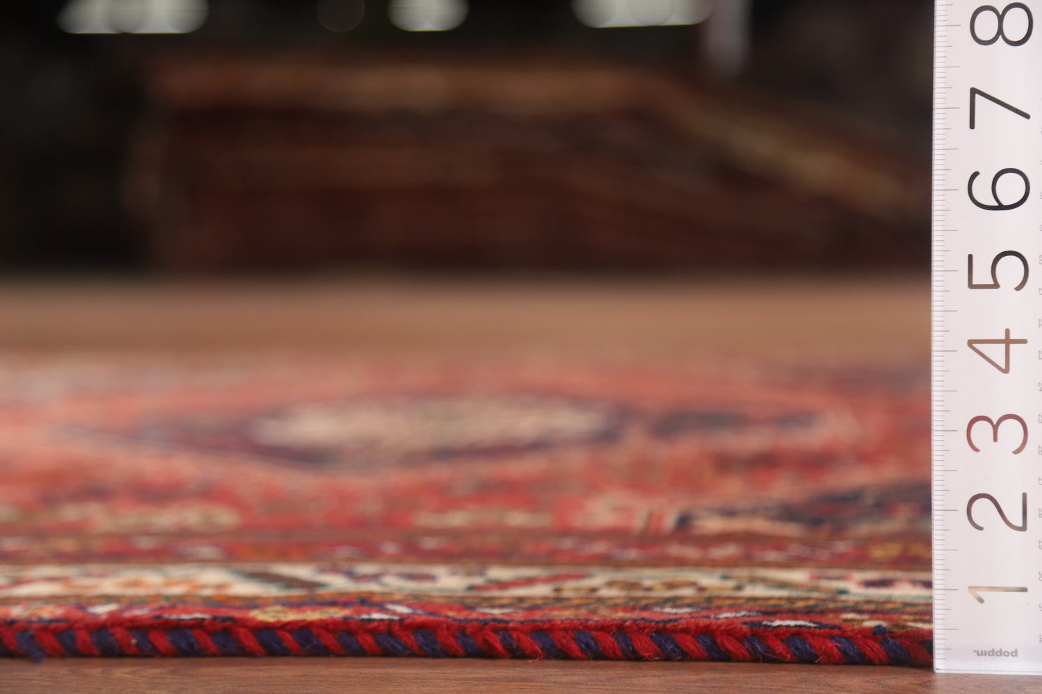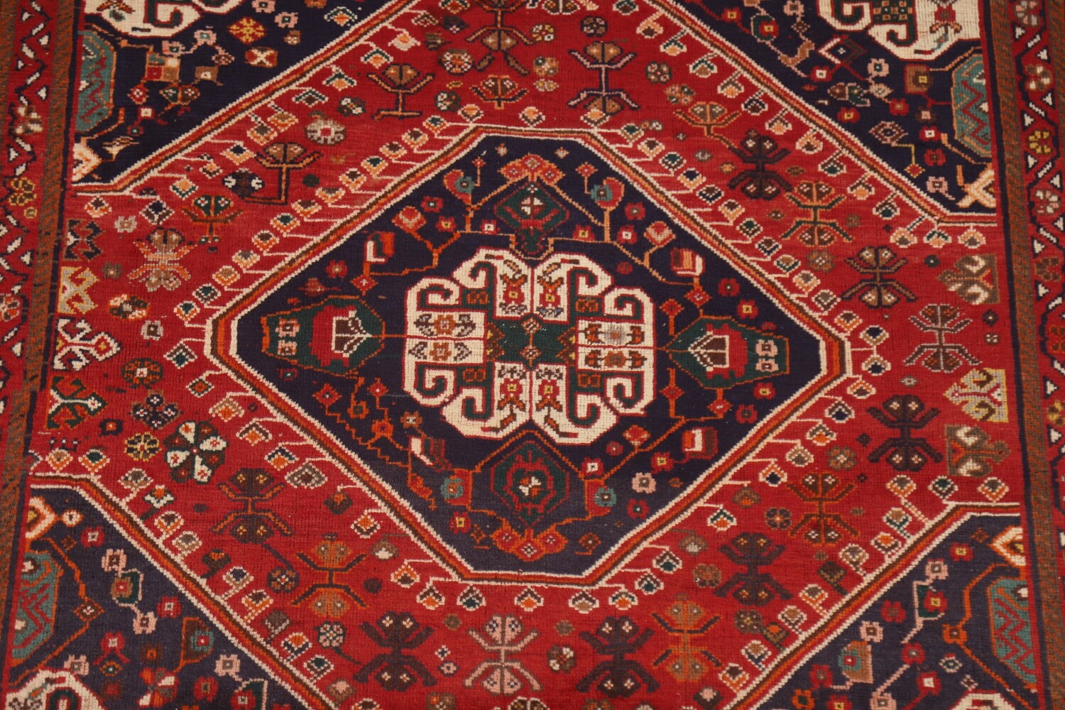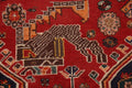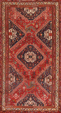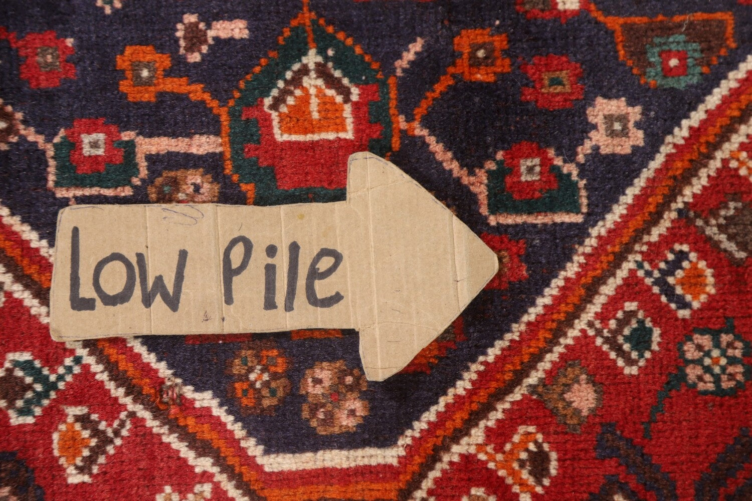 A Beautiful Genuine Persia ( Persia ) Shiraz rug is Hand Knotted by skillful weavers in Persia ( Persia ) with 100% Wool Material. This rug is in Very Good (Low Pile) condition. dimensions are 8' 8'' X 4' 11'' in foot and 264 X 150 in centimeter. the primary color is Red.