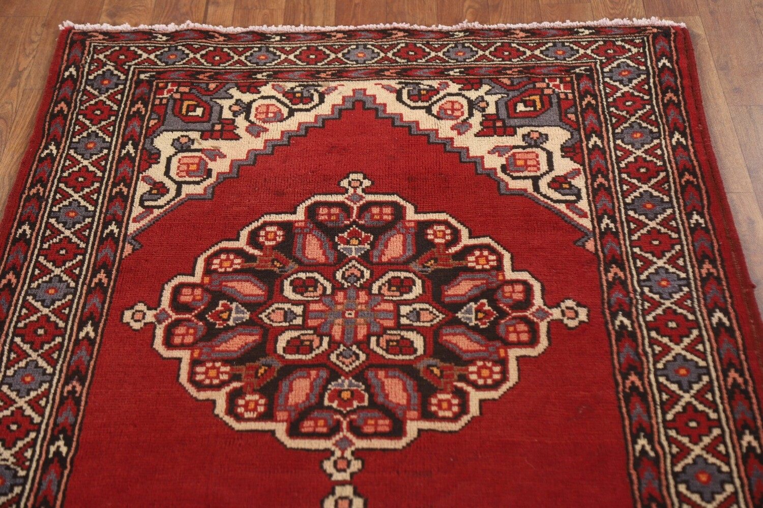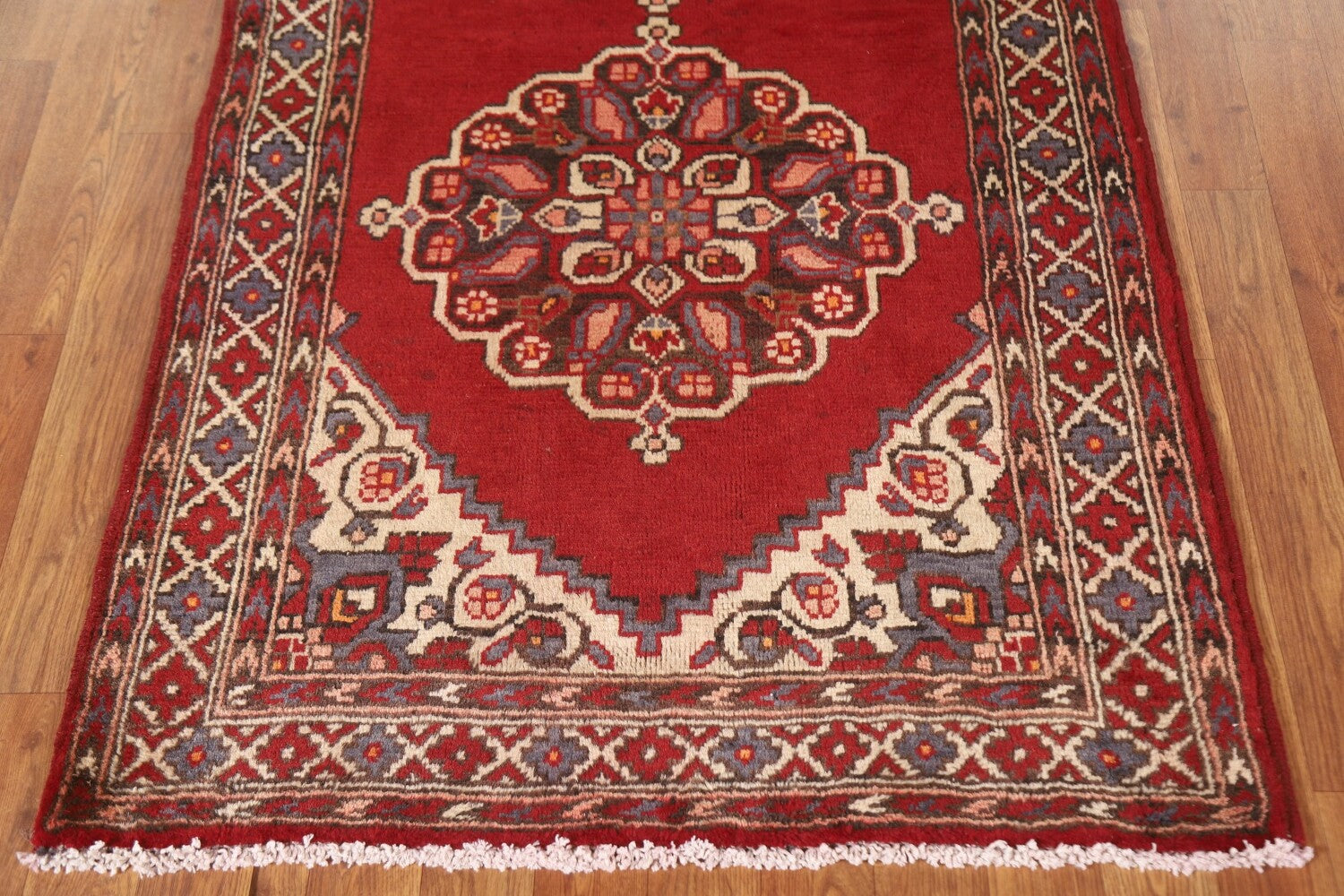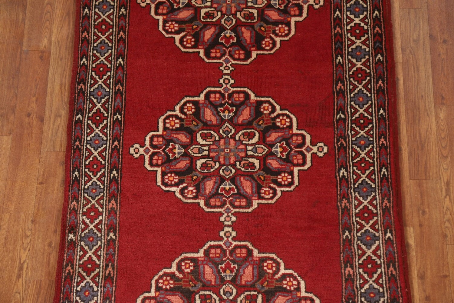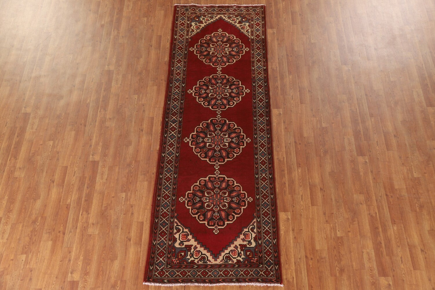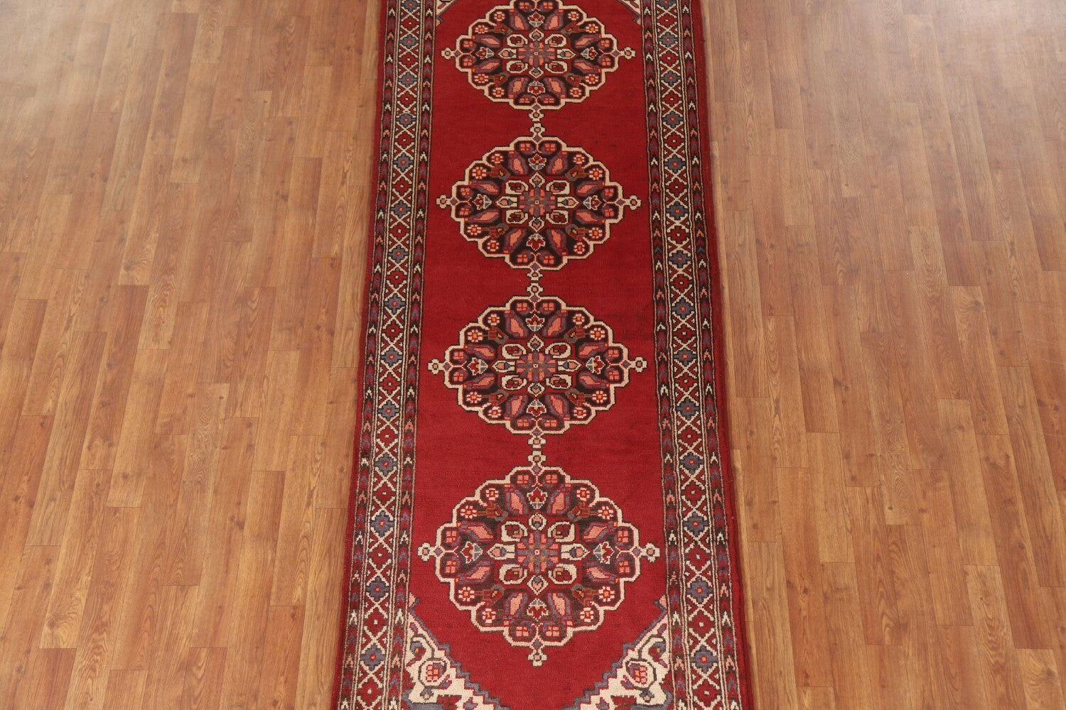 Red Geometric Tabriz Persian Runner Rug 3x10