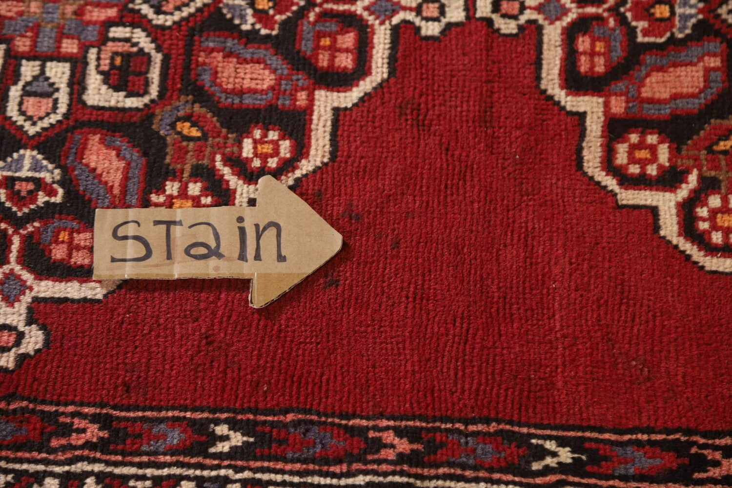 A Beautiful Genuine Persia ( Persia ) Tabriz rug is Hand Knotted by skillful weavers in Persia ( Persia ) with 100% Wool Material. This rug is in Very Good (Low Pile-Stains) condition. dimensions are 9' 6'' X 3' 1'' in foot and 290 X 94 in centimeter. the primary color is Red.