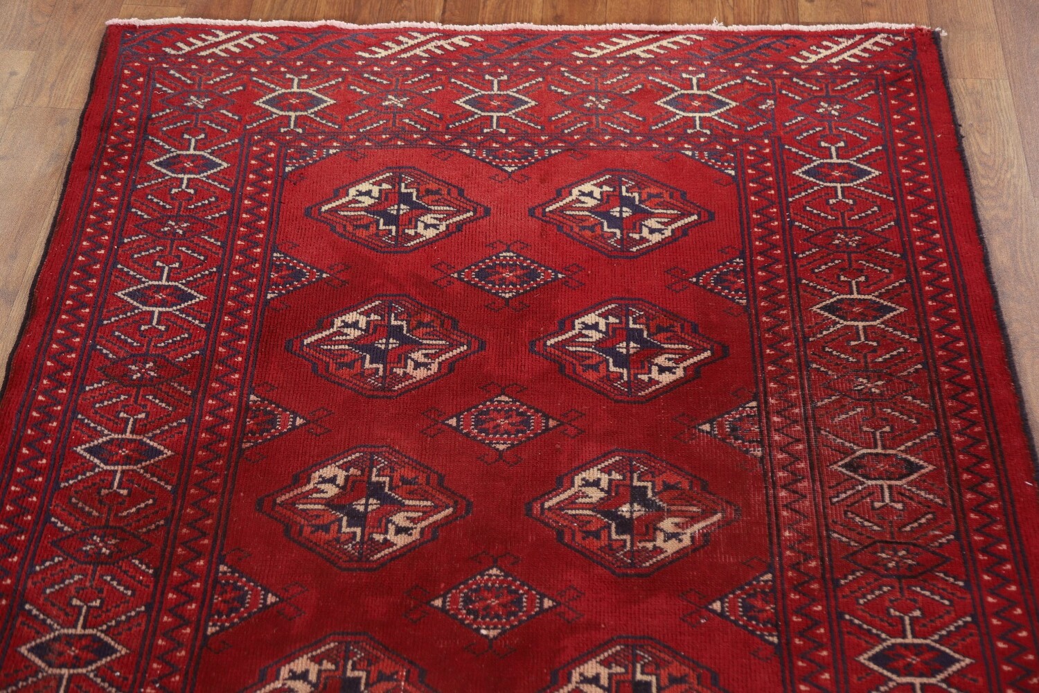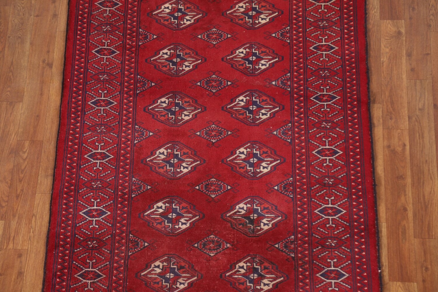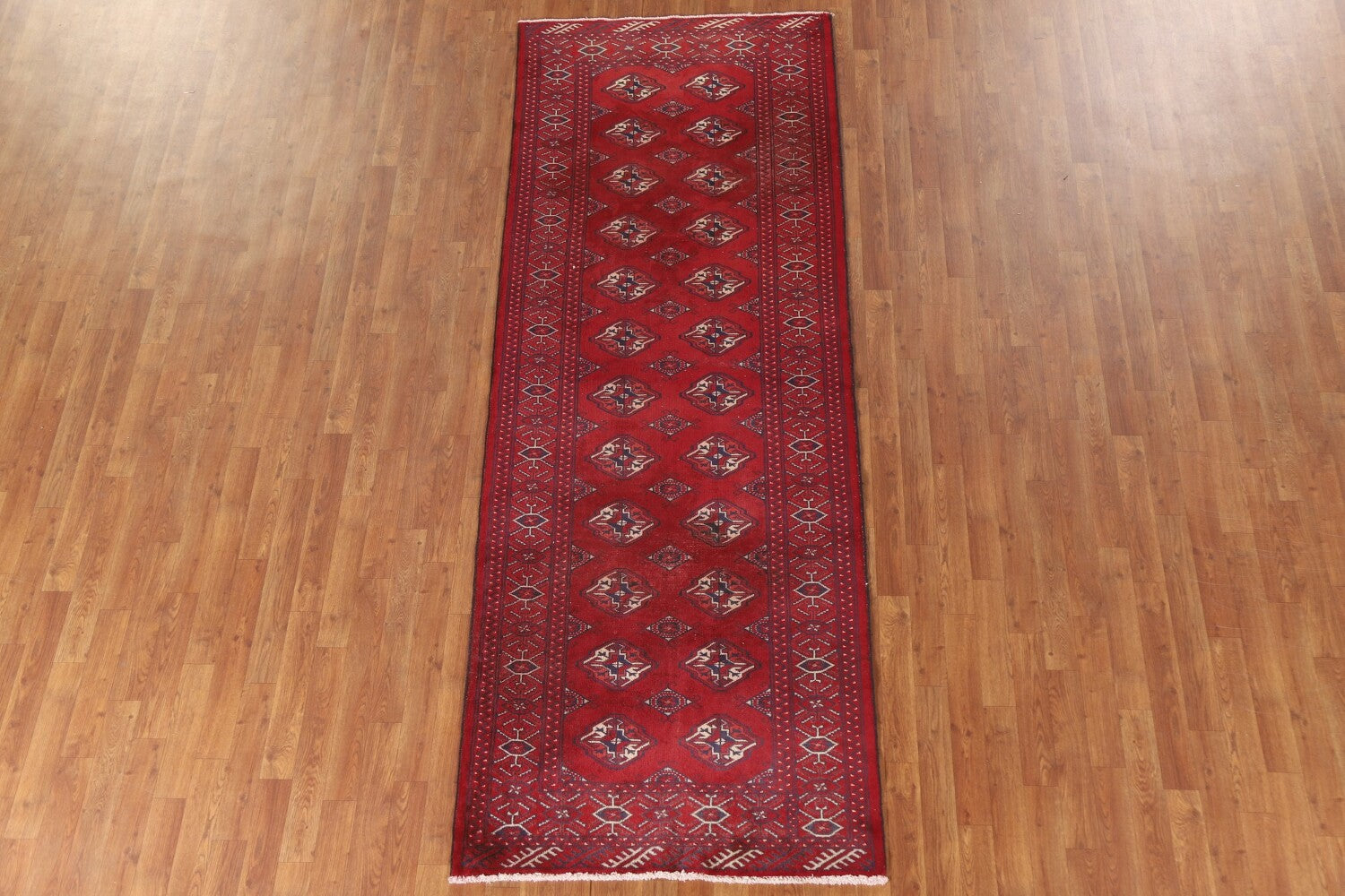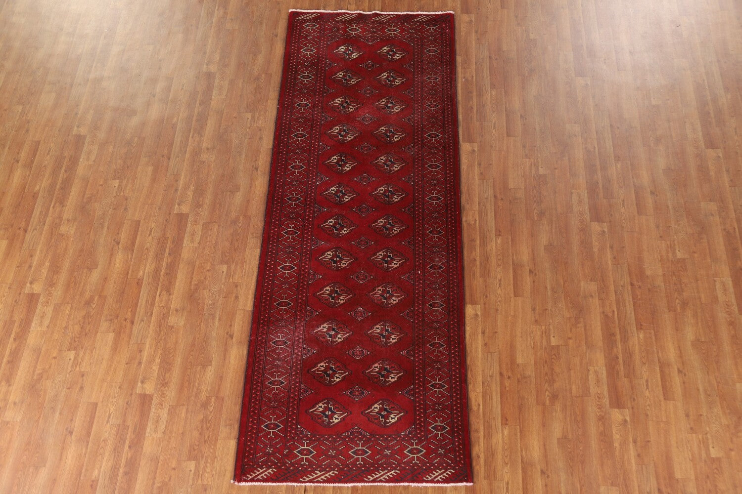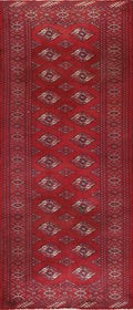 Red Geometric Turkoman Persian Runner Rug 3x9