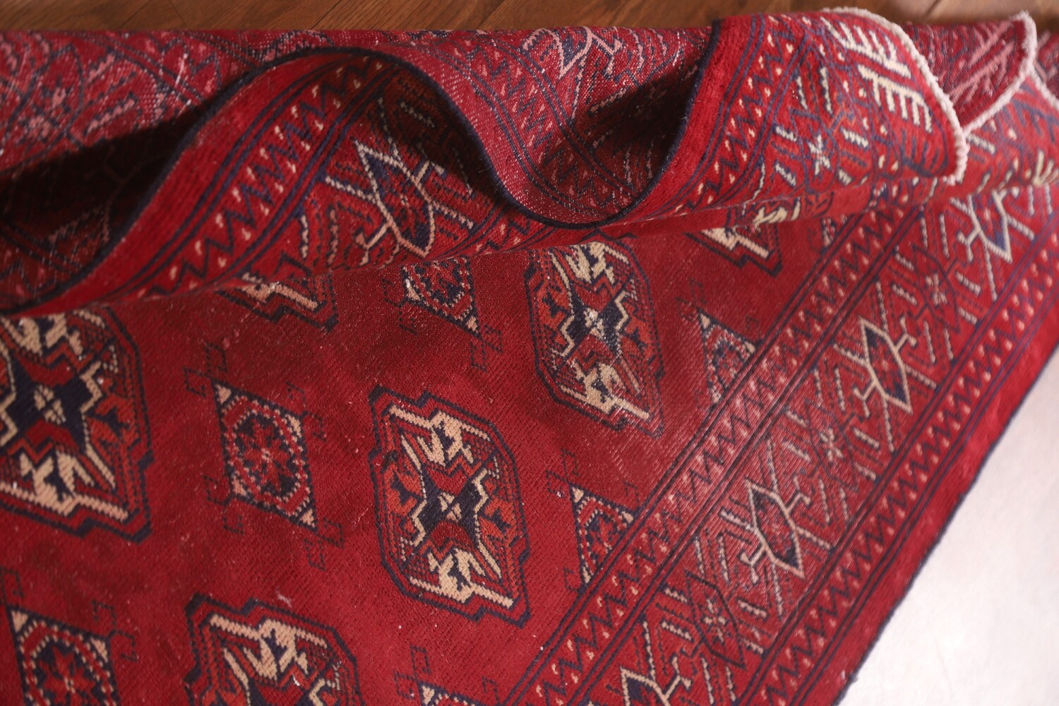 A Beautiful Genuine Persia ( Persia ) Turkoman rug is Hand Knotted by skillful weavers in Persia ( Persia ) with 100% Wool Material. This rug is in Very Good(Evenly Low Pile) condition. dimensions are 9' 5'' X 3' 5'' in foot and 287 X 104 in centimeter. the primary color is Red.