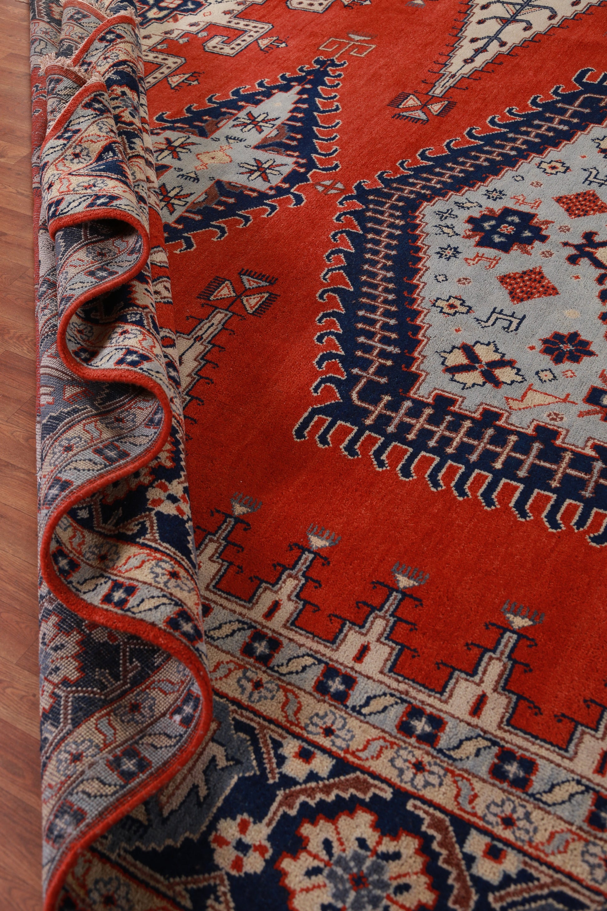 A Beautiful Genuine India Viss rug is Hand Knotted by skillful weavers in India with 100% Wool Material. This rug is in New, First Quality condition. dimensions are 17' 6'' X 11' 5'' in foot and 533 X 348 in centimeter. the primary color is Red.
