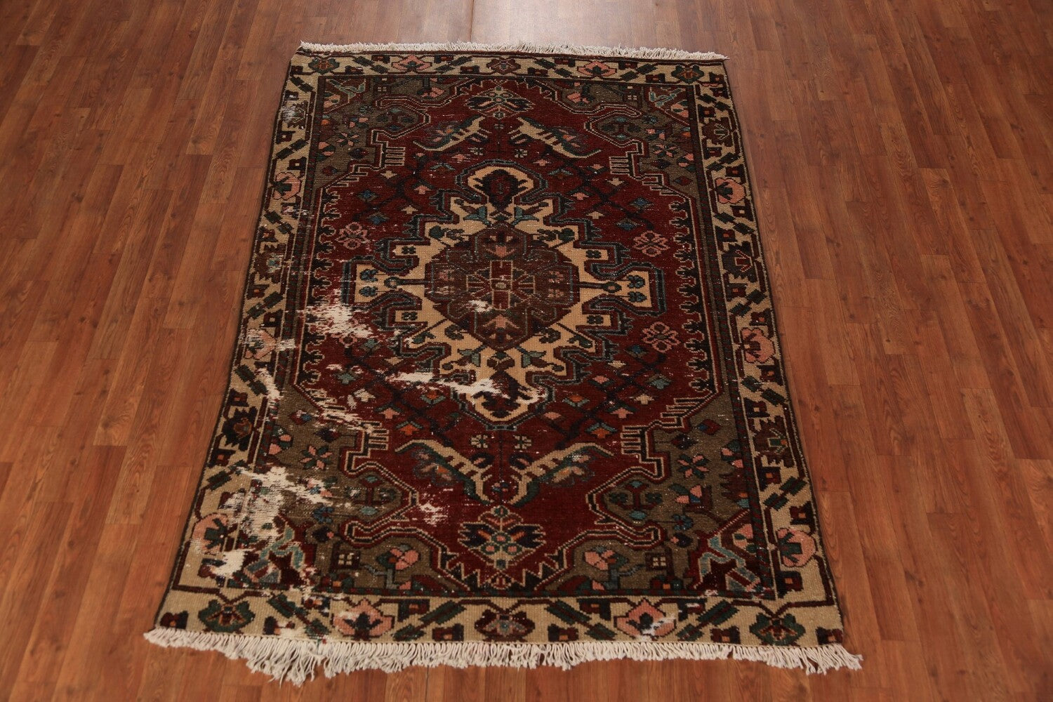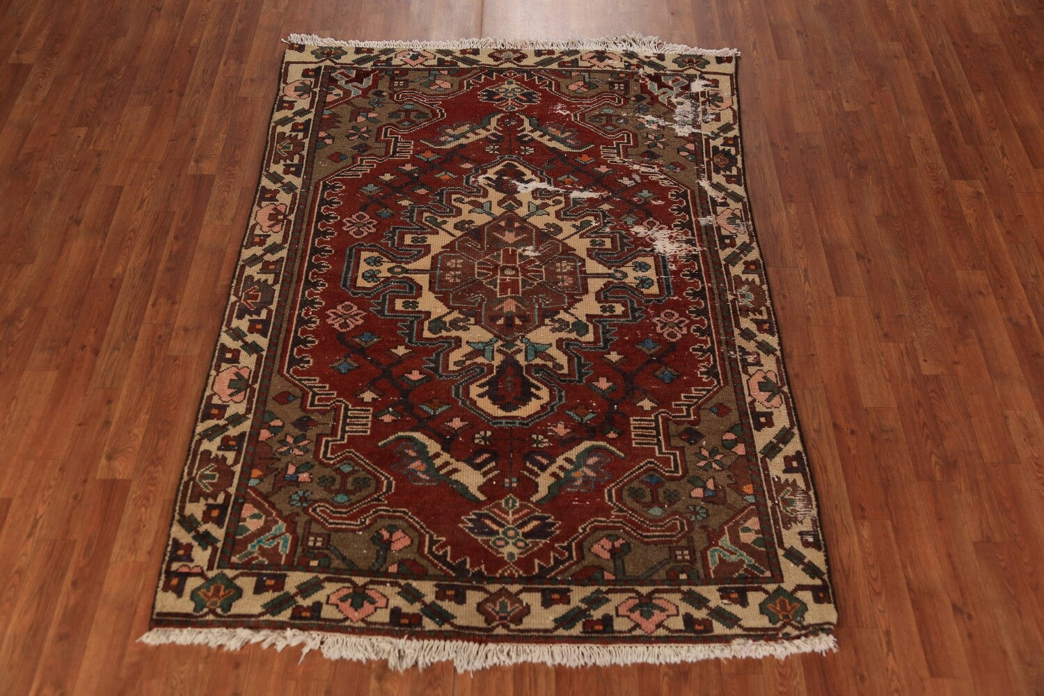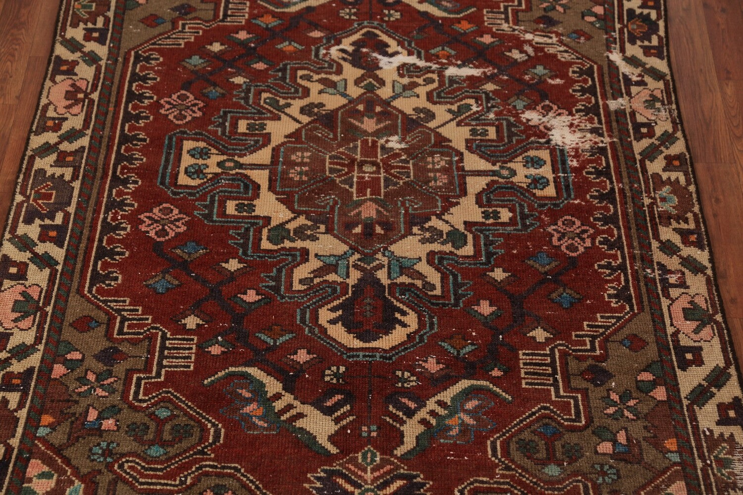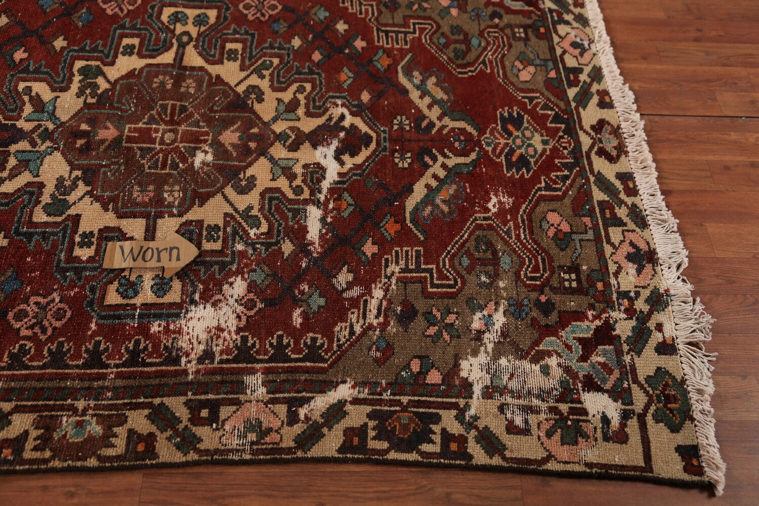A Beautiful Genuine Persia ( Persia ) Bakhtiari rug is Hand Knotted by skillful weavers in Persia ( Persia ) with 100% Wool Material. This rug is in Good (Worn) condition. dimensions are 6' 6'' X 4' 7'' in foot and 198 X 140 in centimeter. the primary color is Red.