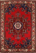 Red Geometric Wool Hamedan Persian Rug 5x6